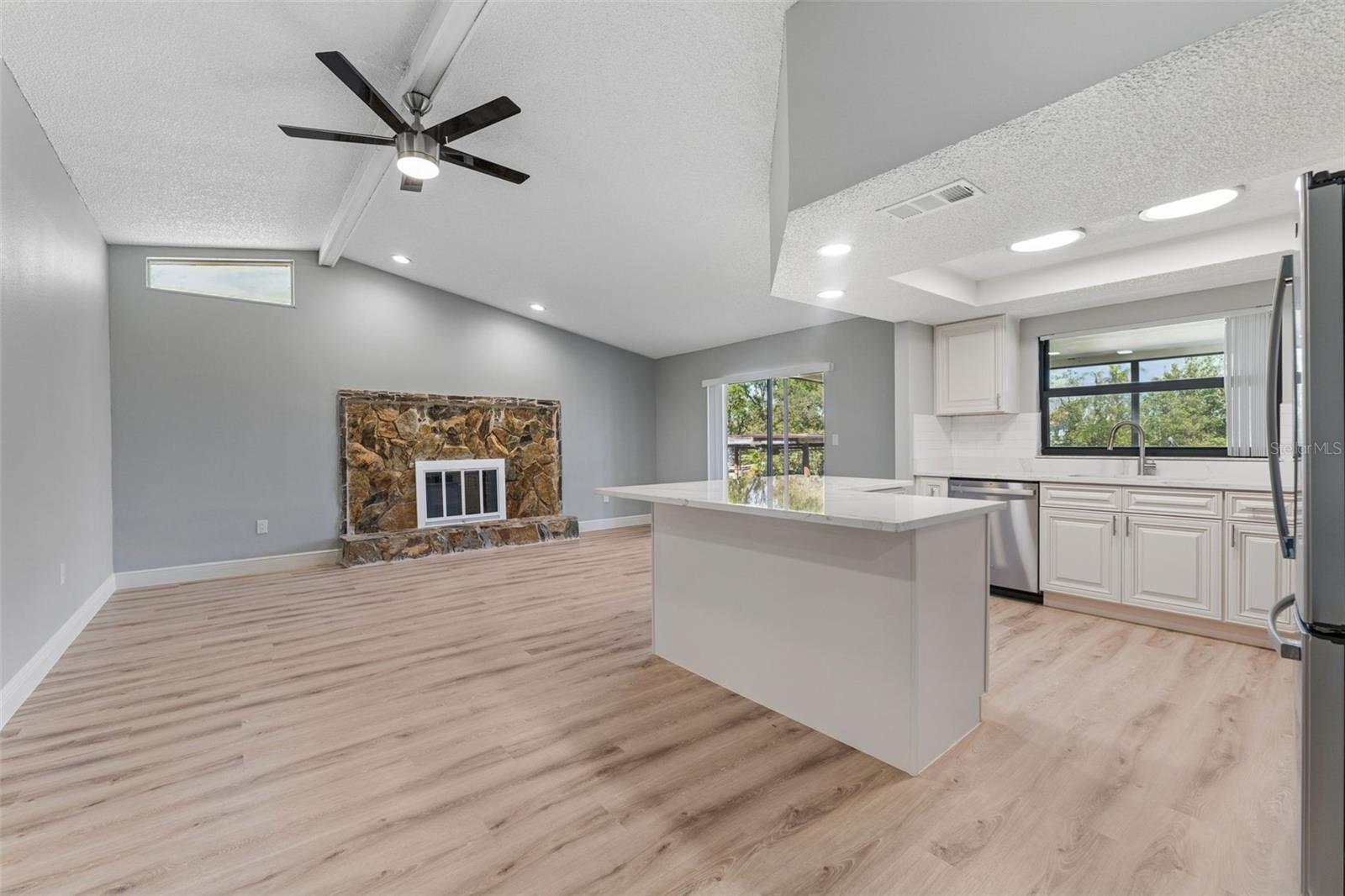 Absolutamente impressionante e totalmente renovado 3 BR/2 BA/2 CARA CASA DE GARAGEM ARGULHA EM CUL-DE-SAC DA COMUNIDADE ALTO ALUDO BAILEYS BLUFF BLUFF Waterfront. Localizado diretamente em um canal com acesso direto ao Golfo, oferecendo oportunidades incríveis para passeios de barco, mergulho, pesca, relaxando de seu próprio píer particular. This sturdy BLOCK CONSTRUCTION home, with BRAND NEW ROOF (2025), and Newer HVAC (6/2022) has been updated with brand new durable and waterproof contemporary luxury Vinyl plank (LVP) flooring throughout the entire home, completely repainted interior, with a "Chef's Dream" Kitchen featuring: stunning quartz countertops, solid wood cabinetry, high-end stainless-steel appliances, kitchen-island with breakfast bar, e cozinha/sala de estar de piso aberto com lareira a lenha. Completo com tetos abobadados e sala de jantar formal com muita luz natural e vistas do grande quintal e à beira -mar. Os quartos são todos grandes e construíram armários. O quarto principal tem um closet, e vistas diretas da água e um banheiro privativo com as pias dele e dela e um lindo chuveiro de azulejos. Apresentando um lanai externo totalmente coberto e totalmente rastreado, bem como um esconderijo ao ar livre durável (deck hardie ™) e um grande quintal com seu próprio cais de pesca particular, aninhado entre as árvores de mangue, onde você pode assistir a golfinhos nadar por peixe, relaxar ... e desfrutar do melhor que a Flórida tem! Os residentes da Baileys Bluff podem participar de uma associação opcional ao HOA por apenas US $ 100 anualmente, concedendo acesso a uma rampa privada de praia, clube e barcos comunitários. Verdadeiramente um lar deslumbrante!