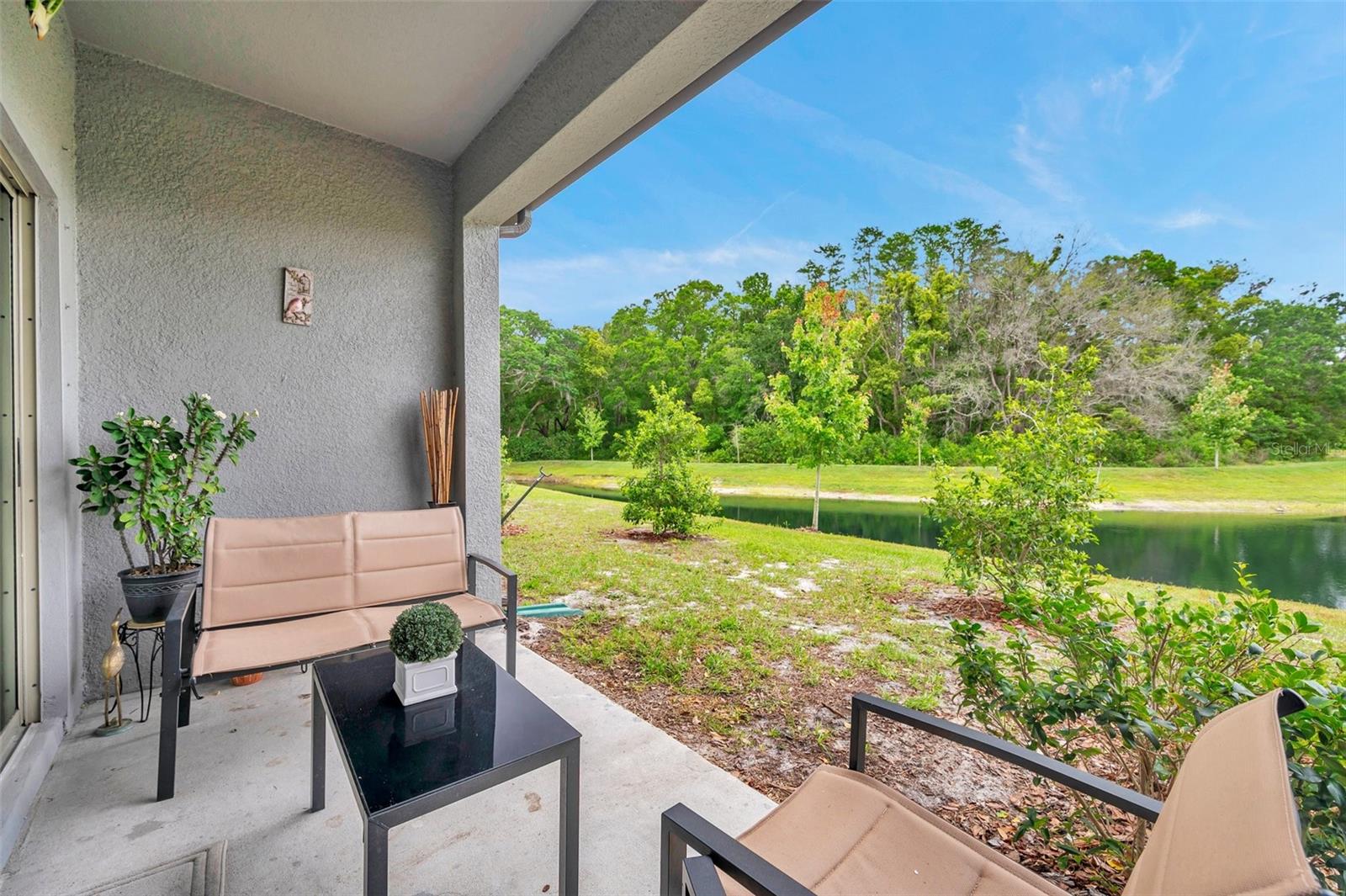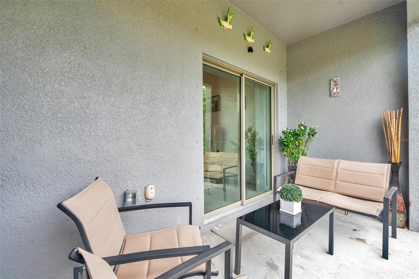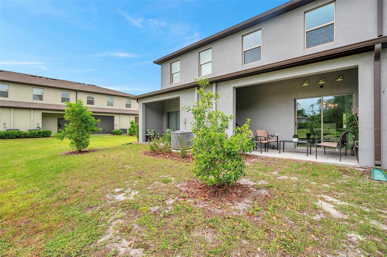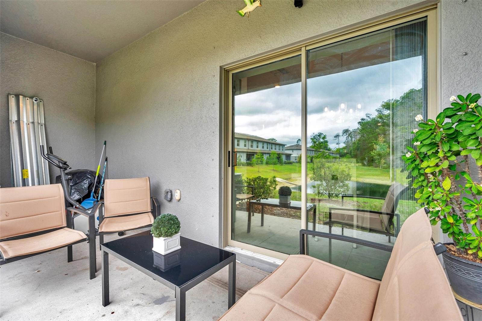 Persianas contra furacões, sistema de irrigação, calçada, portas deslizantes