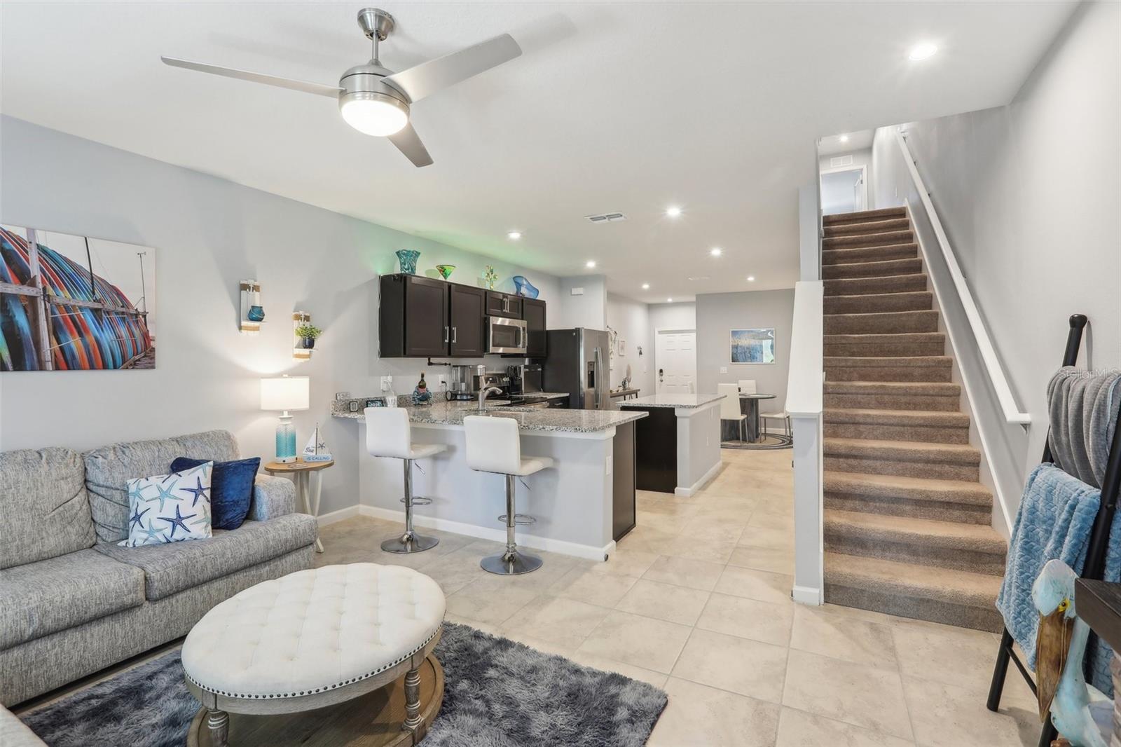 Redução de preços! Bem-vindo para casa neste condomínio lindamente mantido de 3 quartos e 2,5 banheiros em férias! Construído em 2022, desfrute de um layout moderno de conceito aberto perfeito para entretenimento! Contadores de granito elegantes, uma espaçosa pia de bacia única e utensílios de aço inoxidável elegantes facilitam a preparação das refeições. As áreas de estar do primeiro andar apresentam pisos fáceis de manter-sem tapete aqui! Saia da sua Lanai estendida, ideal para relaxar ou hospedar hóspedes. A garagem de 1 carro inclui pisos epóxios duráveis e prateleiras de armazenamento atualizadas, oferecendo muito espaço para se manter organizado. No andar de cima, a suíte do EN apresenta uma caminhada generosa e o banheiro apresenta uma vaidade dupla. Esta casa pronta para casa combina conforto e conveniência em uma comunidade em crescimento! Certifique -se de ver o passo a passo 3D!