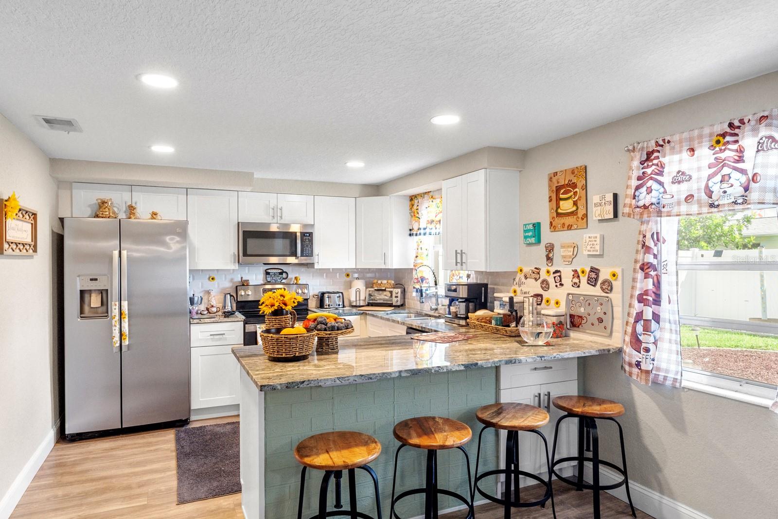 Bem-vindo a esta casa lindamente atualizada de 3 quartos e 2 banheiros, localizada em Holiday, FL, a poucos minutos das praias do Golfo, do cais de pesca e das docas de esponja de Tarpon Springs. Esta casa fica na Arcadia Road em um local fantástico que o coloca perto de atividades à beira -mar e atrações costeiras. Entre para descobrir um piso plano aberto com lindos pisos de prancha de madeira cinza nas principais áreas de estar. A cozinha do chef possui armários de agasão brancos, bancadas em granito, utensílios de aço inoxidável, iluminação embutida e um elegante backsplash de ladrilhos. Ambos os banheiros foram atualizados cuidadosamente com novas vaidades, ladrilhos de porcelana 18x18 e elegantes vanguações de mármore. O banheiro primário recebeu uma remodelação profissional completa com um chuveiro moderno com pedra de quartzo de corpo inteiro. Melhorias recentes incluem um telhado mais novo instalado em 2022, novos ventiladores de teto e luminárias por toda parte, além de rodapés de 5,5 polegadas e novas portas de 6 painéis com hardware atualizado. A tinta neutra fresca ilumina o interior, enquanto uma bela nova cor externa aprimora o apelo do freio. Lá fora, você vai adorar a nova varanda da frente e o paisagismo fresco com novas plantas e cobertura morta. O quintal oferece privacidade completa com cercas de vinil branco. Novos tratamentos de janela completam a sensação pronta para a mudança desta casa. Esta propriedade combina atualizações modernas com uma vida confortável em um local imbatível. Você está a poucos momentos da bela costa do Golfo da Flórida enquanto desfruta de todos os confortos de uma casa reformada e nenhuma zona de inundação!