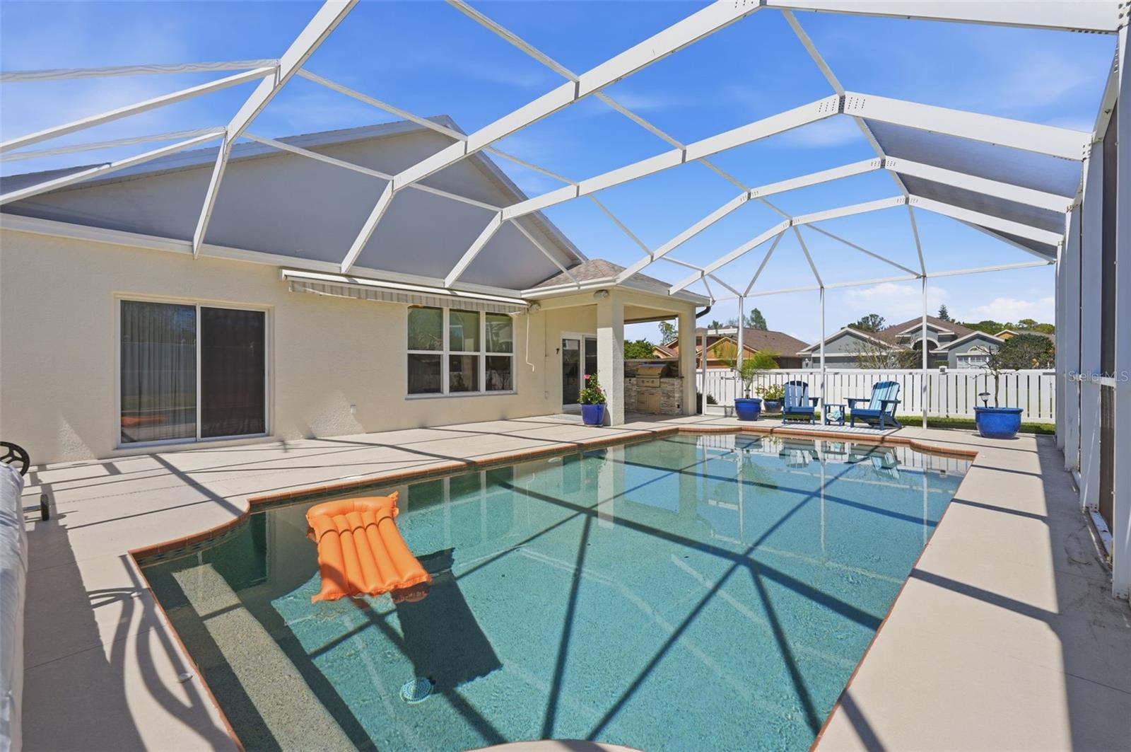 Bem-vindo à tão procurada comunidade de férias em Key Vista! Perfeitamente posicionada em um grande terreno de esquina, esta residência lindamente conservada de três quartos e dois banheiros oferece a combinação ideal de conforto e vida ao ar livre na Flórida. Desfrute de maior tranquilidade com grandes atualizações, incluindo um sistema Carrier AC 2018 com um manipulador de ar de 2 estágios, um teto 2020 e um aquecedor de água híbrido GeoSpring com tecnologia de bomba de calor - projetado para eficiência energética excepcional. Esta casa também oferece janelas atualizadas resistentes a impactos New South, oferecendo silêncio, eficiência energética e tranquilidade. Entre pelo hall de entrada acolhedor e você notará imediatamente o piso de porcelanato com aparência de madeira, os tetos altos e as sancas que fluem por toda a casa. A casa se abre para um layout espaçoso de conceito aberto com área de jantar, sala de família e cozinha - ideal para a vida cotidiana e para entretenimento. A cozinha é uma verdadeira peça central, ostentando eletrodomésticos de aço inoxidável atualizados, uma grande ilha perfeita para reuniões, elegantes bancadas de granito e uma abundância de armários para armazenamento. Uma despensa separada acrescenta ainda mais comodidade, enquanto a grande sala tem vista para a área da piscina com acesso por porta de correr, criando uma conexão perfeita entre interior e exterior. Com planta dividida, a suíte principal é um retiro privado, de dimensões generosas e com acesso direto à grande piscina de água salgada aquecida através de um conjunto de portas. O banheiro privativo foi lindamente projetado com uma pia dupla com bancada de pedra, uma luxuosa banheira de imersão independente, um chuveiro sem moldura de vidro com chuveiros duplos e um grande closet completo com organizadores personalizados. Os quartos adicionais são de tamanho confortável e compartilham um banheiro recentemente atualizado com box amplo. Uma lavanderia dedicada com armários extras oferece funcionalidade e organização adicionais. Saia e aproveite a verdadeira vida na Flórida. A área da piscina protegida é perfeita para relaxar ou se divertir, completa com uma cozinha externa com churrasqueira embutida, gavetas e um frigobar. O quintal cercado de vinil também oferece uma área gramada - perfeita para animais de estimação ou brincadeiras. Os residentes de Key Vista desfrutam de fantásticas comodidades comunitárias, incluindo uma piscina cintilante, quadras de tênis, playground, clube e trilhas para bicicleta e caminhada. Convenientemente localizada perto de lojas, restaurantes e a uma curta distância de carro das belas praias do Golfo, esta casa realmente tem tudo. Não perca a oportunidade de possuir este retiro excepcional na Flórida!