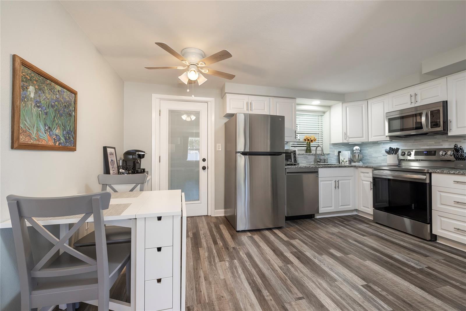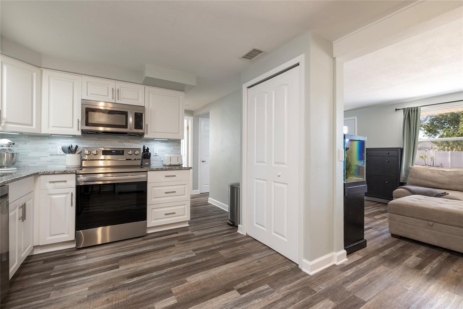 Bem -vindo à sua nova casa no coração do feriado, Flórida! Este quarto de 2 quartos, 1 banheiro, mais atualizado da Flórida/Bônus, possui uma cozinha moderna, com lindos armários de estilo shaker branco, bancadas em granito, backsplash de telha, utensílios de aço inoxidável e amplo espaço para todos os seus tile de gabinete para todos os seus tile de luxo e oferece uma mistura de estilo de madeira. Ideal para quem procura um lugar para chamar de seu. O quintal cercado oferece muito espaço para jardinagem, brincar ou simplesmente desfrutar do sol da Flórida. Esta casa fica a apenas momentos de praias do Golfo, parques locais, lojas e opções de restaurantes. O sistema séptico foi substituído recentemente, incluindo o campo de drenagem.