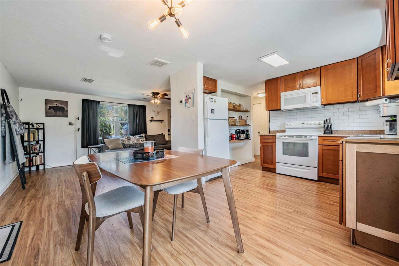 Atualizado 2 BR/1 BA Home no bairro Country Estates, no feriado da Flórida. Entre nesta encantadora casa pela sala de estar, onde você apreciará o belo piso laminado que flui por todo o fantástico layout aberto. A cozinha atualizada é calorosa e funcional, com armários de estilo de madeira, backsplash de ladrilhos de metrô, bancadas de fórmica e prateadas práticas de armazenamento embutidas que oferecem muito espaço para os itens essenciais da sua cozinha. Dois quartos de tamanho agradável compartilham o banheiro atualizado com bom gosto que apresenta uma decoração moderna fresca. A área de jantar perto da cozinha oferece portas francesas que se abrem para o quintal e o pátio. O quintal tem muito gramado para um jardim, animais de estimação ou crianças e o pátio é um ótimo espaço para relaxar, jantar, grelhar ou apenas capturar raios no belo clima da Flórida. A garagem de um carro é onde você encontrará as conexões da lavadora e da secadora e algum espaço de armazenamento adicional. Uma casa perfeita para compradores iniciantes ou qualquer pessoa que queira reduzir o tamanho. Ótima localização com proximidade com nós 19, que oferece uma abundância de restaurantes e lojas, além de uma viagem fácil para Tarpon Springs, New Port Richey, Trinity, praias de primeira classificação, marinas, campos de golfe e parques. Menos de 5 quilômetros até as famosas docas de esponja de Tarpon Springs. Não é necessário HOA e nenhum seguro de inundação. Não perca sua oportunidade! Agende sua turnê privada hoje!