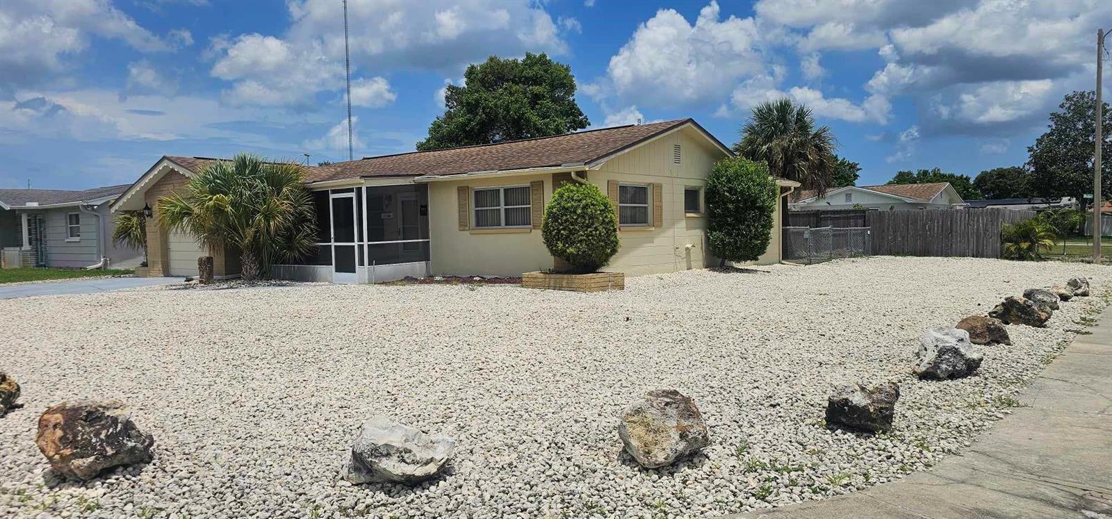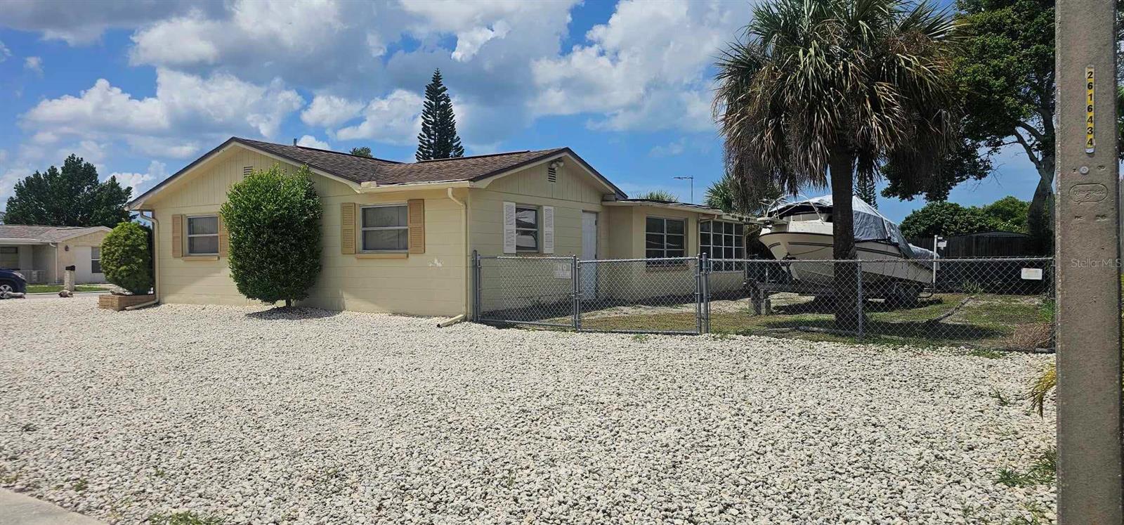 Esta impressionante propriedade de esquina oferece uma área generosa para extras e um portão de largura dupla, permitindo um acesso contínuo pela rua lateral para estacionar seu barco ou trailer com facilidade. Com seu layout amplo, esta casa oferece amplo espaço para relaxar, incluindo 2 quartos grandes e um quarto/escritório extra, abrindo para uma varanda. O quarto principal dispõe de casa de banho completa com acesso direto ao exterior, permitindo fácil entrada pelo quintal, que dispõe de bastante espaço para piscina. O jardim da frente foi recentemente renovado com pedras decorativas para permitir pouca ou nenhuma manutenção. HVAC e aquecedor de água foram recentemente atualizados. Todos os eletrodomésticos e tratamentos de janela, bem como todos os móveis vendidos com a propriedade. Barco e carro na garagem NÃO ESTÃO INCLUÍDOS