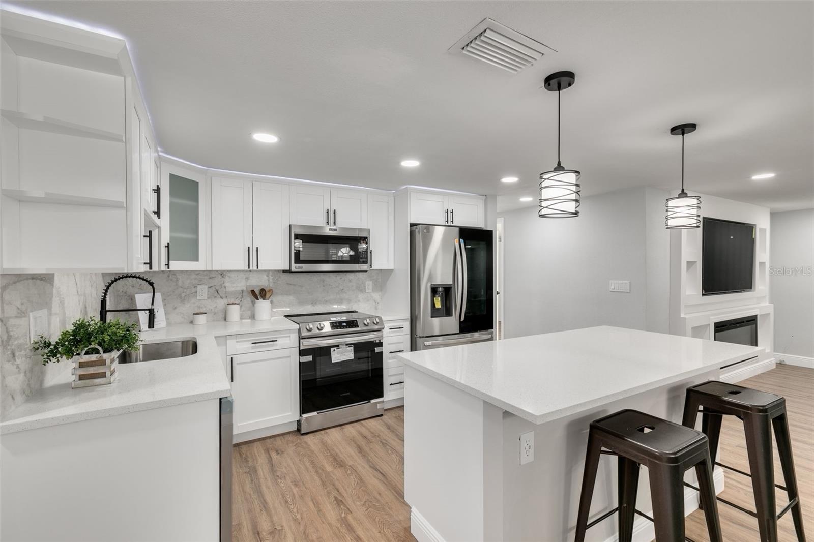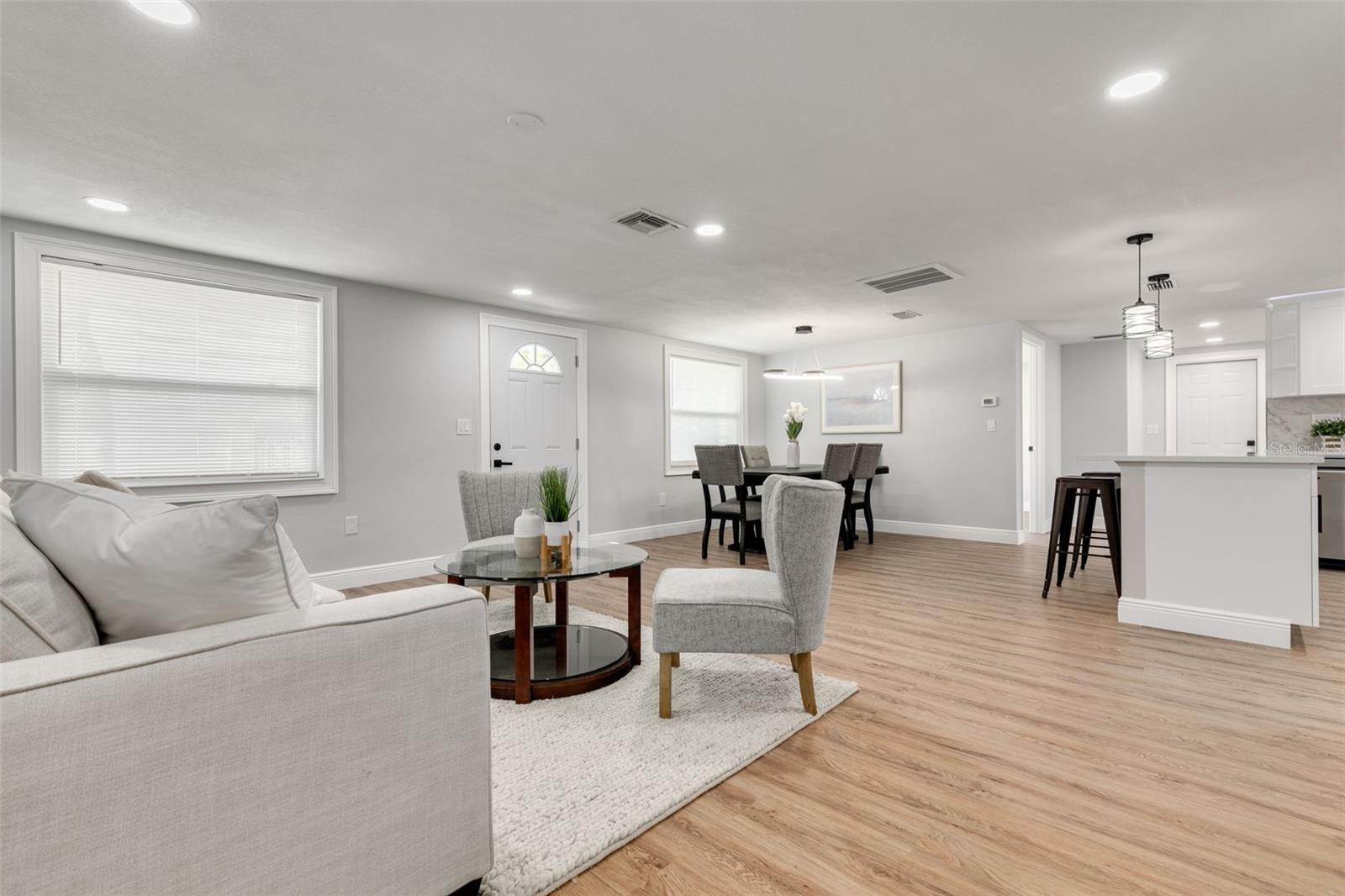 Cada detalhe foi cuidadosamente renovado para criar um espaço que você adorará chamar de lar! Esta casa de 3 quartos, 2 banheiros e garagem para 2 carros atinge o equilíbrio perfeito entre estilo e charme atemporal. Apresentando um telhado mais novo (2022), aquecedor de água (2022), HVAC (2023), vinil impermeável e pisos cerâmicos (SEM TAPETE), além das vantagens adicionais de SEM HOA e SEM SEGURO DE INUNDAÇÃO, esta propriedade oferece um valor incrível. Entre para descobrir uma planta aberta com elementos de design contemporâneo e uma estética moderna. As áreas de jantar e de estar são elevadas por uma parede com estantes embutidas e uma LAREIRA ACONCHEGANTE. A cozinha brilha com eletrodomésticos INOX, armários shaker, uma ilha espaçosa e iluminação de designer. Amplie seu espaço de estar ao ar livre no pátio protegido com vista para o QUINTAL CERCADO - perfeito para café da manhã, churrascos de fim de semana ou até mesmo para adicionar uma piscina. Há muito espaço para animais de estimação brincarem ou atividades ao ar livre. A suíte principal inclui closet e acesso ao pátio privativo, enquanto dois quartos adicionais e um espaço bônus flexível completam o layout. Situada em uma localização central, esta casa fica a poucos minutos das Docas de Esponja de Tarpon Springs, do Parque Fred Howard e do Parque Estadual Anclote Key. Explore as animadas áreas centrais de New Port Richey e Port Richey, conhecidas por sua música, entretenimento e restaurantes. Com acesso conveniente ao Golfo do México e à praia de Clearwater, esta casa é ideal para quem procura abraçar o estilo de vida costeiro da Flórida. Agende seu passeio hoje mesmo!