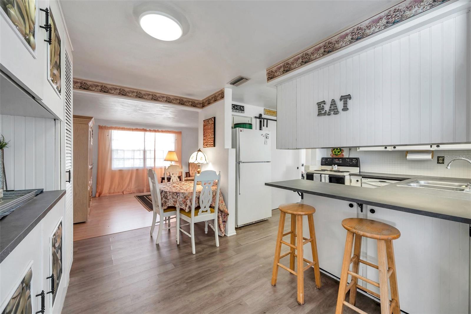 Bem -vindo ao seu paraíso tropical em 3118 Lloyd Dr, Holiday in the Beacon Square Subdivision em Sunny FL. Esta casa bem guardada, orgulho de propriedade, consiste em 2 quartos + florida/sala de família, 2 banheiros e 1 carro em uma garagem sem inundação, sem HOA ou zona de CDD. As principais características externas são o gramado dianteiro de baixa manutenção, com uma majestosa árvore de sombra como peça central, luzes de carruagem, calhas de chuva, garagem e passarelas de concreto de largura dupla e uma varanda da frente coberta. Bônus enorme: esta casa possui persianas de furacões para todas as janelas para tranquilidade durante tempestades, o que é igual a um crédito pelo seguro do proprietário. Ao entrar, você vai adorar o sol natural iluminando o interior junto com as luminárias atualizadas. O piso plano aberto consiste na cozinha, viva, jantar e quartos familiares. A bela cozinha consiste em todos os aparelhos (alcance, ventilação, geladeira e lavadora de louça nova 6/2025, instalados após as fotos foram tiradas), armários de madeira com hardware, balcões de laminados amplos, backsplash de ladrilhos, armário de cabine com portas de rolamento no estilo de celeiro e pia dupla com janela de passagem para a lã exibida. A sala de jantar possui um armário de porcelana personalizado com iluminação de corda colorida LED controlada por um painel de contas remoto e belas portas decorativas antigas de metal. A sala da família tem uma parede de sotaque de tijolos com arandelas iluminadas, ventilador de remo e acesso ao lanai através de portas de vidro deslizantes duplas. Depois de um longo dia, retire-se para o seu quarto principal, que pode acomodar facilmente móveis de tamanho king e possui um armário de madeira de cedro junto com armários modernos da IKEA para armazenamento adicional. Da mesma forma, o segundo quarto também pode encaixar móveis grandes e possui um armário de madeira de cedro. O banheiro principal possui um chuveiro passo a frente com lindos ladrilhos de metrô e chuveiro duplo de cor de cobre moderno vintage com chuveiro de chuva. Há uma torneira de cobre coordenada para o gabinete de pia e vaidade expansiva com armazenamento que completa este banheiro completo. Na garagem de grandes dimensões, você encontrará o segundo banho completo (chuveiro, vaso sanitário, pia) com ventilação CA, conexões de roupa com pia de utilidade, lavadora e secadora incluídas na venda, prateleiras embutidas, armazenamento no sótão e porta de saída lateral. O incrível quintal é um oásis de sonho. Você encontrará barras construídas personalizadas com portas de metal ondulado, opções de assentos e armazenamento embutidas, perfeitas para o entretenimento ao ar livre. O Lanai Big Screen e Cobert é um ótimo lugar para sediar a Family & Friend Getters. Sistemas domésticos: Trane AC 7/2009; Telhado 6/2008. A localização é ideal perto de escolas, praias, praças médicas, shopping centers, restaurantes, locais de culto, aeroportos e atrações turísticas. Faça deste seu futuro lar!