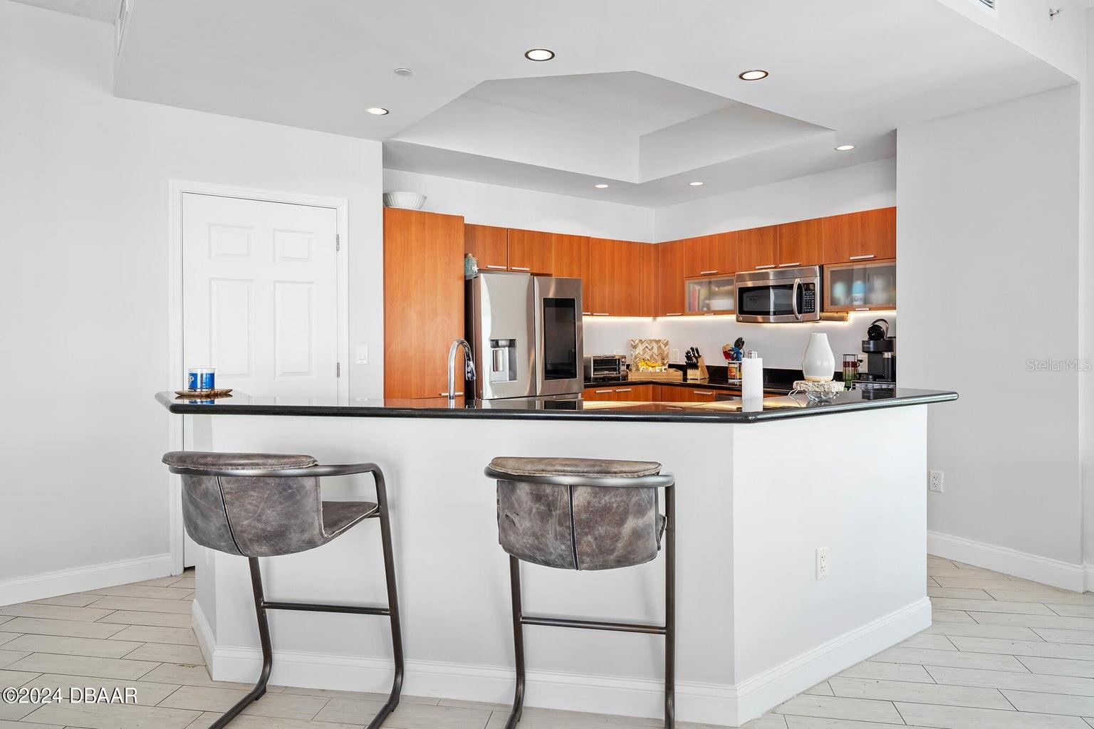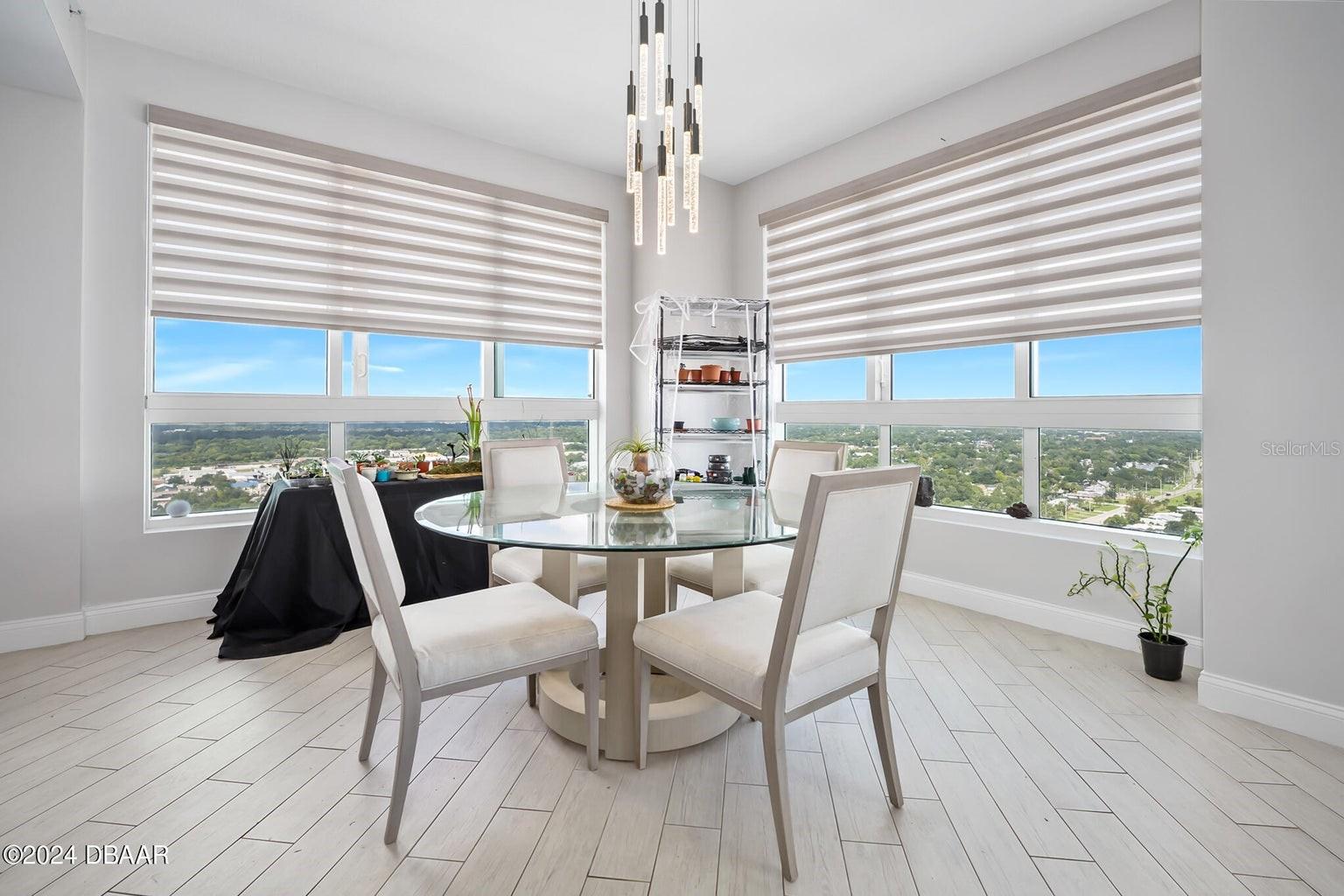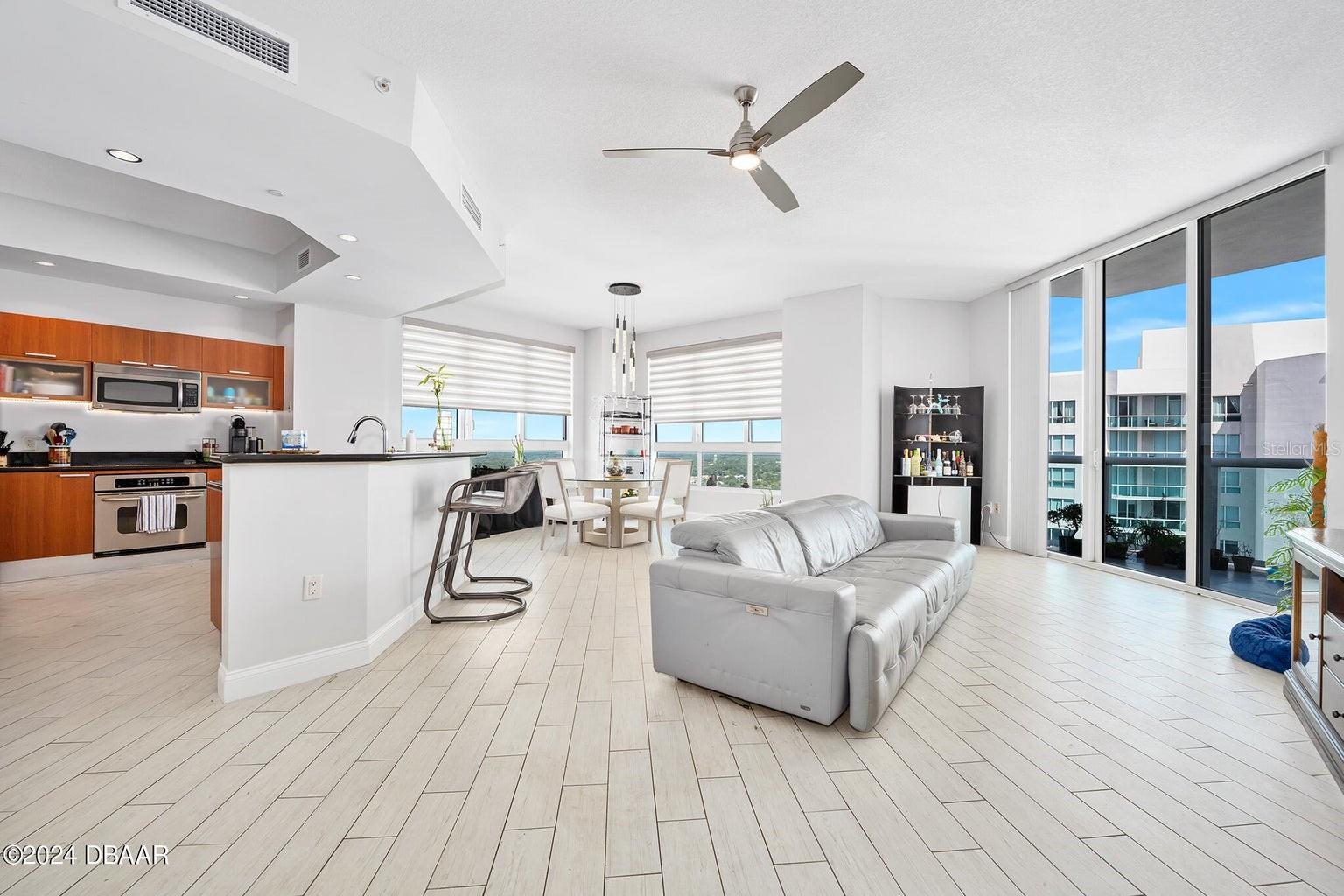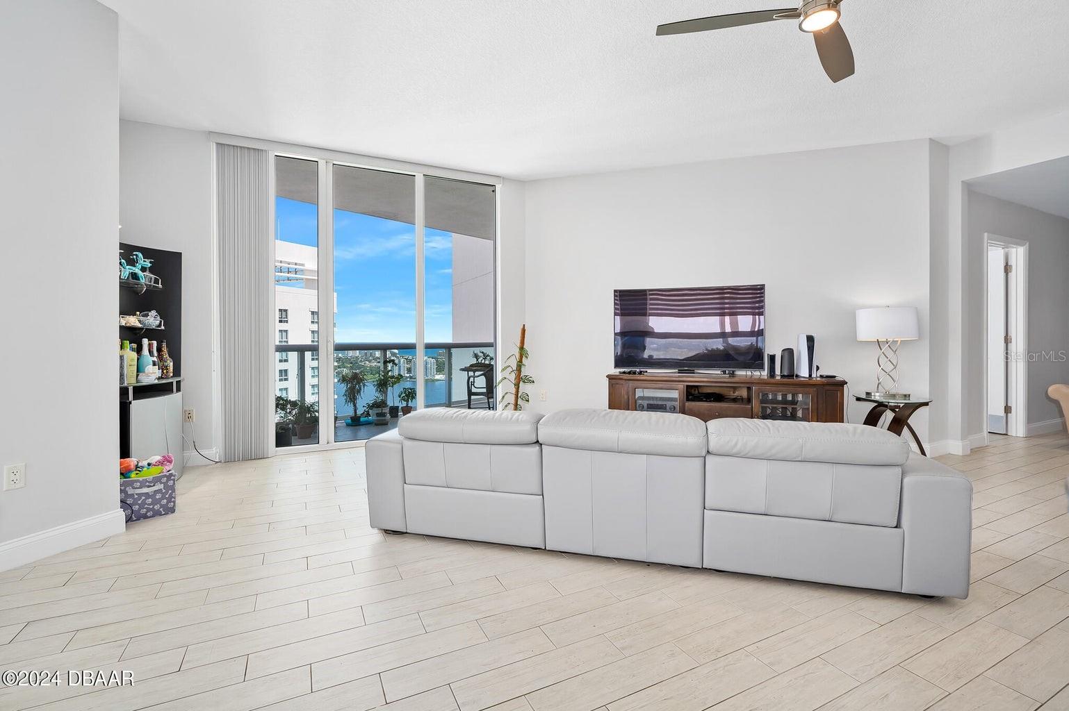 Entre nesta luxuosa cobertura da Marina Grande e seja cativado pelas vistas deslumbrantes do Oceano Atlântico e do Intracoastal do Rio Halifax. Esta residência recém-pintada de 3 quartos e 3 banheiros, situada no 25º andar, oferece uma experiência de vida exclusiva com tetos altos de 3 metros, encontrados apenas em dois andares selecionados dos 26. O elegante piso todo em tábuas de azulejos por toda parte realça o ambiente moderno e sofisticado desta casa. A cozinha gourmet é uma delícia para o chef, com eletrodomésticos de aço inoxidável de última geração, elegantes bancadas de granito e amplo espaço no armário para todos os seus itens culinários essenciais. A planta do quarto dividido cuidadosamente projetada garante o máximo de privacidade, enquanto os grandes closets são equipados com armários California personalizados, proporcionando amplo armazenamento com estilo. Imagine relaxar em sua ampla varanda, onde você pode mergulhar na beleza estonteante da vida costeira - desde o nascer do sol hipnotizante sobre o oceano até o sereno pôr do sol sobre o rio Halifax. Com mais de 2.281 pés quadrados de área útil, este condomínio oferece um ambiente generoso e confortável que realmente parece um lar. As atualizações recentes incluem: Pintura fresca e nova por toda parte Piso elegante todo em tábuas de azulejos Persianas em todos os quartos Geladeira nova e atualizada Prateleiras personalizadas da Califórnia em todos os armários ESTACIONAMENTO NO PRIMEIRO ANDAR Este é o luxo costeiro no seu melhor, esperando que você o chame de lar. Este complexo de condomínio tem o MAIOR SQ. FT de qualquer condomínio e oferece algumas comodidades INCRÍVEIS: Concierge de 7 dias, acesso fechado com segurança com mais de 10.000 pés quadrados de comodidades. Viva a vida luxuosa do condomínio com cinema, salão de festas, academia de ginástica, estúdio de ioga/Pilates/dança, saunas a vapor, sala de bilhar, sala de jogos, biblioteca, Wi-Fi, concierge em tempo integral, banheira de hidromassagem, 2 lindas PISCINAS , saunas a vapor dele e dela e muitos eventos sociais. Atribuído estacionamento em garagem e arrecadação. Aproveite a vida à beira-mar sem manutenção no fabuloso MG em Halifax e você quase nunca precisará sair do condomínio! A Marina Grande é uma comunidade ativa, aos moradores são oferecidas aulas de ioga, noite de pôquer, futebol de segunda à noite, hora do café, noite de cinema, Mahjong, noite de food truck de quinta-feira e Grill & Chill com seus vizinhos. Com fácil acesso ao centro de Daytona Beach, à praia mais famosa do mundo, ao Autódromo Internacional, campos de golfe, caiaque, pesca em alto mar, jet ski e passeios de barco. Não perca esta oportunidade INCRÍVEL e ligue para agendar sua exibição privada hoje mesmo!
