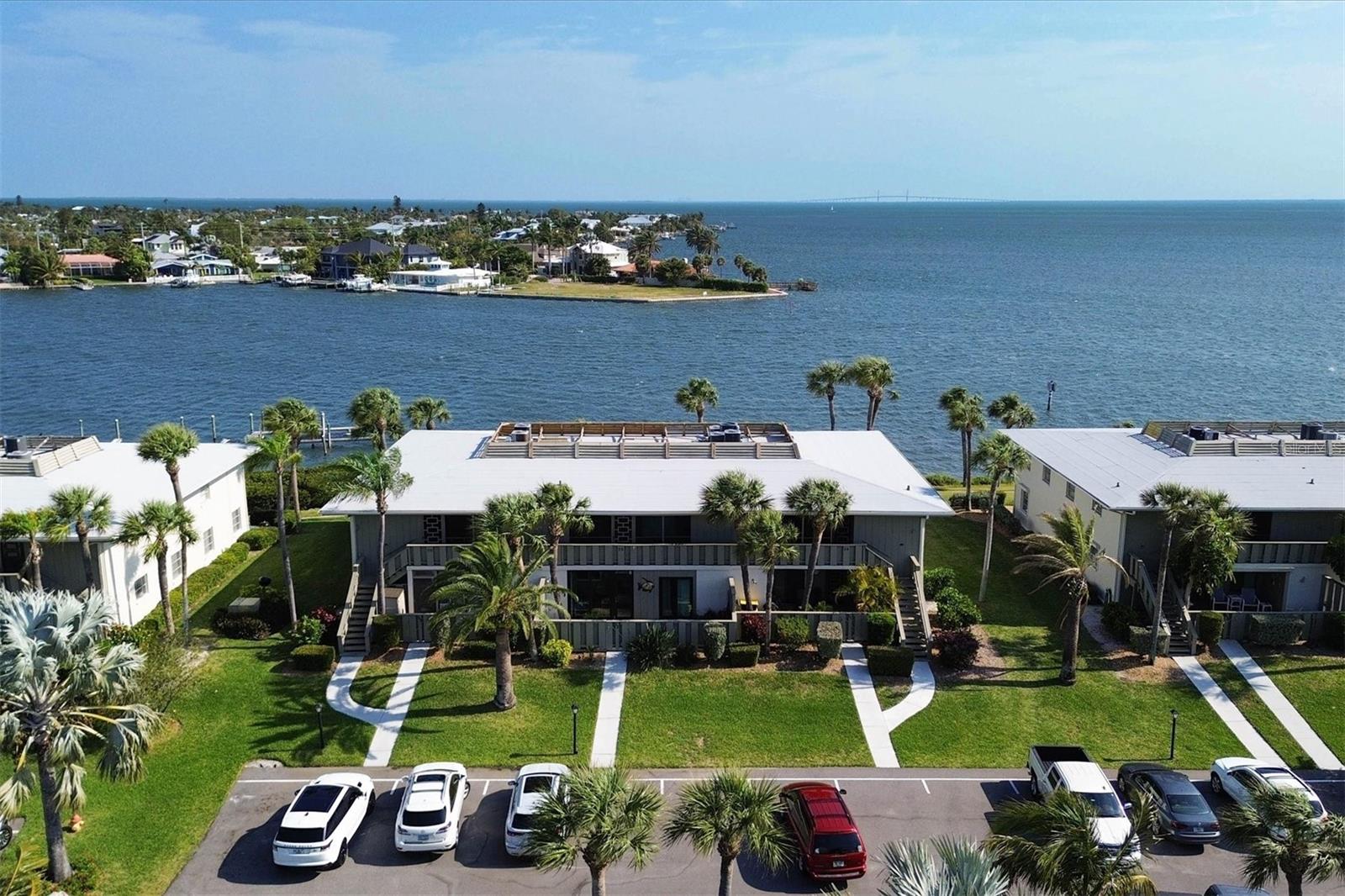 Um panorama de vistas para o mar lhe dá as boas-vindas nesta espaçosa unidade final do segundo andar em Westbay Point & Moorings! E este tem tudo! Vista para o Sunshine Skyway, rampa para barco de 40'E estacionamento coberto! Seus olhos são atraídos pelas belas vistas completas da baía a partir do momento em que você passa pela porta deste banheiro de 2 quartos/2 banheiros com vistas panorâmicas da ponte Sunshine Skyway a partir de sua parede inteira de vidro. Guarde suas portas de vidro deslizantes e aproveite a brisa da baía em sua sala familiar ampliada, recém-pintada e totalmente revestida com azulejos, com espaço de estar estendido. Você pode até acordar todas as manhãs com aquela vista deslumbrante do seu espaçoso quarto principal com portas francesas com vista para a enseada e para as docas comunitárias - que inclui seu próprio ancoradouro de 40'! Sua cozinha estendida inclui amplos armários e uma barra de café da manhã, bem como o armário interno da lavanderia com a nova lavadora e secadora Maytag. Seus convidados irão desfrutar de seu banheiro privativo com penteadeira atualizada e iluminação embutida, bem como de seu próprio controle deslizante para a varanda frontal. O ar-condicionado e os dutos atualizados mantêm tudo confortável, enquanto o isolamento adicional do sótão mantém tudo funcionando com eficiência máxima! Há um lugar para tudo aqui - com armários espaçosos por toda parte, bem como o grande armário do proprietário na varanda e até um lugar para guardar seu carro, em sua própria vaga de estacionamento coberta! Vendido totalmente mobiliado, então venha deixar suas malas e começar a relaxar. Você não vai querer perder esta vista raramente disponível com todas as vantagens adicionais, em uma comunidade tranquila que permite aluguéis mensais e fica na baía, no coração da ilha!