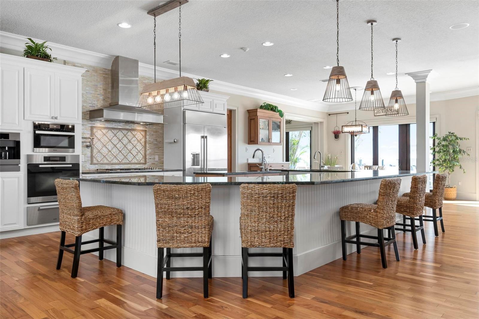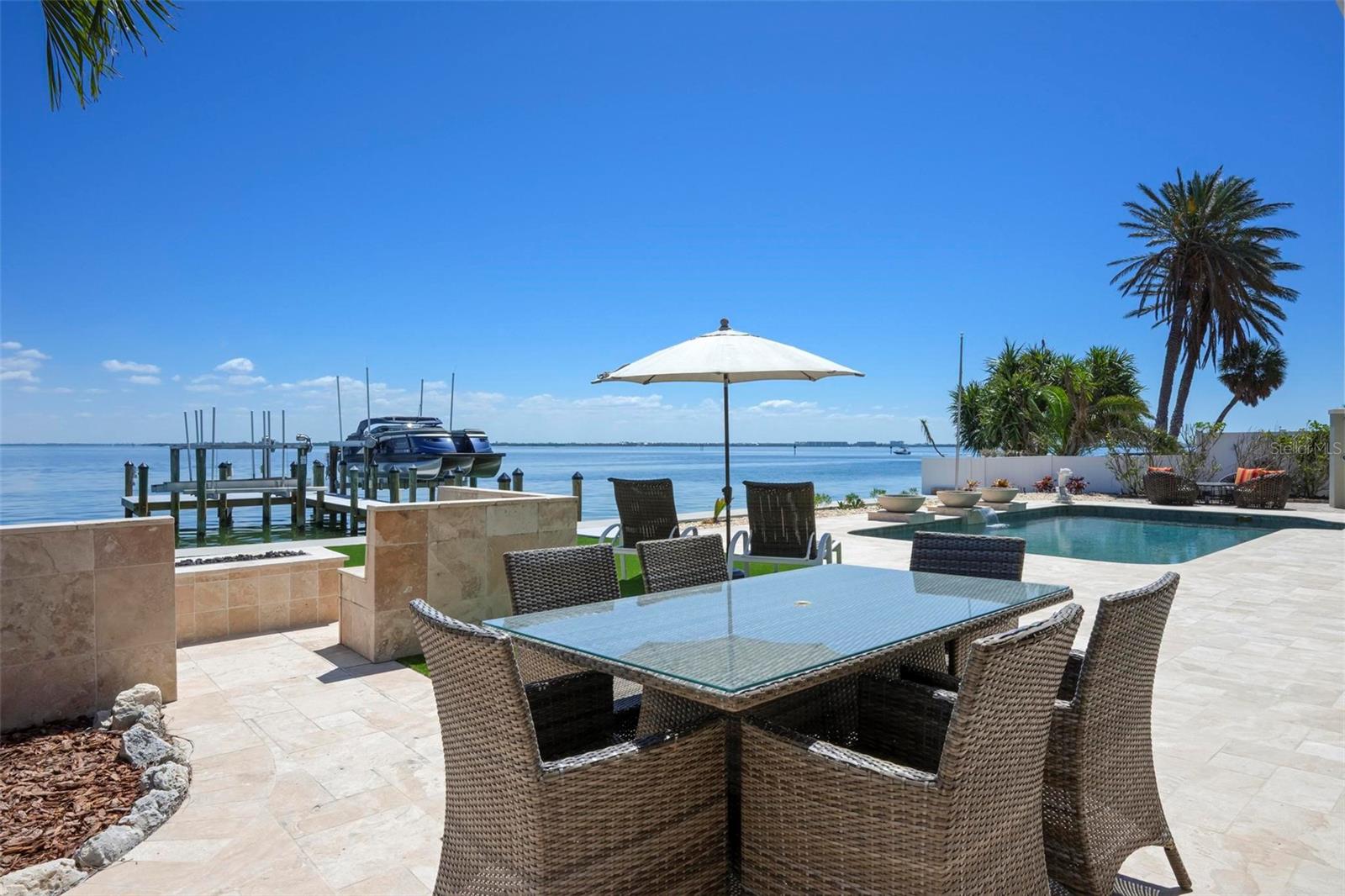 Casa de luxo DIRETA BAYFRONT em KEY ROYALE na Ilha Anna Maria! Esta requintada casa personalizada de 4 quartos, 3,5 banheiros e garagem para 4 carros está pronta para morar, vem mobiliada e oferece mais de 6.200 pés quadrados sob o telhado (4.830 pés quadrados sob o ar) e 103 pés de frente privilegiada para a baía em um dos bairros mais exclusivos da ilha. Esta casa foi amplamente remodelada e oferece um novo paredão, novo cais com nova instalação elétrica e água, e equipada com elevador para barcos e elevador duplo para jet ski. Ideal para velejadores e amantes da água. Projetada para uma vida luxuosa, a planta baixa cuidadosamente projetada inclui uma cozinha de chef de entretenimento com eletrodomésticos de última geração com duas máquinas de lavar louça, máquina de café/espresso embutida, fornos de convecção duplos, uma gaveta de aquecimento e fogão a gás. Esta cozinha foi projetada para tornar a preparação de refeições um verdadeiro prazer e perfeita para reuniões e entretenimento com estilo. Cada detalhe desta casa exala conforto refinado, desde portas sólidas de nogueira e piso de nogueira até tetos altos de 6 metros de altura e intricadas molduras de coroa tripla. Um elevador fornece acesso fácil aos dois quartos de banho privativos no andar de cima, com vistas fabulosas das águas costeiras. Projetado tanto para fugas tranquilas quanto para celebrações memoráveis, aproveite a vida interna e externa, incluindo uma piscina em estilo resort com três fogueiras, uma fogueira de quase dois metros e uma cozinha externa completa com tela retrátil. Divirta-se com estilo em vários espaços internos e externos, seja relaxando à beira da piscina de água salgada, hospedando-se na cozinha externa e na lareira, ou saboreando o café da manhã na varanda voltada para o leste enquanto o sol nasce sobre as águas intracoastais. As características adicionais incluem garagem para 4 carros, entrada circular, estacionamento para carrinhos de golfe e sistemas de eficiência energética. Localizado na comunidade amigável de carrinhos de golfe de Key Royale, com acesso direto a praias, lojas e restaurantes. Além disso, você tem a opção de ingressar no exclusivo Key Royale Club, que abriga o único campo de golfe, restaurantes e eventos sociais da ilha. Mobiliado e pronto para morar - esta é a vida à beira-mar da Flórida no seu melhor! Passo a passo em 3D e plantas baixas do primeiro e segundo andares disponíveis mediante solicitação. Ligue para sua exibição privada hoje.