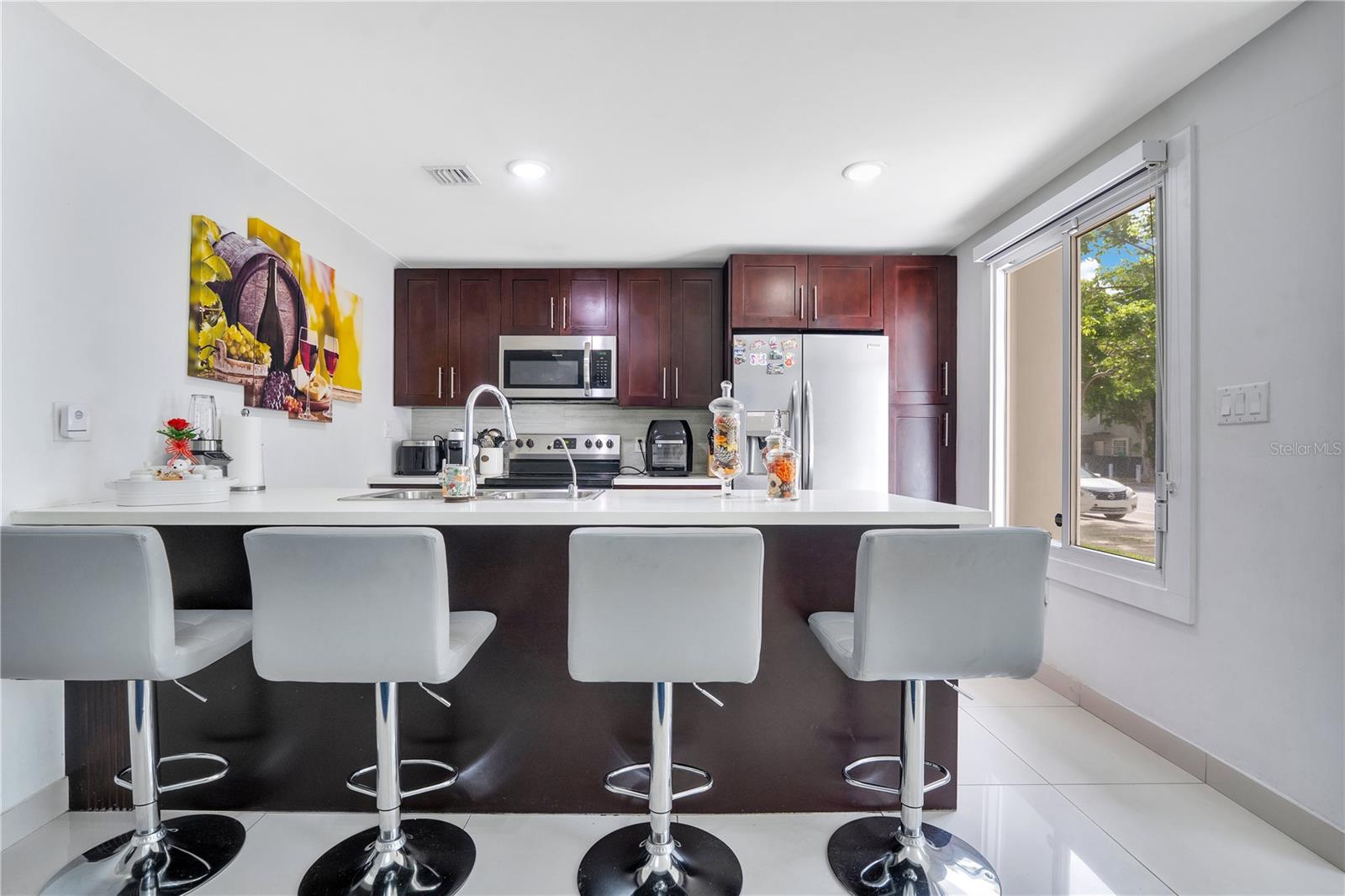 Receba um crédito de US $ 3.899 ao credor no fechamento desta impressionante casa de 4 quartos e 3,5 banheiros, localizada na desejável comunidade do Paradise Gardens! Construído em 2020, esta casa combina o design moderno com funcionalidade, apresentando um layout brilhante e de conceito aberto perfeito para entretenimento e vida cotidiana. A elegante cozinha possui bancadas de quartzo, utensílios de aço inoxidável e um espaçoso bar de café da manhã com vista para as áreas de jantar e de estar. Grandes janelas enchem a casa com luz natural, destacando os elegantes pisos de azulejos e acabamentos frescos e contemporâneos. Aproveite a conveniência de ter a suíte primária no primeiro andar, oferecendo privacidade e conforto, enquanto no andar de cima você encontrará quartos de tamanho generoso, perfeito para família ou convidados. Os banheiros são lindamente atualizados com toques elegantes e modernos. Saia do seu pátio cercado privado, ideal para reuniões ou relaxamento silencioso. Com uma localização baixa de HOA, conveniente, perto de compras, jantares, escolas e grandes rodovias, esta casa pronta para mudança é uma oportunidade excepcional para os compradores de hoje!