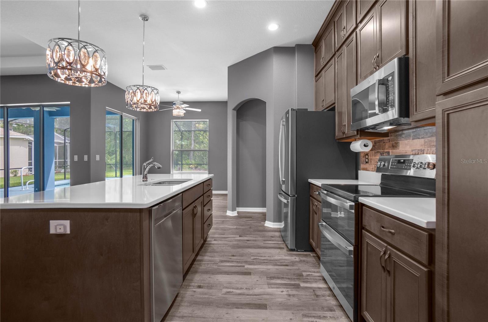 Bem-vindo à planta baixa do Sweetwater Homes Royale com muitas atualizações, incluindo um 4º quarto, localizado em um grande terreno de esquina na bela Sugarmill Woods! Esta casa inclui um grande círculo duplo garagem para suas necessidades extras de estacionamento. Concluída no outono de 2023, esta casa 4/3/2 oferece todas as atualizações sem a espera de se construir. Este conceito aberto, planta dividida, com mais de 2.000 pés quadrados de área útil O espaço, mais 2 suítes com closets, além de luxuoso piso de pranchas de vinil em toda a área de estar principal, está pronto e aguardando seus novos proprietários. O banheiro principal oferece pia dupla de quartzo, vaso sanitário separado e amplo box amplo de luxo com dois chuveiros e acesso à Lanai. A segunda suíte é completa com closet e banheiro completo com acesso Lanai. Todos os 4 quartos incluem armários embutidos com prateleiras e gavetas. Todos os 3 banheiros incluem chuveiros de azulejos. Bancadas de quartzo em toda a casa. Grande ilha de cozinha com vista para a grande sala com armários até ao teto para arrumação extra. Aparelhos de aço inoxidável, incluindo forno duplo e acesso Lanai fora da cozinha. Lavanderia separada com armário, pia e armários. Grande sala com teto bandeja com vista para a varanda com portas deslizantes triplas retráteis. Grande piscina aquecida com banheira de hidromassagem separada, cada uma com seus próprios controles de aquecimento separados. Grande garagem para 2 carros completa com piso em epóxi e racks de armazenamento metálicos, além de acesso ao sótão. Convenientemente localizado perto de lojas, restaurantes, caiaque, do golfo e da Suncoast Parkway para acesso rápido e fácil a Tampa. Associação opcional ao clube de campo que pode dar acesso à piscina comunitária, academia, quadras de pickleball e para suas necessidades de golfe e restaurantes. A casa inclui sistema de irrigação do gramado e garantia transferível do construtor.