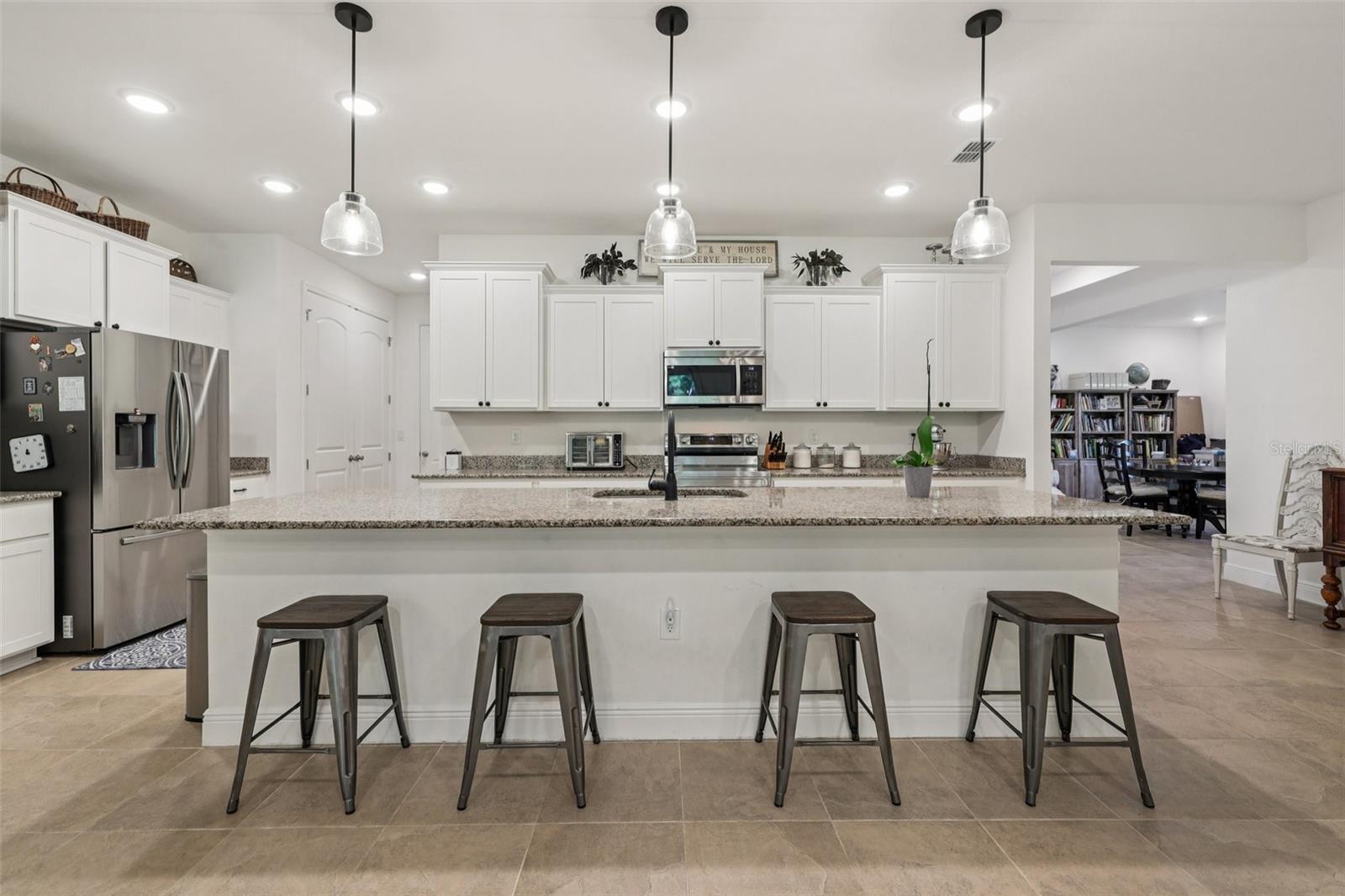 Com apenas 3 anos, esta casa oferece o luxo de viver “como nova” sem esperar por novas construções! Esta impressionante residência de 4 quartos, 3 banheiros e garagem para 3 carros possui mais de 3.100 pés quadrados de área de estar lindamente projetada. Entre em um hall de entrada acolhedor que leva a um escritório/escritório bem iluminado, ideal para trabalhar em casa ou desfrutar de um retiro tranquilo. O coração da casa é a espaçosa área de estar e jantar de conceito aberto, centrada em torno de uma cozinha deslumbrante equipada com bancadas de granito, uma despensa grande e uma enorme lavanderia. Uma generosa ilha com altura de bar oferece o local perfeito para refeições casuais, entretenimento ou reuniões familiares. Cada armário é equipado com prateleiras personalizadas para maximizar a organização. O layout cuidadoso dos quartos divididos garante privacidade para todos. O segundo quarto inclui seu próprio banheiro completo e fica perto do escritório - perfeito para hóspedes ou uma possível suíte para sogra. Os quartos três e quatro ficam em sua própria ala, completos com uma aconchegante área de bônus, ideal para jogos, brincadeiras ou uma vida flexível. A suíte principal é um verdadeiro santuário com pias duplas, armários para ele e para ela, uma relaxante banheira de jardim, um chuveiro com box de vidro e um vaso sanitário privativo. Saia para a grande varanda coberta com vista para um espaço verde tranquilo - um ambiente convidativo para o café da manhã ou para relaxar à noite. Com uma sala de jantar formal flexível que pode se adaptar facilmente ao seu estilo de vida, esta casa oferece infinitas possibilidades de viver, trabalhar e se divertir. Uma casa lindamente projetada e pronta para morar que realmente tem tudo.