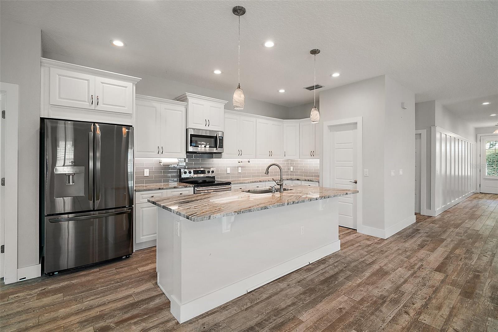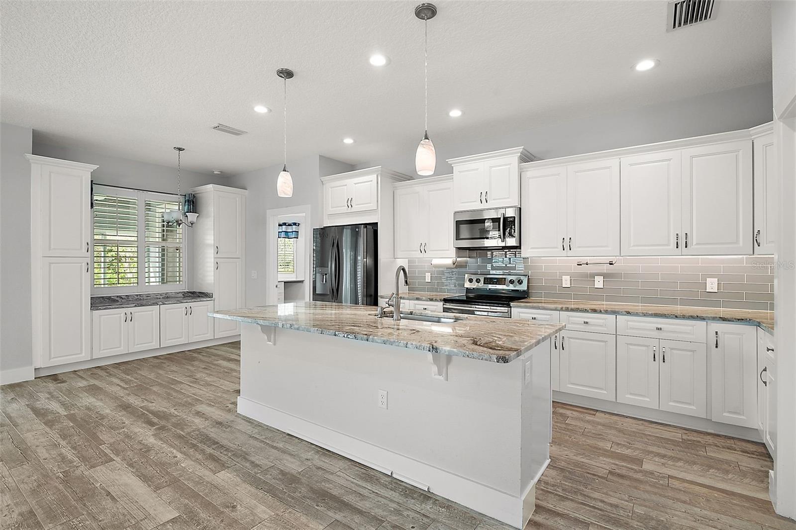 Casa encantadora e sofisticada, com atualizações, vistas para o lago e a doca da comunidade em Little Lake Harris. Bem-vindo ao seu refúgio de sonho em Howey-in-the-Hills, uma cidade serena e encantadora, onde os carvalhos arborizados e as palmas das mãos balançadas alinham as margens de Little Lake Harris, Harris. Oferecendo paz, tranquilidade, uma fatia de charme "antigo da Flórida" e sem HOA, esta comunidade perfeita para você convida a experimentar o lago que vive no seu melhor. O acesso a uma rampa comunitária de doca e barco significa que você está a poucos momentos da altamente procurada cadeia de lagos Harris, ideal para passeios de barco, pesca ou jantar em restaurantes à beira-mar. Esta casa lindamente trabalhada em 2,204 pés quadrados, construída em 2019, está situada em um estacionamento de um terço de hectares com vistas para o lago. Car amorosamente mantido por seu proprietário original, a casa é uma prova de artesanato de qualidade e design atencioso. A partir do momento em que você chega, você se sentirá à vontade, pois as vistas cativantes do lago o cumprimentam ao entrar na espaçosa entrada de automóveis. A arquitetura de estilo de casa da casa exala charme, com um telhado de duas águas, janelas fechadas e uma varanda da frente acolhedora emoldurada por paisagismo exuberante. A garagem para dois carros e a garagem estendida oferecem amplo estacionamento para você e seus convidados. Entre e descubra uma planta bem projetada e de quarto dividido, adaptado para privacidade e entretenimento. A paleta de cores neutra, complementada pelo piso de ladrilhos com aparência de madeira e tetos de 9 pés (10 pés na área de estar principal), cria uma atmosfera brilhante, aberta e convidativa. Detalhes elegantes, incluindo lambris personalizados, moldagem por coroa, tetos de bandeja, iluminação embutida, persianas de plantações e portas internas de 5 painéis, elevam o estilo da casa. O coração da casa é a cozinha de conceito aberto, a área de estar e de jantar, perfeita para hospedar familiares e amigos. A cozinha elegante é o sonho de um chef, com armários de boa distância com prateleiras, bancadas em granito, um elegante backsplash de azulejos, uma ilha central com assentos de barra de café da manhã, iluminação de pingentes, um buffet embutido e uma despensa. Uma porta deslizante de vidro leva à varanda traseira, onde você encontrará um teto de madeira, ventilador de teto e janelas deslizantes panorâmicas-um espaço ideal para relaxar ou entreter enquanto aprecia as belas vistas. A suíte primária é um verdadeiro santuário, oferecendo moldagem por coroa, uma janela de sacada com uma mesa embutida, acesso privado ao lanchone e um banheiro privativo com balcões de granito de pia dupla, um elegante chuveiro personalizado com um vidro sem moldura e um espaçoso closet. Dois quartos adicionais de hóspedes apresentam armários grandes e compartilham um banheiro completo elegante com acabamentos de grife e uma combinação de banheira/chuveiro no corredor. Outros destaques incluem uma lavanderia conveniente com armazenamento extra, uma garagem com um piso pintado e acesso no sótão puxado e painéis solares para economizar energia para um estilo de vida ecológico. O espaço ao ar livre oferece infinitas possibilidades. O quintal é uma tela em branco, pronta para o seu sonho ao ar livre oásis. Você encontrará uma das muitas docas comunitárias à beira do lago no final da rua - um local perfeito para assistir a pôr do sol. O Griffin Park fornece acesso adicional à rede de lagos Harris, a poucos quarteirões de distância pela rampa da cidade. As estradas de pedágio convenientes estão nas proximidades, com fácil acesso ao Aeroporto Internacional de Orlando, Disney World e outras atrações importantes. Esta jóia escondida em Howey-in-the-Hills é mais do que um lar-é um estilo de vida. Veja por si mesmo e descubra o charme pacífico e o conforto moderno desta propriedade excepcional.