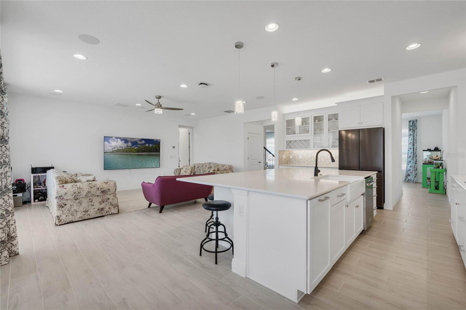 Bem-vindo à casa dos seus sonhos na pitoresca comunidade de Talichet em Howey In The Hills, Flórida. Esta ampla residência de dois andares, com mais de 5.000 pés quadrados, é perfeita para uma família grande ou um conceito de vida multigeracional. Com sete quartos espaçosos e quatro banheiros e meio lindamente decorados, esta casa oferece amplo espaço e luxo. O quarto principal do primeiro andar é um retiro sereno com banheiro tipo spa que inclui um chuveiro grande e uma banheira independente. Desfrute de acesso direto ao seu amplo quintal através de uma porta francesa privada, perfeita para criar o seu próprio oásis ao ar livre. O coração desta casa é a sua linda cozinha gourmet. Armários de luz atualizados, completos com uma prateleira para vinhos e portas de vidro para exibição, preparam o cenário para a excelência culinária. Uma ilha grande, grande o suficiente para acomodar seis pessoas, um enchimento de panela e um backsplash impressionante tornam esta cozinha uma delícia para o chef. Adjacente à cozinha, a sala de jantar oferece o cenário perfeito para refeições em família e recepção de convidados. Trabalhe em casa no escritório designado, que possui elegantes portas francesas de vidro, oferecendo privacidade e estilo. No andar de cima, uma enorme sala de bônus e uma sala de mídia oferecem infinitas possibilidades de relaxamento e entretenimento. A comodidade de uma segunda lavanderia e uma área versátil pronta para um grande bar molhado ou uma segunda cozinha potencializam a funcionalidade deste andar. Dois conjuntos de quartos conectados por banheiros Jack e Jill garantem conforto e privacidade, enquanto dois quartos adicionais e um quarto banheiro completo oferecem ainda mais espaço para familiares e convidados. O quintal privado, situado em uma área residencial de grandes dimensões, oferece um retiro tranquilo e amplo espaço para atividades ao ar livre. Localizada num bairro tranquilo e sereno, esta casa oferece o equilíbrio perfeito entre tranquilidade e conectividade. Aproveite todos os benefícios da Flórida morando nesta bela e espaçosa casa. Bem-vindo ao lar.