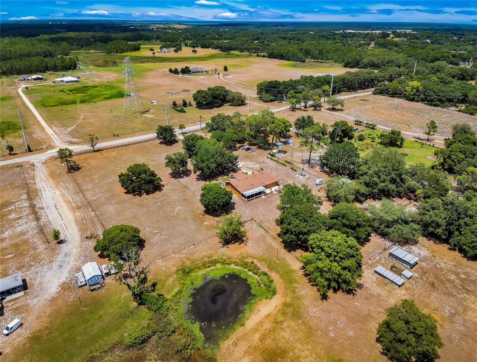 Não perca este retiro rural exclusivo de 10 acres em um local central da Flórida! A apenas 3 km da rodovia FL, aprox. 37 minutos para Orlando e 80 quilômetros para Ocala - desfrute da mistura perfeita de vida do país e conveniência da cidade. Agricultura zoneada, esta propriedade versátil é ideal para gado, cavalos, cabras, galinhas ou criação de sua propriedade dos seus sonhos. Os recursos incluem 2 áreas cercadas separadas, barracas de animais e um grande galpão para armazenamento ou ferramentas. A casa personalizada de 2.880 pés quadrados oferece 3 quartos, 1,5 banheiros e toneladas de charme. O espaço aberto apresenta ladrilhos decorativos de teto e piso laminado. A cozinha atualizada possui bancadas em granito, novos armários e aparelhos modernos. Desfrute de uma sala de jantar e uma sala de jantar ou flexão formal. A garagem convertida fornece uma espaçosa sala de bônus - ideal para uma área de negócios, escritório ou área de hóspedes. A suíte primária inclui meio banho e sala flexível anexada - excelente como um recanto de leitura, berçário ou escritório. Do lado de fora, relaxe ou entregue sob a Lanai de grandes dimensões, enquanto com vista para a lagoa e a área pacífica. Esta propriedade oferece infinitas possibilidades - Farm, retirada ou paraíso familiar privado. Agende sua exibição particular hoje!