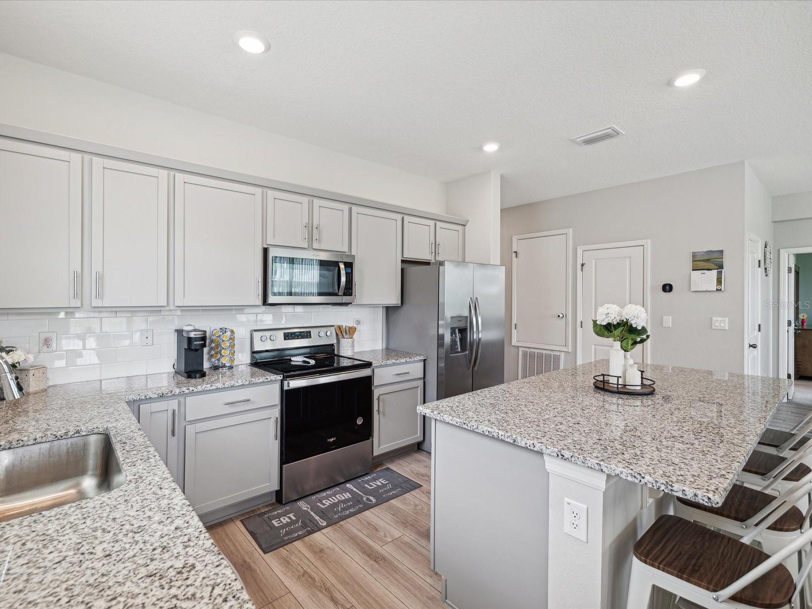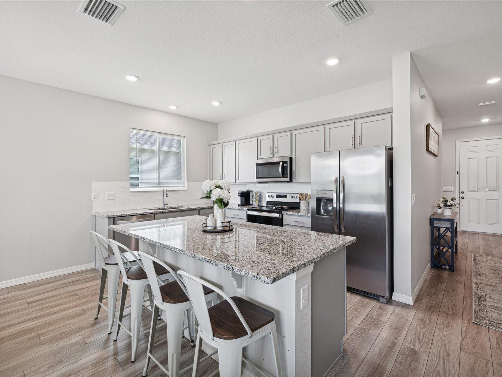Bem-vindo à sua casa quase nova na comunidade Legends Pointe! Esta encantadora casa de um andar possui 4 quartos, 2 banheiros e uma garagem de 2 carros, perfeita para uma vida confortável. No interior, você encontrará um espaço acolhedor com utensílios de aço inoxidável modernos, bancadas em granito e piso de prancha fácil de manutenção. O sistema doméstico inteligente acrescenta conveniência à sua vida diária. O layout aberto conecta a cozinha, a área de jantar e a sala da família, tornando -o ótimo para a vida entre diversão e cotidiana. A suíte do proprietário inclui um closet e um banho de banho com um chuveiro de azulejos. Os outros três quartos oferecem espaço flexível para a família, os hóspedes ou um escritório em casa. Lá fora, o pátio e o quintal oferecem uma bela vista da água, perfeita para desfrutar de dias ensolarados. Localizado perto da FL-589, esta comunidade fornece fácil acesso a compras, praias locais e muito mais. Venha ver esta casa hoje antes de desaparecer!