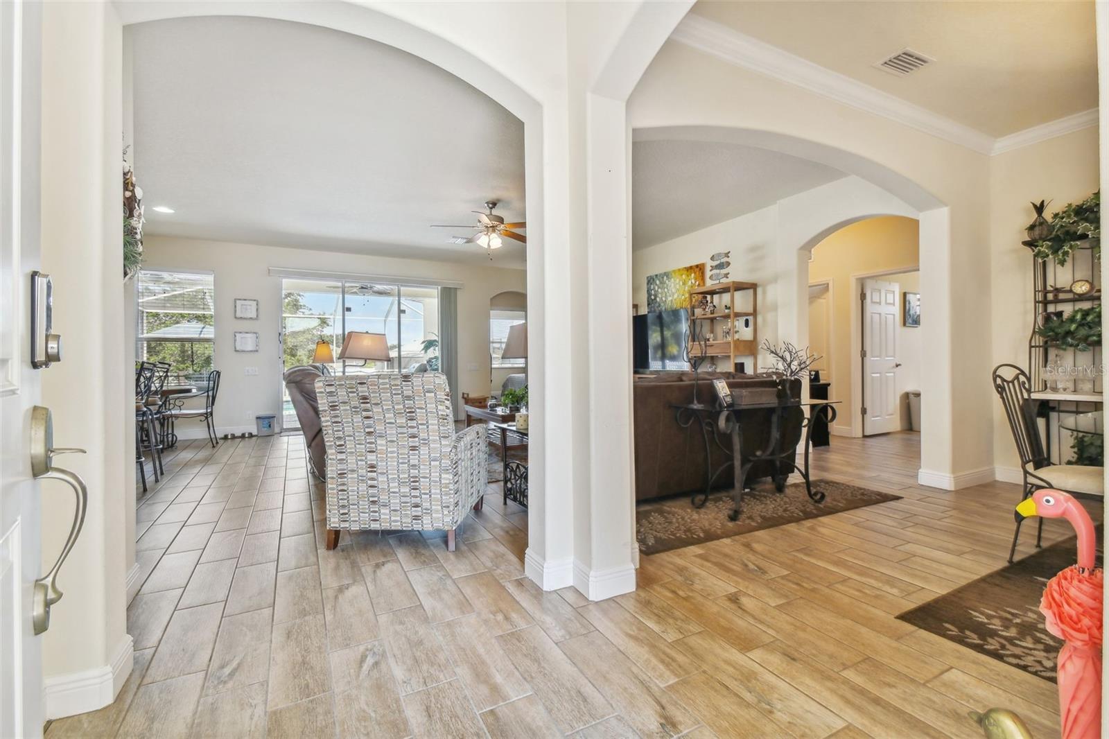 NÃO ESTÁ EM UMA ZONA DE INUNDAÇÃO, SEM DANOS DE FURACÃO, Apresentando seu oásis doméstico ideal! Esta deslumbrante propriedade isolada apresenta a tão procurada planta Islamorada, com 3 quartos espaçosos e 2 banheiros e meio. Desfrute de comodidades luxuosas com uma piscina AQUECIDA em forma de feijão complementada por uma banheira de piscina externa, cercada por pavimentação e uma gaiola segura, tudo cercado por uma charmosa cerca de vinil. Quintal totalmente cercado. O interior espaçoso possui tetos altos por toda parte, com um elegante teto de bandeja no enorme quarto principal. Delicie-se com o amplo banheiro principal com pias duplas e um vaso sanitário separado, além de um enorme armário para todas as suas necessidades de armazenamento. Prepare uma tempestade na grande cozinha aberta, completa com uma bancada de granito para café da manhã, amplos armários e uma enorme despensa. As portas francesas abrem para um escritório versátil ou espaço de escritório, oferecendo potencial para um 4º quarto. Divirta-se com facilidade na distinta área de jantar e na ampla sala de estar. Desfrute de privacidade sem vizinhos traseiros, já que a casa fica em uma área de retenção seca em um local de grande altitude em Hudson - seguro contra inundações não é necessário. As características adicionais incluem uma lavanderia interna conveniente, um amaciante de água, um aquecedor de piscina, uma varredura de piscina e uma rara garagem para 3 carros. Não perca esta fantástica oportunidade de uma casa bem planejada e perfeita para receber! Torne esta residência notável sua hoje. HOA de US$ 157 por mês inclui cabo básico e lixo. A comunidade fica perto de lojas, restaurantes, praias e estradas por conveniência.