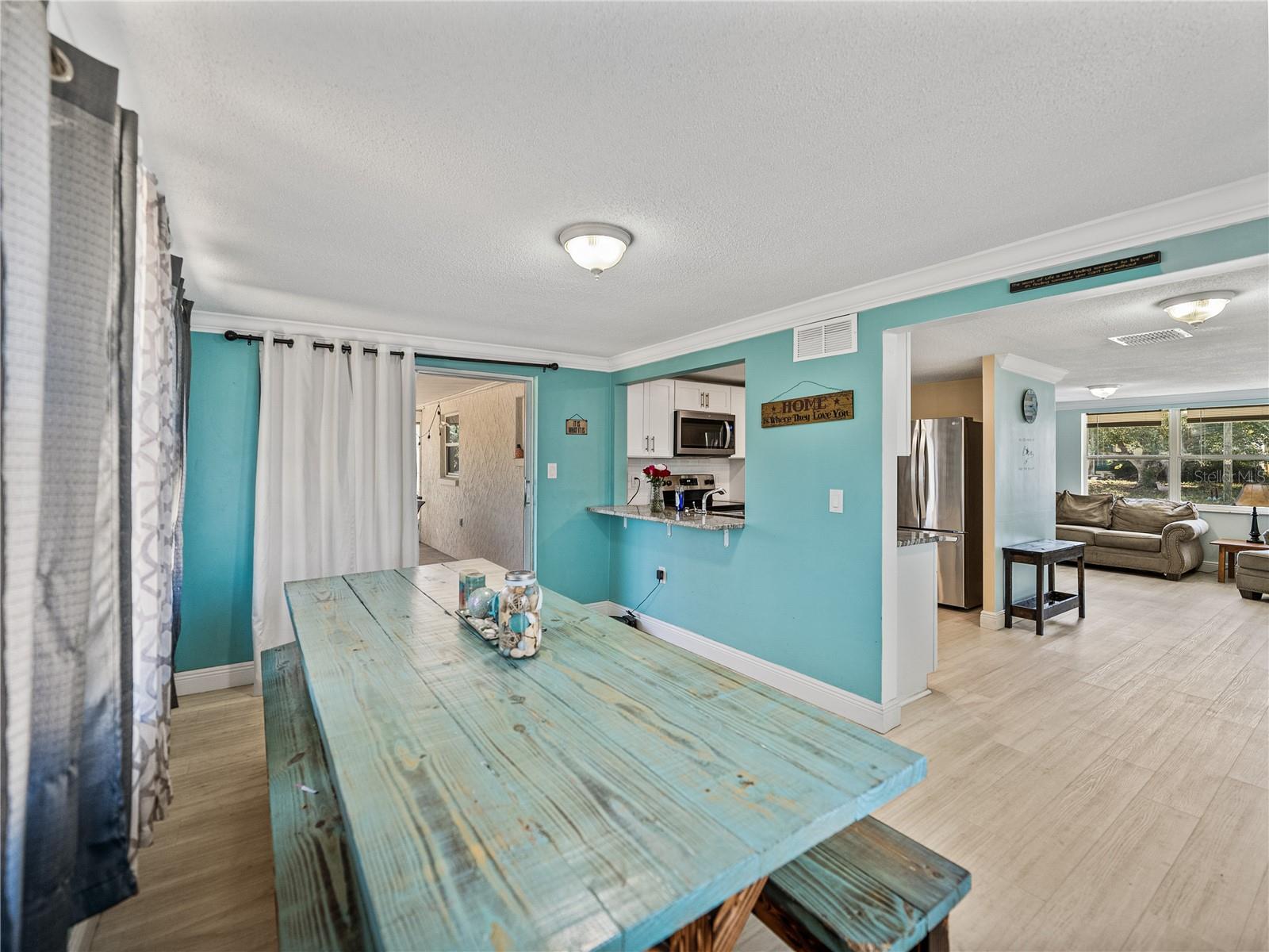 Bem-vindo a este encantador estilo costeiro, atualizado em 2 quartos e 1 casa de banho. Solte suas malas e vá à direita. Esta casa é tão aconchegante com pisos LVP por toda parte e janelas que permitem muita luz natural. Esta é a casa de partida perfeita. A cozinha foi lindamente atualizada com bancadas em granito. A sala de jantar anexada que também possui uma grande porta de vidro deslizante que leva à nova sala fechada da Flórida, para apreciar o incrível clima da Flórida. O banheiro também foi atualizado com mármore lindo. NOVO lava -louças e microondas. Home também possui um novo gerador de casas inteiras. e estantes de prateleiras para armazenamento. O enorme quintal- o gramado possui uma nova instalação de sistema séptico em crescimento. Minutos da costa! Marque uma consulta para vir esta propriedade Coastal Anovada.