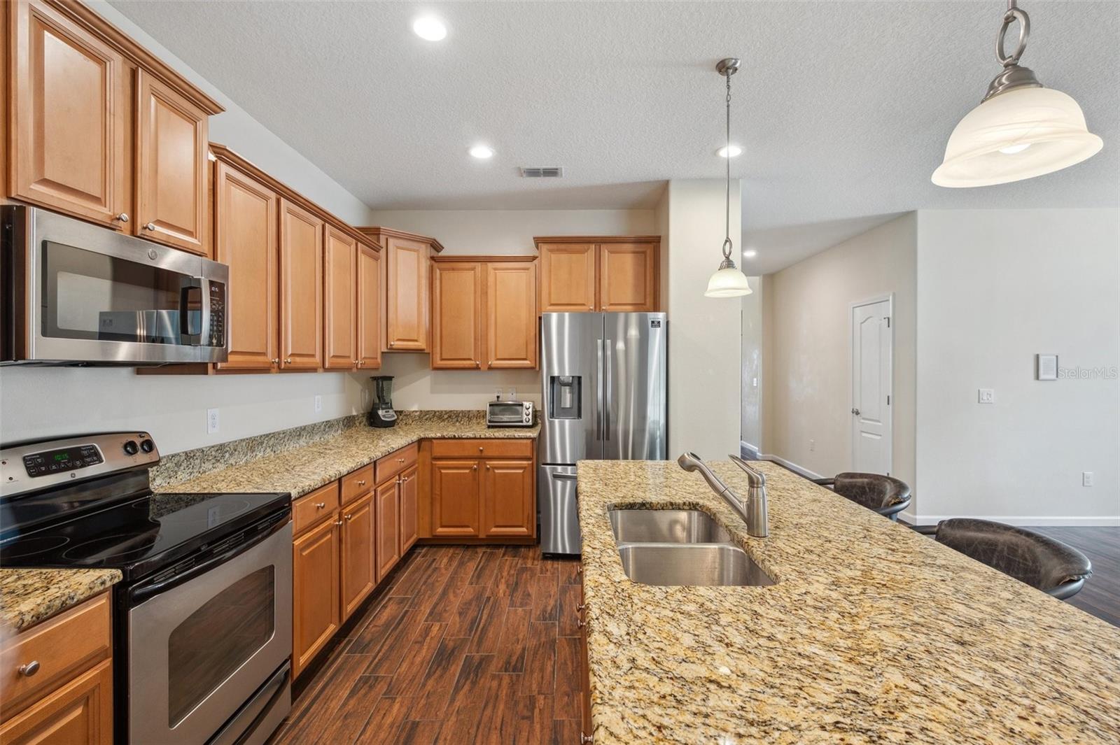 CÉUS DO POR DO SOL. QUINTAL SERENO. FRENTE DA LAGOA. Casa térrea que oferece mais de 2.000 pés quadrados de área útil, idealmente situada em um terreno de conservação sereno (TOTALMENTE CERCADO) com um lago tranquilo do outro lado da rua. Esta residência de 4 quartos e 3 banheiros completos apresenta uma planta dividida em três vias elegante e espaçosa que garante privacidade e conforto para todos na casa. O piso STYLISH PLANK TILE é executado de forma consistente em toda a casa, criando uma aparência perfeita. A cozinha aberta está equipada com frigorífico Samsung (2022), micro-ondas GE (2023), armários escalonados, ilha, balcões de granito, eletrodomésticos em inox, prateleiras extraíveis e despensa. Esta casa pronta para morar. A lavanderia fica fora da garagem e INCLUI uma lavadora e secadora LG de alta qualidade (2017). Itens dignos de menção; Exibido no pátio, o quarto principal possui (2) closets, suíte adicional, quartos amplos, muito espaço no armário, porta de entrada de VIDRO com janela de popa, iluminação LED por toda parte, garagem pintada (2025), piso de epóxi da garagem e molas de porta de garagem substituídas (2019), Exterior da casa PINTADO (2021) e Telhado (2011). The Verandahs é um condomínio fechado situado entre hectares de árvores exuberantes, a poucos quilômetros da Suncoast Parkway e a cerca de 16 quilômetros do Golfo. É adequado para GOLF CART e inclui playground, PISCINA COMUNITÁRIA com banheiros, clubhouse e academia (aberta 24 horas). A uma curta distância de carro do Starkey Wilderness Park (acampamento e trilhas), do parque aquático de fontes naturais Buccaneer Bay (aproximadamente 32 km). Centro comercial Publix a poucos minutos de distância, Aeroporto Internacional de Tampa (aproximadamente 35–40 minutos). Pedale até a ciclovia Suncoast. A conta fiscal INCLUI taxa anual de CDD. BAIXA HOA ($ 55,00 mensais). Planta baixa e vídeo DISPONÍVEIS. Compre um pedacinho da Flórida agora.
