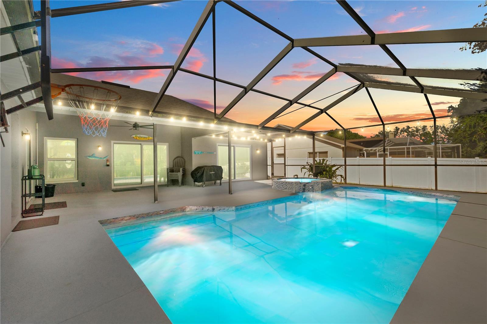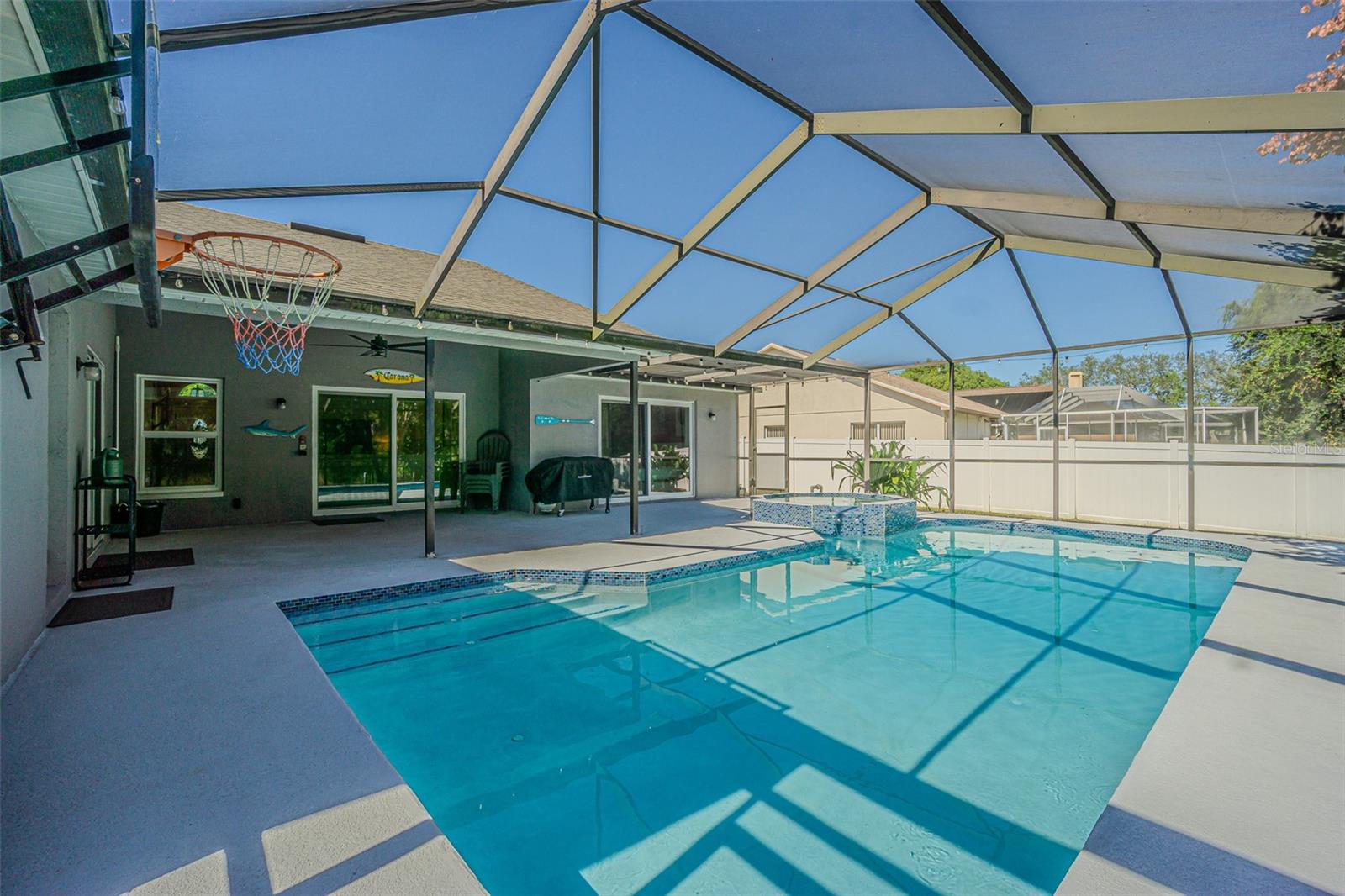 Bem-vindo a esta casa excepcional de 3 quartos e 3,5 banheiros, com um escritório espaçoso e uma suíte privativa para sogra com banheiro completo e cozinha compacta (sem fogão). Entre em um elegante layout aberto com tetos abobadados, iluminação de designer e uma cozinha lindamente atualizada com prateleiras abertas, perfeita para entretenimento. A sala é ampla e convidativa, oferecendo muito espaço para relaxar e reunir a família. A suíte principal se abre diretamente para a piscina e inclui uma banheira de inspiração spa com banheira de imersão totalmente nova e box amplo. Os quartos adicionais são espaçosos e cheios de luz natural. Do lado de fora, desfrute de sua piscina privada de água salgada em estilo resort, reconstruída há apenas dois anos e com vista para uma serena área de preservação de pássaros para máxima privacidade. A apenas 800 metros a pé, o Veterans Park oferece um novo playground e um splash pad sazonal. Meticulosamente mantido com inúmeras atualizações: • Telhado, HVAC e aquecedor de água (4 anos) • Eletrodomésticos (2 anos) • Equipamento de piscina e sistema de sal atualizados • Piso da garagem em epóxi, cerca nova e portão duplo • Janelas e portas resistentes a impactos com garantia vitalícia Localizada em uma zona sem inundação, com baixas taxas de HOA e trilhas panorâmicas para caminhadas em todo o bairro, esta casa combina perfeitamente luxo, conforto e tranquilidade. Um achado raro! Agende sua exibição privada hoje.