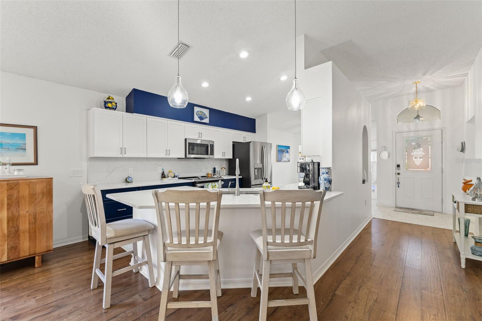 Bem-vindo a uma residência excepcional na renomada comunidade ativa de mais de 55 anos de Heritage Pines! Com um TELHADO NOVO em 2025, esta casa de 3 quartos, 2 banheiros e garagem para 2 carros apresenta a cobiçada planta baixa 'The St. Andrews', conhecida por sua abundância de luz natural e conceito de vida aberto! A casa possui luxuosos azulejos de vinil e piso laminado em tons quentes, uma COZINHA IMPRESSIONANTE RECÉM-REMODELADA (2024) com bancadas de quartzo, ilha de tamanho generoso e balcão para café da manhã, armários em dois tons, eletrodomésticos de aço inoxidável, pia individual e despensa! O quarto principal é espaçoso e convidativo, com closets duplos que apresentam organização de armário personalizada! O banheiro privativo, RECÉM-REMODELADO (2025), inclui pia dupla com bancadas de quartzo e um luxuoso box amplo. Todos os quartos apresentam maior privacidade e conforto com duetos de blackout! A lavanderia interna fica do outro lado do corredor do banheiro de hóspedes RECÉM-REMODELADO (2025), com armário de roupa de cama, bancadas de quartzo e box amplo. A zona de estar em conceito aberto, apresenta tectos altos realçados por iluminação embutida e luzes reguláveis sobre a ilha de cozinha, o que cria um espaço versátil para qualquer ocasião. Saia para a varanda, um espaço sereno para vida interna e externa equipado com novas janelas de vinil removíveis, persianas australianas Coolaroo e porta externa totalmente nova. Aproveite esta vila mantida com serviços prestados pela comunidade, como corte, remoção de ervas daninhas (a cada duas semanas do mês) e pintura a cada sete anos, espectro de cabo/internet, TODOS incluídos nas taxas HOA!! Os residentes têm acesso a uma ampla gama de comodidades e aulas, incluindo campo de golfe, restaurante, academia, clube, piscina grande, quadras de tênis, pickleball, bocha e biblioteca. A comunidade também oferece putting greens e chipping greens, um driving range com bolas de cortesia por meio de uma associação gold e um jardim memorial para veteranos. Atualizações adicionais incluem: UNIDADE CA 2021, Aquecedor de água quente 2022, NOVA lavadora e secadora LG 2025, Abrandador de água NOVO instalado em 2025, abridor de porta de garagem instalado em 2024 E piso de garagem em epóxi! Heritage Pines fica a apenas 45 minutos ao norte do Aeroporto Internacional de Tampa e perto de lojas e restaurantes! Esta casa está impecavelmente mantida e pronta para seu próximo proprietário!!