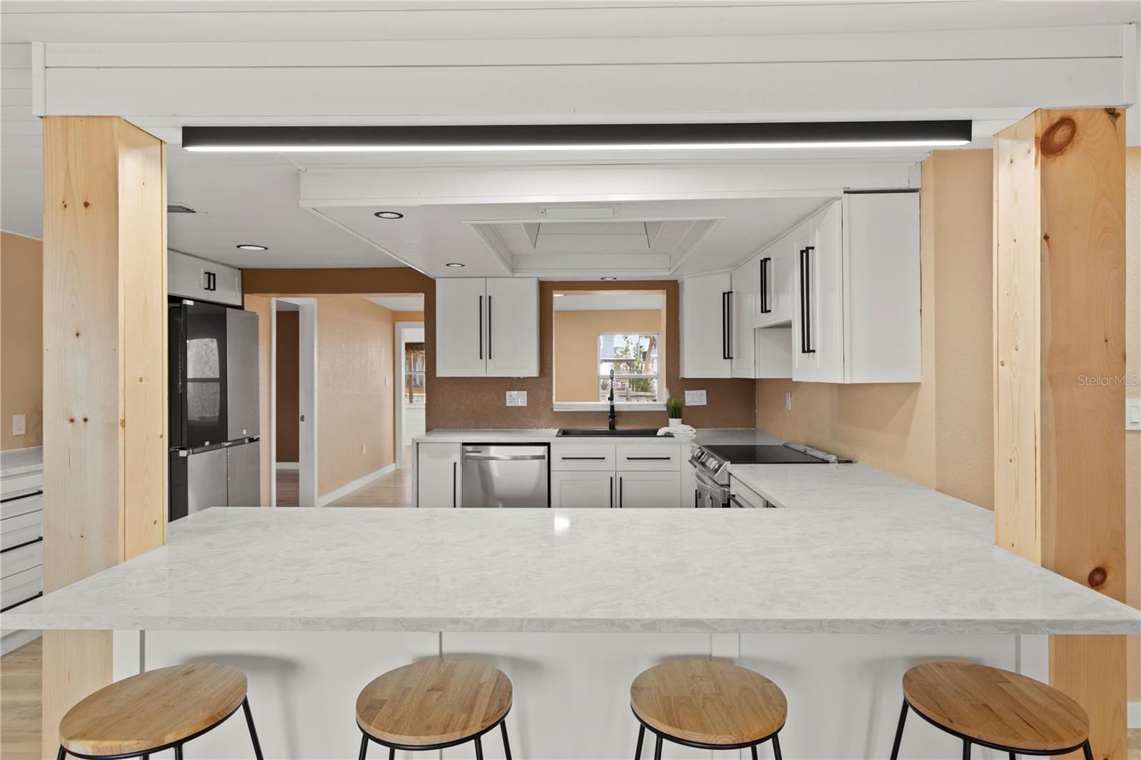 Uma ou mais fotos foram virtualmente encenadas. Bem-vindo ao seu refúgio diário à beira-mar, onde conforto, estilo e vida ao ar livre se unem. Esta casa lindamente atualizada de 4 quartos e 2 banheiros em frente ao canal oferece acesso direto ao Golfo e é perfeitamente adequada para passeios de barco, entretenimento ou simplesmente desfrutar do estilo de vida da Flórida. As atualizações recentes incluem um teto totalmente novo, um novo sistema AC, eletricidade atualizada e um interior totalmente renovado, oferecendo tranquilidade e apelo moderno. No interior, o layout de conceito aberto apresenta piso de tábuas largas, acabamentos frescos, luz natural abundante e uma elegante lareira elétrica que ancora o espaço principal. A cozinha totalmente atualizada foi projetada para impressionar com bancadas de quartzo, eletrodomésticos de aço inoxidável, armários personalizados, micro-ondas embutido, adega refrigerada e uma grande península com assentos de bar. Uma claraboia enche a cozinha de luz natural, enquanto o refrigerador de painel intercambiável Samsung Bespoke adiciona um toque moderno. Os detalhes do teto com detalhes em madeira trazem calor e personalidade ao espaço. Perto da área de estar principal, o quarto Florida oferece espaço adicional flexível com belas vistas do quintal e do canal, ideal para relaxar, jantar ou se divertir durante todo o ano. Uma espaçosa área de estar bônus com janelas amplas aprimora ainda mais a sensação luminosa e aberta da casa e a conexão perfeita com o exterior. A planta de quartos divididos oferece privacidade, com quartos de tamanhos generosos, ventiladores de teto atualizados e amplo espaço no armário. Ambos os banheiros foram remodelados com bom gosto com penteadeiras modernas, iluminação aprimorada e um box amplo com azulejos lindos. Uma lavanderia separada acrescenta conveniência e funcionalidade, com uma nova lavadora e secadora empilhável Samsung. Saia para o seu oásis privado à beira-mar. O quintal foi projetado para entretenimento, destacado por uma impressionante experiência de tiki bar com aproximadamente 110 pés quadrados de espaço interno, complementado por uma área de estar externa coberta adicional sob uma cabana tiki personalizada com deck, acomodando confortavelmente de 4 a 5 pessoas. Completo com assentos, geladeira, prateleiras para pendurar taças de vinho, prateleiras traseiras e uma janela de serviço dobrável, este espaço cria um ambiente de entretenimento interno e externo perfeito. Aproveite as noites junto à lareira ao ar livre, relaxe sob a sombra da árvore madura com um balanço ou refresque-se na piscina de coquetéis com detalhes de azulejos personalizados. A propriedade também possui grades de arame de aço elegantes para vistas desobstruídas do canal, uma doca flutuante e um elevador para barcos de 10.000 libras, facilitando a entrada na água a qualquer momento. O amplo pátio pavimentado e as diversas áreas de estar criam o cenário perfeito para reuniões, enquanto o pátio cercado acrescenta estilo e função. Na frente, uma entrada circular oferece amplo estacionamento e um ambiente acolhedor, emoldurado por um paisagismo maduro e uma estética costeira limpa. Localizada a poucos minutos das águas abertas do Golfo, das marinas, dos restaurantes à beira-mar e das conveniências do dia a dia, esta casa oferece uma rara oportunidade de desfrutar do verdadeiro estilo de vida à beira-mar da Flórida.