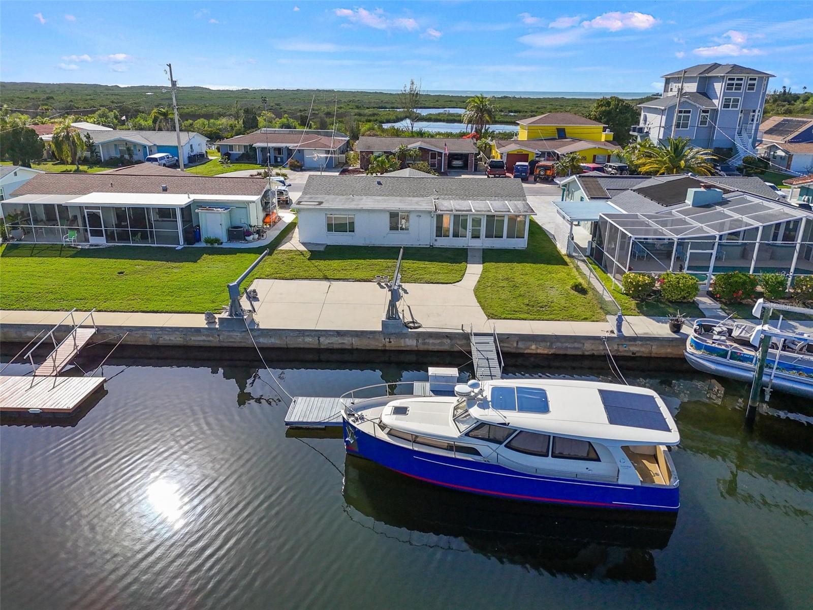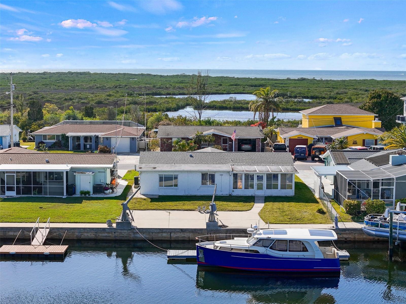 DE VOLTA AO MERCADO! NOVO TELHADO INSTALADO! INSPEÇÃO LIMPA DE 4 PONTOS DISPONÍVEL! Você já sonhou em possuir seu próprio pedaço de propriedade à beira-mar na Flórida com ACESSO DIRETO AO GOLFO? Esta pode ser a CASA perfeita para você. Nem muito grande, nem muito pequeno, com dois quartos de tamanho confortável, uma sala/escritório bônus e um banheiro completo com lavabo, esta casa tem tudo que você precisa. Custando menos de US$ 400.000, você ainda tem dinheiro sobrando para comprar um barco! Ao passar pela porta, você notará primeiro o piso de cerâmica brilhante. Em seguida, seus olhos são atraídos para a bela parede de pedra e toda a iluminação natural que entra pela bela porta de vidro da frente. A cozinha da cozinha foi atualizada com bancadas de pedra, armários de madeira e um backsplash de azulejos brilhantes. Há espaço ao lado da cozinha para uma pequena mesa de cozinha ou um bar de vinhos. A escolha é sua porque há também uma sala de jantar com piso vinílico novo e espaço suficiente para uma mesa grande. Ao lado da área de jantar, à direita, há uma sala bônus com uma grande janela com vista para a água, oferecendo o espaço perfeito para escrever, pintar ou trabalhar! Do outro lado da área de jantar fica a sala Florida, onde você poderá desfrutar da beleza da luz natural enquanto está rodeado de vistas panorâmicas do seu paraíso à beira-mar. Saia e desfrute da vida à beira-mar com um paredão de concreto privado de 60 pés, um belo pátio de concreto bem no paredão que cria um ótimo espaço de entretenimento, uma grande doca flutuante de 45 pés x 5 pés para fácil acesso ao Golfo do México e um turco conveniente para fácil aventuras de barco. Imagine passar as manhãs tomando café no cais enquanto se maravilha com o pitoresco nascer do sol. Esteja preparado para uma chegada não anunciada de um golfinho nadando, dizendo bom dia! A garagem para um carro tem espaço para seus caiaques e muito mais, além do teto ser fechado e pisos e paredes pintados recentemente. Você vai desfrutar de relaxar à noite com uma taça de vinho na varanda da frente enquanto testemunha os tons tranquilos do pôr do sol no céu. E o nascer do sol em Hudson é espetacular! Você vai se sentir como se estivesse vivendo em um cartão postal! Interior da casa pintado em 2024, novo Goodman AC de 2,5 toneladas instalado em 2024, pisos Terrazzo reformados em 2024, teto de garagem fechado e garagem e piso pintados em 2024. A comunidade de Leisure Beach é uma comunidade maravilhosa e amigável que não tem HOA, nem CDD, mas temos costeletas, chili, desfile de barcos de Natal e muito mais. É um ótimo lugar para chamar de lar. A localização oferece a combinação perfeita de relaxamento e conveniência. Famoso por sua atmosfera descontraída, comunidade amigável e proximidade com comodidades locais, tornando-o um lugar ideal para chamar de lar. Localizado ao norte de Tampa, ao longo da costa do Golfo da Flórida, com pesca recreativa, passeios de barco, golfe, marinas, bares/restaurantes à beira-mar no Golfo do México e uma pequena praia pública. Localizado a apenas 45 a 1 hora do Aeroporto Internacional de Tampa e 2 horas da Disney. O vendedor relata que a última casa foi inundada em 1993, de acordo com os vizinhos, e o vendedor considerará o financiamento do proprietário com $ 100.000 de entrada. Ligue hoje para visitar esta casa e comece a viver seu sonho de vida no sal!