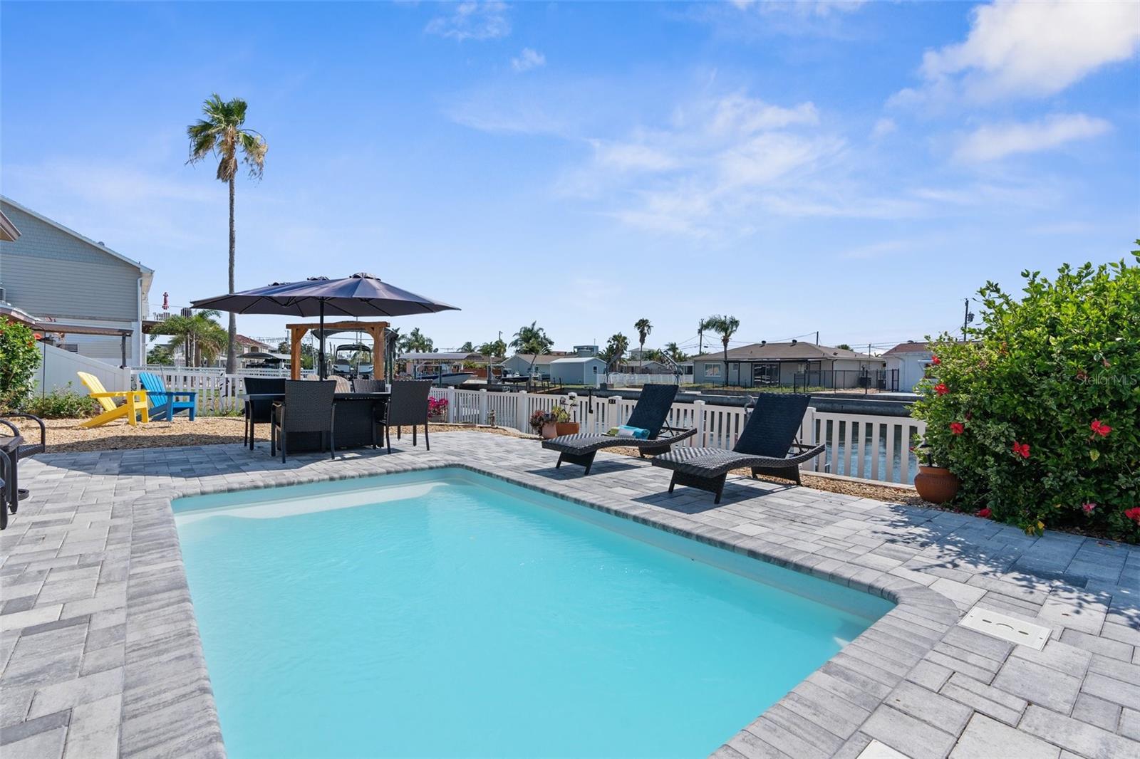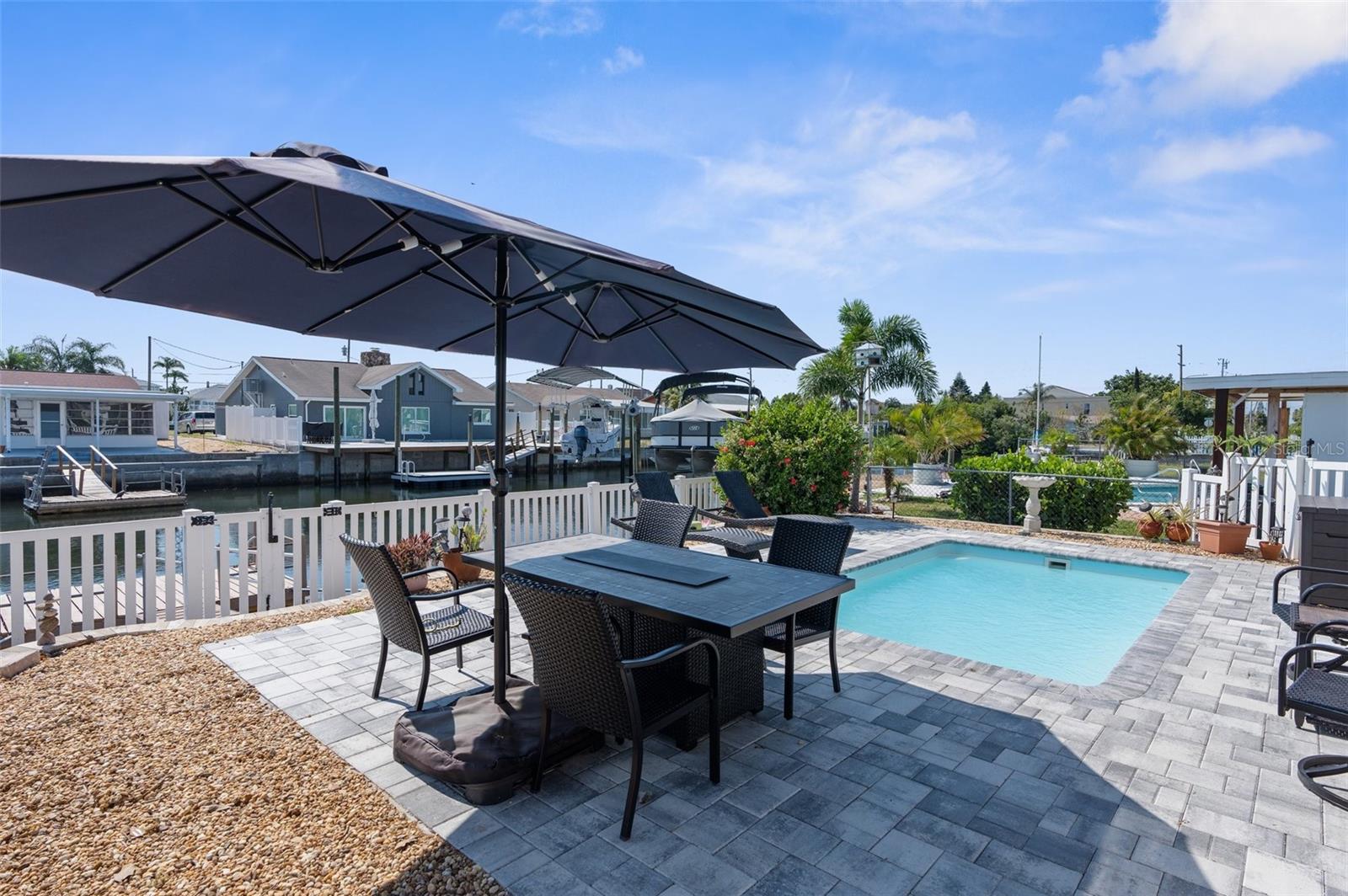 Uma ou mais fotos foram virtualmente encenadas. Início com acesso direto ao Golfo! Velejadores e pescadores, esta casa está situada em um grande canal com menos de 5 minutos de tempo ocioso sem o custo extra de seguro contra vento. Não há canais complicados para navegar e os dias de barco ficaram um pouco mais fáceis. Evite as rampas para barcos e use a doca flutuante recém-pintada para guardar o seu barco. Há muito espaço para adicionar um elevador de barco. Aproveite a vista do canal e refresque-se na piscina de água salgada cercada por belos pavimentos de tijolos após um dia de barco. A piscina também dispõe de aquecedor para os meses mais frios. O quintal também possui uma varanda com proteção do sol e ótima para o café da manhã, observando o nascer do sol. Há azulejos em toda a casa, facilitando a limpeza. A cozinha foi reformada com armários shaker e bancadas em granito. A máquina de lavar louça e o fogão também são mais novos. A cozinha abre-se para a sala de estar com uma lareira a lenha em pleno funcionamento, ideal para receber a família e amigos. O acesso é fácil com as portas de vidro deslizantes para a área do pátio e da piscina. Existe uma ampla arrumação na garagem e também um telheiro no quintal. Algumas outras características notáveis são as janelas de painel duplo, estuque selado no exterior, sistema de calhas, reformado, calçada de tijolos, paisagismo mais recente e telhado e AC são ambos de 2016. Este é um bairro de carrinhos de golfe com desfiles mensais de carrinhos de golfe. Hudson Beach oferece uma praia e muitos restaurantes e bares locais sem sair do bairro.