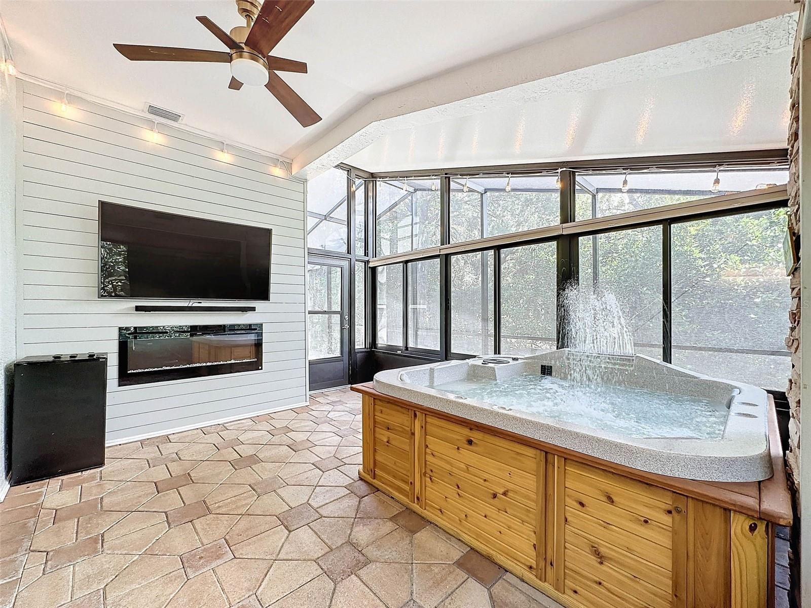 Este belo Retreat Stratford V. é a mistura perfeita de luxo e conveniência moderna. Esta residência de bom gosto oferece um layout espaçoso, ideal para relaxar e divertir. O spa interno é um oásis sereno para desenrolar e mimar em conforto luxuoso. Com uma cozinha atualizada com bancadas de granito, eletrodomésticos elegantes e amplo armazenamento, a preparação das refeições é uma alegria! A casa possui quartos confortáveis e banheiros elegantes, garantindo que todos os membros da família desfrutem de seu espaço pessoal. A lareira a gás personalizada serve como uma peça central de calor e estilo na área de estar. Do lado de fora, o quintal privado bem cuidado fornece um cenário sereno para relaxamento ou atividades ao ar livre. A vila mantida de Pines Glen oferece tranqüilidade quando se trata de trabalho no quintal. O telhado foi substituído no início de 2022 e o ar condicionado em 2017. O lanai foi fechado e inclui um belo piso de pavimentador, lareira e seu próprio spa! Na garagem, há um aquecedor de água sem tanque e amaciante de água. Novas janelas de defensor da Pella instaladas em torno da maior parte da casa, juntamente com uma nova porta de vidro deslizante com eficiência energética. Localizada em uma comunidade de campo de golfe de 18 Private Hole, com fácil acesso a escolas, compras e parques, o Heritage Pines oferece uma mistura perfeita de conforto e vida comunitária.