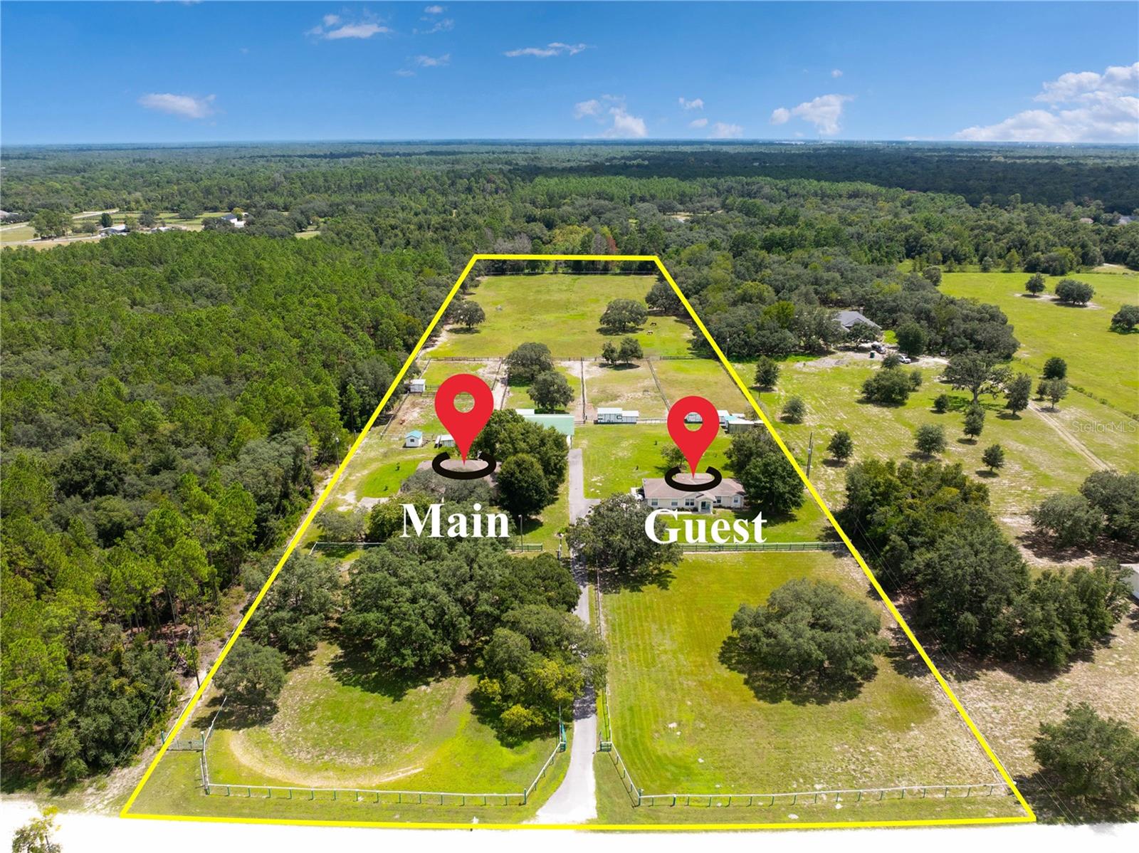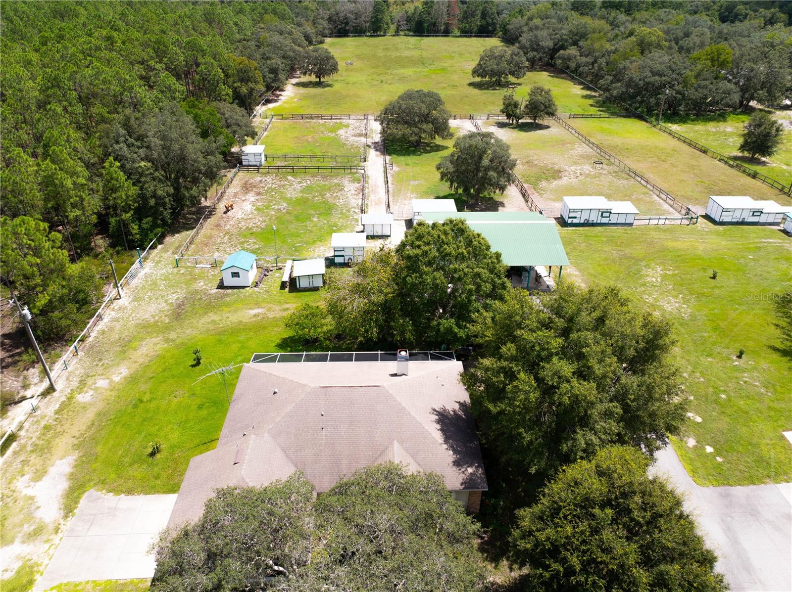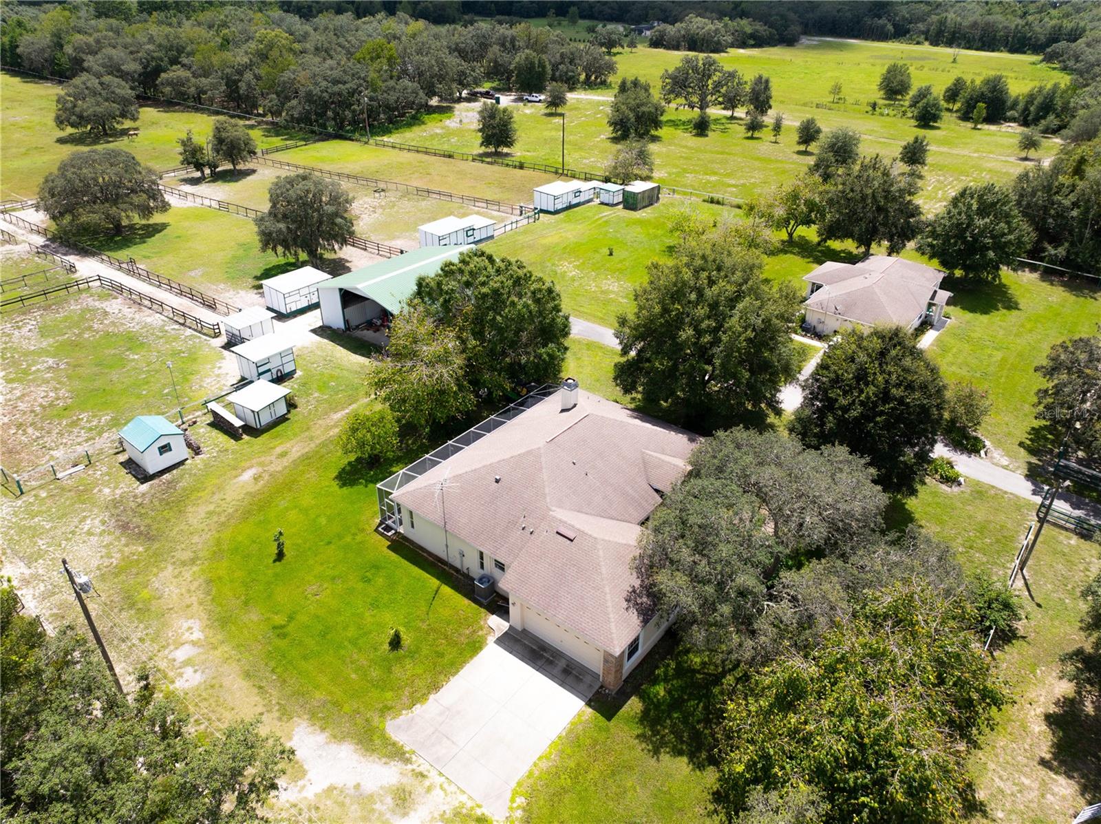 LINDA FAZENDA DE CAVALOS EM 10 ACRES ~ ZONEADO AC AGRÍCOLA ~ ISENTO DE ECONOMIA DE IMPOSTOS ~ 2 CASAS DE BLOCO DE CONCRETO CONSTRUÍDAS PERSONALIZADAS. A casa principal construída em 2004 tem 2.007 pés quadrados de área útil, 3 quartos, 2 banheiros e garagem grande para 2 carros + enorme varanda nos fundos com tela 32x18 + 27x8. NOVO 16 Seer A/C em agosto de 2024! A Eat-In Galley Kitchen tem bancadas de superfície sólida, inclui todos os eletrodomésticos, geladeira e freezer duplos lado a lado. A grande sala tem tetos abobadados, corrediças para a varanda dos fundos, grande lareira a lenha com tijolos reais, lustres de cristal Strauss, ventiladores de teto Hunter de qualidade por toda parte, design de planta dividida, isolamento extra na garagem e paredes internas. O quarto principal possui closets + lareira elétrica com controle remoto + controles deslizantes para a varanda. Master Bath inclui banheira de hidromassagem com chuveiro separado e pias duplas. A lavanderia interna inclui lavadora, secadora e banheira. Casa de hóspedes (ocupada pelo inquilino) construída em 2004 com 1.302 pés quadrados de área útil 2 quartos 2 banheiros + garagem para 2 carros incluindo uma varanda nos fundos com tela 20x10 (fotos em breve) NOVO 14 Seer A/C agosto de 2024. Os 10 acres são totalmente configuração para cavalos, incluindo 6 piquetes com bebedouros automáticos, energia e irrigação, 8 baias em 3 edifícios construídos de qualidade + 5 acres de campo Tifton Hay totalmente irrigado. Enorme celeiro para trailers 48x48x16 + piso de concreto + todo iluminado + serviço de 50 A + rack de lavadora e aquecedor de água + oficina + sala de alimentação e aderência. A entrada na propriedade tem 2 portões, um para entrada nas pastagens e outro é a entrada principal com entrada pavimentada para as casas. A Pasco Horseman's Association, localizada em Hudson, tem um calendário mensal de shows de cavalos ocidentais/ingleses e eventos de equitação. A poucos quilômetros de lojas, hospitais, serviços médicos, praias do Golfo e da Suncoast Parkway, facilitando o deslocamento até Tampa. Vendedor possui vistoria de imóvel.