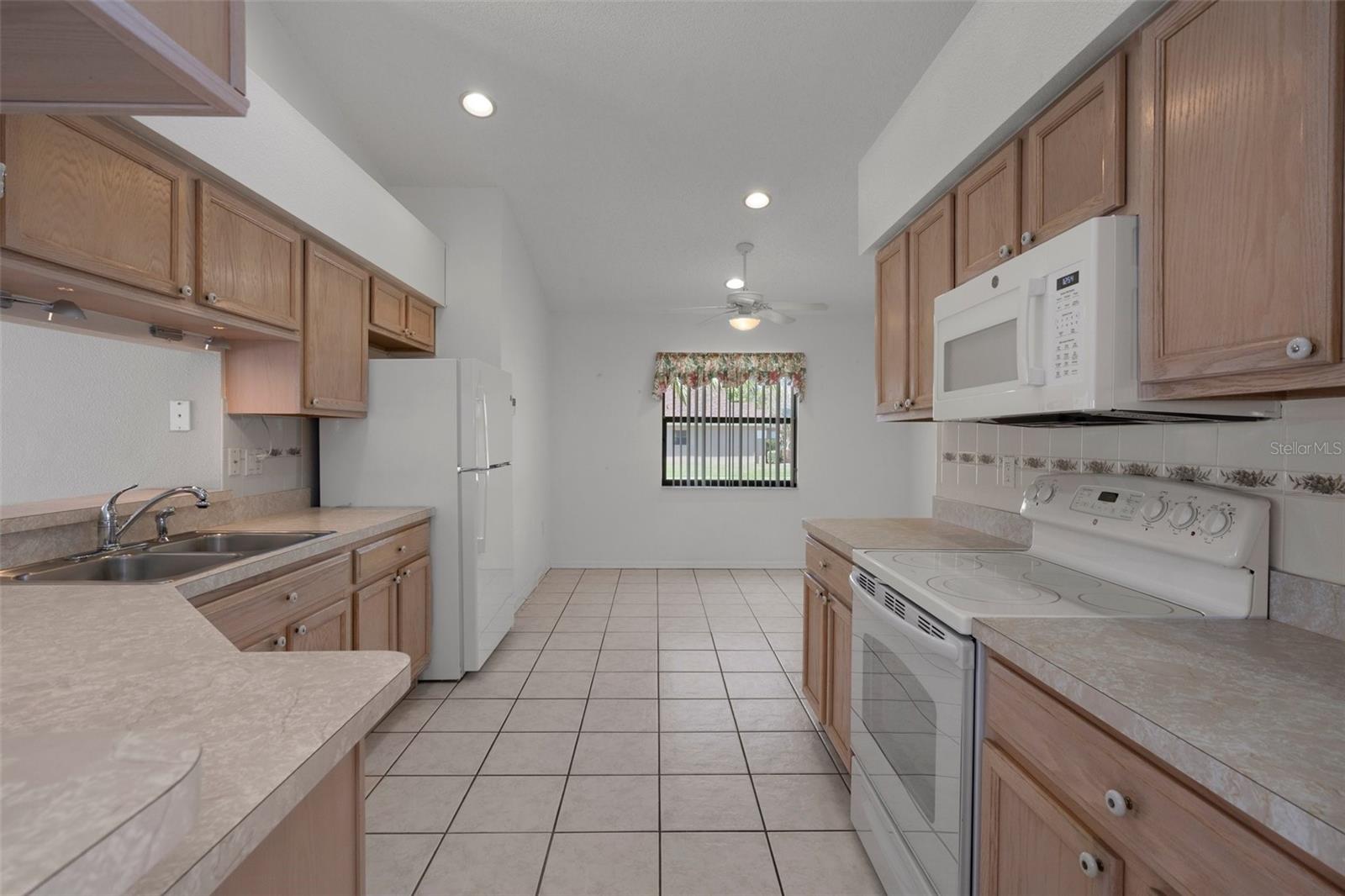 Aninhado na reserva desejável da comunidade Fairway Oaks, esta encantadora casa de 3 quartos e 2 banheiros oferece conforto e conveniência. Entre na expansiva sala de estar de 26x15, onde um teto da catedral, prateleiras de plantas e controles deslizantes atualizados levam ao lanai traseiro sereno. Adjacente, a sala de jantar formal 14x10 é banhada em luz natural, perfeita para reuniões. A cozinha bem equipada possui uma barra de café da manhã, um recanto de café da manhã separado, uma despensa espaçosa e uma lavanderia convenientemente localizada. Um escritório versátil 11x11 com portas de bolso fica na sala de estar, ideal para trabalho remoto ou um acolhedor retiro de leitura. A suíte primária é um paraíso verdadeiro, com um quarto de 15x12 com carpete macio, armários duplos-incluindo uma caminhada-pias duais, um espaço de vaidade e um luxuoso chuveiro de caracol. O quarto de hóspedes, medindo 11x11, oferece amplo espaço no armário e é complementado por um banheiro de hóspedes com uma única pia e uma combinação de banheira/chuveiro. Saia para a bela varanda traseira coberta, abrangendo 27x10, onde você pode relaxar e apreciar a vista da piscina espumante de diamante e brilho. Situado em um lote de canto, esta casa inclui uma entrada de automóveis estampada e exibida com uma porta de serviço, um vestíbulo acolhedor com um armário de casaco, uma entrada da porta frontal com ponta dupla, um sistema de irrigação e uma garagem equipada com um abridor de porta e uma banheira de lavanderia. Os moradores da reserva em Fairway Oaks desfrutam de fácil acesso a compras, restaurantes, farmácias, postos de gasolina, escolas, um parque do condado e uma biblioteca, tornando este um local ideal para conveniência e lazer. Não perca a oportunidade de fazer deste deslumbrante casa o seu!