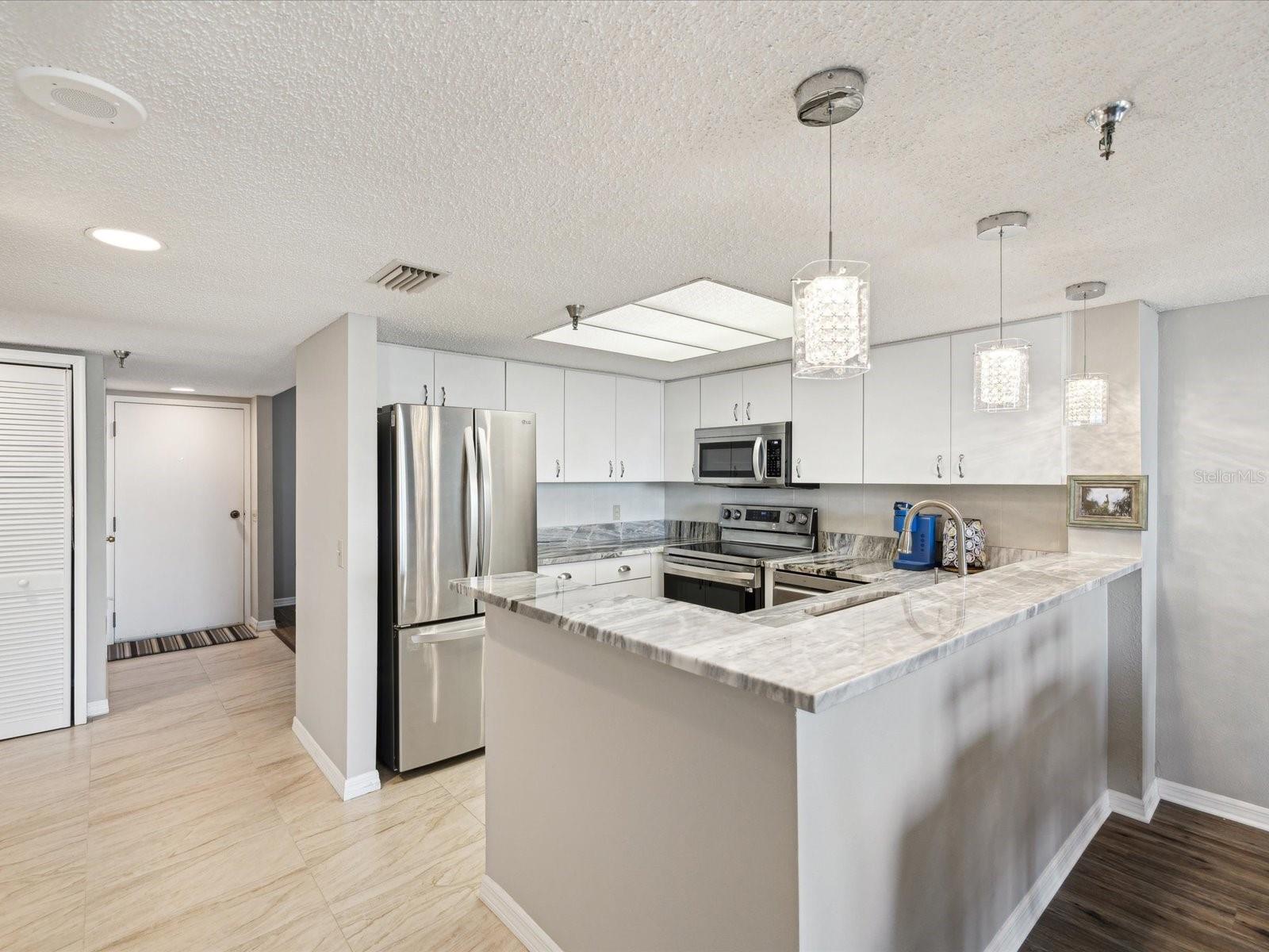 Céu na terra! O Gulf Island Beach and Tennis Club é uma jóia escondida no Condado de Pasco, localizada no Golfo da América! O estilo de resort viva é abundante nesta comunidade exclusiva. Os primeiros risers podem desfrutar do nascer do sol deslumbrante sobre o canal do quarto de hóspedes, enquanto as noites apresentam vistas relaxantes do pôr do sol de tirar o fôlego da varanda aberta, com vista para a lagoa tranquila e o Golfo. O condomínio foi renovado e decorado com bom gosto. Belas ladrilhos de vinil de luxo e porcelana para facilitar a manutenção e o piso luxuoso. A sala de bônus tem um sono para convidados extras ou aproveitar a solidão. Este 2/2 possui uma planta muito confortável e acolhedora, que inclui numerosos espaço no armário. Uma cozinha viável com bancadas em granito, espaço generoso do gabinete, todos os novos aparelhos de aço inoxidável, proporcionando uma visão excepcional da lagoa privada e do Golfo. A vista pode ser apreciada na sala de estar, na sala de jantar, no quarto principal e na varanda privada, oferecendo uma conexão perfeita com a beleza natural ao redor do prédio. Uma nova lavadora/secadora empilhável aumenta a conveniência de lidar com tarefas de lavanderia. Ambos os banheiros foram equipados com barras de segurança para maior segurança. O banheiro principal também possui um novo vaso superior e uma bela, anda no chuveiro. A taxa do HOA inclui uma piscina com temperatura olímpica, uma praia particular, uma trilha natural, uma área de piquenique com churrasqueiras, manutenção do solo, 5G Wi-Fi, água e lixo. Para entusiastas de barco, os deslizamentos de barco podem ser comprados na marina. A unidade inclui um espaço de estacionamento designado localizado sob o prédio para maior segurança. As quadras de bola de picles e tênis também são incluídas como parte de suas comodidades de HOA. A comunidade apresenta um portão tripulado de 24 horas para maior segurança. O que você vê, é o que você recebe! Totalmente mobiliado, apenas desembalar e relaxar! É hora de você aproveitar o "estilo de vida da Flórida" nesta comunidade exclusiva de elegância atemporal e pôr do sol em aquarela!