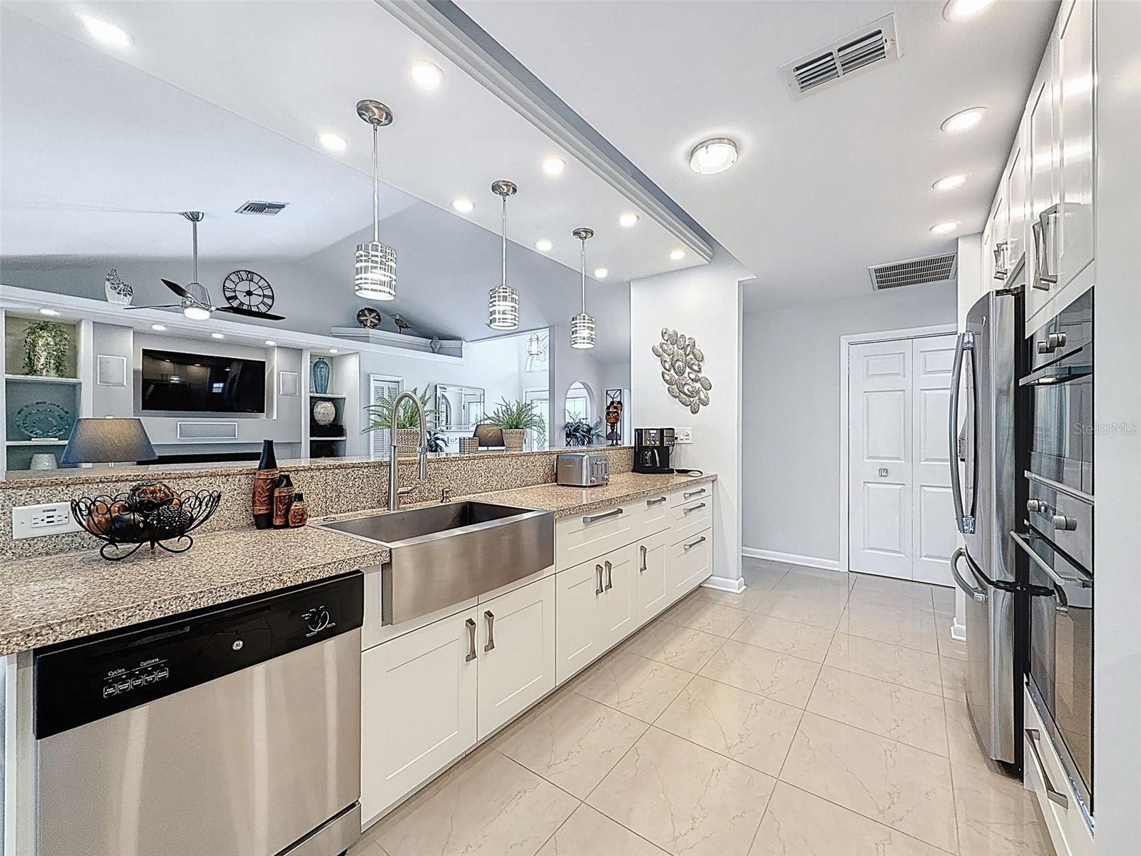 Ao entrar nesta adorável casa, você vê orgulho de propriedade. Recém -pintado por dentro, esta casa foi atualizada de cima para baixo. Abertura do piso plano com uma barra de café da manhã, cozinha de comer com armários de agitadores de grife brancos, portas e gavetas suaves. Não devemos esquecer o refrigerador de vinho refrigerado e o rack de vinho separado, embutido em forno e microondas, indução cozinheira. Cozinha completa com bancadas em granito. A Great Room possui prateleiras embutidas projetadas para sua TV e lareira elétrica de vidro plano. Ambos os banhos têm bancadas de granito ou azulejos de grife e banheiras de jato em ambos os banhos com degrau de azulejos no chuveiro no mestre privativo. A casa foi projetada em um plano dividido, primário de um lado da casa e 2 quartos no lado oposto. Pisos de madeira projetada nas principais áreas de estar e pisos de porcelana mais claros na cozinha e nos banhos. Todas as salas traseiras veem o lanai, 2 pátios laterais e o quintal privado, pacífico e cercado. Todas as portas e janelas têm persianas de furacões. As taxas baixas de HOA oferecem um belo clube, fitness center, mesas de piscina e pingue -pongue, piscina, pickleball, basquete, quadras de tênis, bocci e shuffleboard. Localizado a 45 minutos do Aeroporto Internacional de Tampa, 2 milhas até o Golfo da América. Embale sua vara de pesca e caiaques, não se esqueça dos tacos de golfe para jogar com o abundante número de cursos públicos nas proximidades.