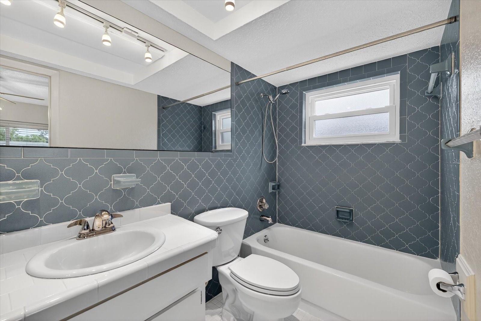 Bem -vindo ao Shadow Ridge! A propriedade foi remediada profissionalmente, estabilizada e certificada de um poço passado para garantir uma base sólida. Esta casa de garagem de 2 quartos bem mantida de 2 quartos, 2 banheiros, de 2 carros, oferece 1.409 pés quadrados de espaço de vida com uma espaçosa planta aberta, tetos abobadados e janelas de impacto. A cozinha possui utensílios de aço inoxidável, fogão a gás, despensa e barra de café da manhã, fluindo para a sala da família com detalhes em feixe de madeira. Desfrute de madeira de madeira, ladrilhos e quartos com carpete, além de dois banheiros completos, incluindo um chuveiro e uma banheira/chuveiro. O grande quintal cercado é perfeito para se divertir com uma sala de Flórida, deck e galpão de armazenamento na Flórida. Os extras incluem um tanque de propano de propriedade, aquecedor de água a gás sob demanda, secador a gás, porta de garagem com classificação de furacão, amaciador de água e calhas de guarda de folhas. Localizado a minutos de Hudson Beach, Sunwest Park e refeições, com fácil acesso à US-19 e SR-52 para um rápido trajeto para Tampa Bay. Nenhuma HOA Torne este lar imperdível!