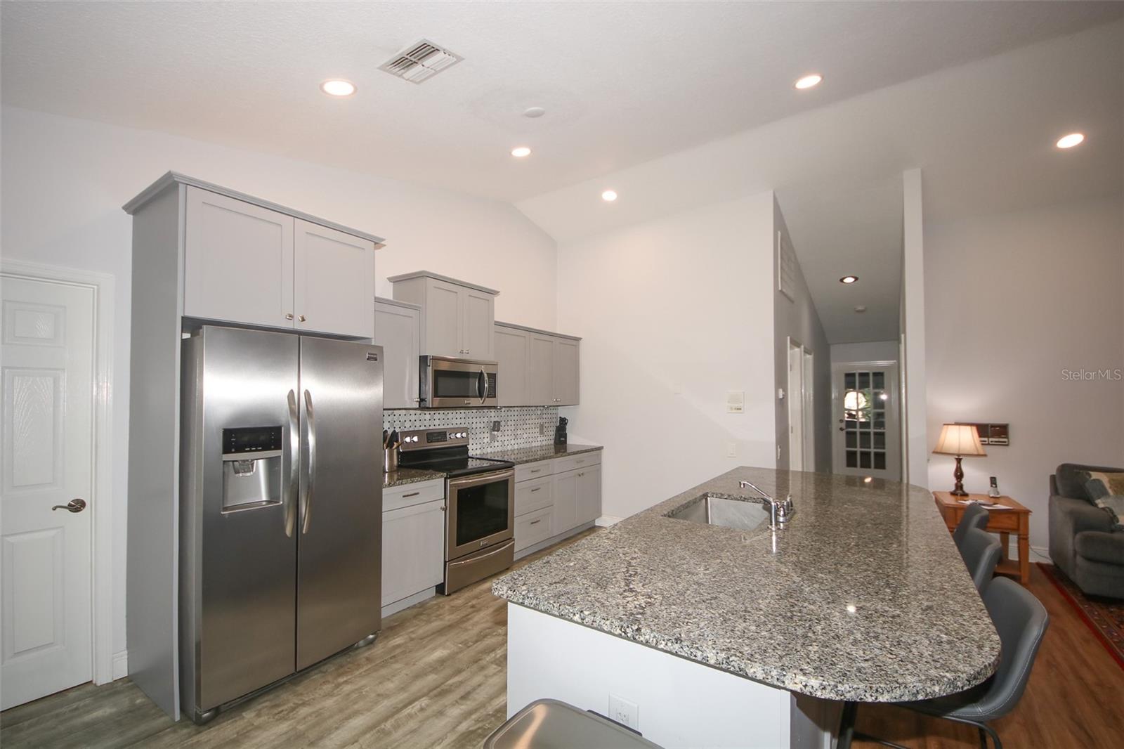 Bem-vindo a esta casa verdadeiramente única de 3 quartos e 3 banheiros completos, situada na muito procurada comunidade de Estates de Hudson! Esta casa apresenta uma planta aberta e dividida, ideal tanto para uma vida confortável quanto para entretenimento. Perfeitamente posicionado perto do Clubhouse, você terá fácil acesso a comodidades recreativas recém-renovadas e a uma piscina deslumbrante, proporcionando relaxamento e diversão a poucos passos da sua porta da frente. Entre para encontrar tetos altos e arejados, iluminação embutida elegante e uma abundância de janelas que preenchem cada espaço com luz solar natural. O layout de conceito aberto conecta perfeitamente as áreas de estar, enquanto cores neutras, piso laminado e cerâmico e peitoris de mármore adicionam toques refinados por toda parte. A cozinha remodelada é o sonho de qualquer chef, ostentando bancadas de granito com balcão para café da manhã, armários novos e elegantes e eletrodomésticos de aço inoxidável de última geração. Aproveite seu café da manhã na cafeteria dedicada, completa com frigobar e espaço para uma mesa de jantar com vista para o tranquilo quintal. Uma espaçosa área de armazenamento ao lado da cozinha oferece amplo espaço para todos os seus itens extras. A combinação família/sala de jantar possui um conveniente armário de casacos e é perfeita para organizar reuniões. Para um espaço ainda mais divertido, esta área desemboca numa versátil sala bónus e numa casa de banho completa, ideal para hóspedes ou como centro de entretenimento. Saia para a varanda, que oferece janelas de acrílico, ventiladores de teto e um pátio externo preparado para grelhar. A parte elétrica já está instalada para uma banheira de hidromassagem, potencializando a experiência ao ar livre! Se preferir um ambiente tranquilo para trabalhar em casa, a sala bônus pode ser facilmente transformada em um espaçoso escritório. A planta dividida garante privacidade e comodidade. Dois quartos compartilham um banheiro completo equipado com chuveiro/banheira, e um quarto possui uma porta de correr para acesso direto ao banheiro. O armazenamento é abundante, com um enorme closet, um armário de roupa de cama e um armário de roupa de cama / armazenamento de grandes dimensões localizado perto do segundo banheiro completo. A suíte principal fica no lado oposto da casa, oferecendo seu próprio closet e um luxuoso banheiro privativo. O banheiro privativo possui pias duplas, um chuveiro rebaixado em cerâmica com iluminação embutida e muito espaço para relaxar. Ventiladores de teto instalados em toda a casa para conforto durante todo o ano, janelas com vidros duplos para redução de ruído e eficiência energética, peitoris de mármore e acessórios elegantes, layout aberto e dividido para ambientes flexíveis. Aproveite todas as vantagens de viver em The Estates, próximo às instalações recreativas e à piscina recentemente renovadas do Clubhouse. Quer você prefira reuniões familiares, noites tranquilas ou receber amigos, a planta exclusiva desta casa foi projetada para atender às suas necessidades. Não perca a oportunidade de possuir esta casa verdadeiramente excepcional em Hudson. Com suas características distintivas, atualizações modernas e localização imbatível, esta propriedade é uma em um milhão! Ligue hoje para sua exibição!