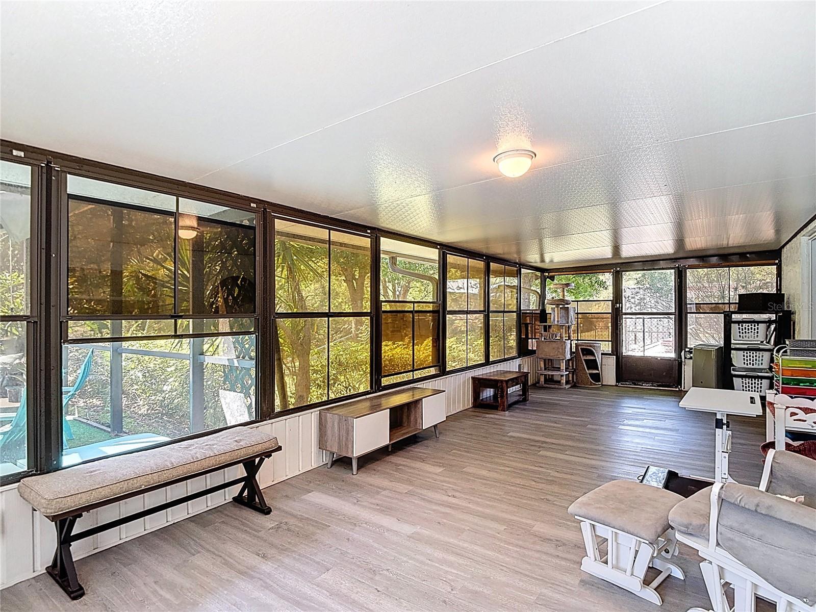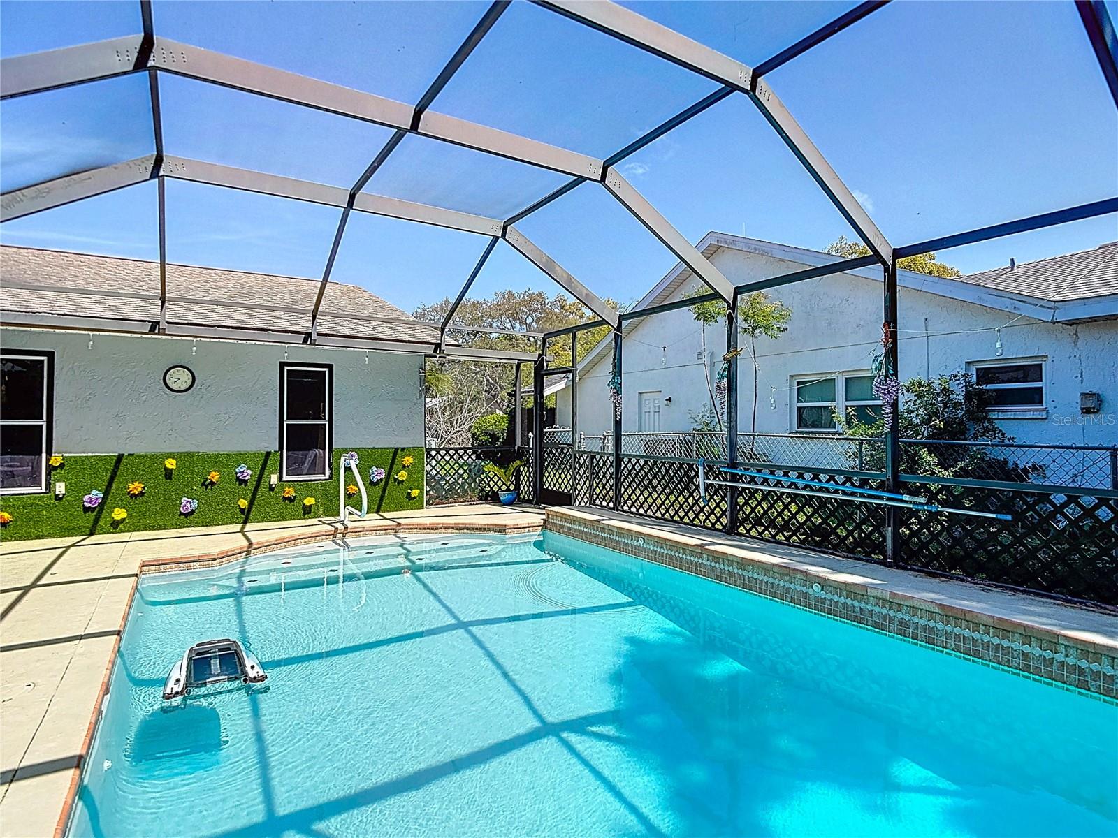 Seu "Staycation" na Flórida está chamando! Experimente a combinação perfeita de estilo, conforto e vida na Flórida nesta linda casa com piscina de 3 quartos, 2 banheiros e garagem para 2 carros. A partir do momento em que você chega, a atenção aos detalhes e o orgulho de propriedade são evidentes. O coração da casa é um amplo espaço de conceito aberto com tetos altos de catedral que criam uma atmosfera arejada e convidativa. Equipada com armários de madeira maciça de alta qualidade e elegantes bancadas em Corian, esta espaçosa cozinha é perfeita para o chef caseiro. Um fluxo contínuo da cozinha para a área de estar e jantar torna esta casa ideal para entretenimento e reuniões familiares. Faça a transição através de elegantes portas duplas para um enorme quarto na Flórida – um quarto versátil. Esteja você organizando um jantar ou relaxando com um livro, você vai adorar este espaço adicional. O quarto Florida leva diretamente ao seu paraíso privado ao ar livre. Aproveite sua piscina cintilante sob o sol da Flórida e assista ao pôr do sol incrível à noite na espaçosa área ao lado da piscina projetada para relaxar durante todo o ano. Totalmente sem carpete, esta casa apresenta um luxuoso e luxuoso piso de painel de madeira vinílica que é tão durável quanto bonito. As persianas Levolor personalizadas proporcionam elegância e controle de luz em toda a residência. Situada sem vizinhos traseiros e com um enorme quintal cercado, esta propriedade oferece muito espaço para animais de estimação ou brincadeiras. SEM ZONA DE INUNDAÇÃO! Esta propriedade está localizada fora das zonas de inundação designadas, proporcionando segurança e potencial economia de seguro. BAIXAS TAXAS DE HOA! Desfrute de amplas comodidades comunitárias sem custos elevados, proporcionando um estilo de vida acessível. Isto é mais do que apenas uma casa; é um estilo de vida. Agende hoje mesmo sua exibição privada e prepare-se para se apaixonar!