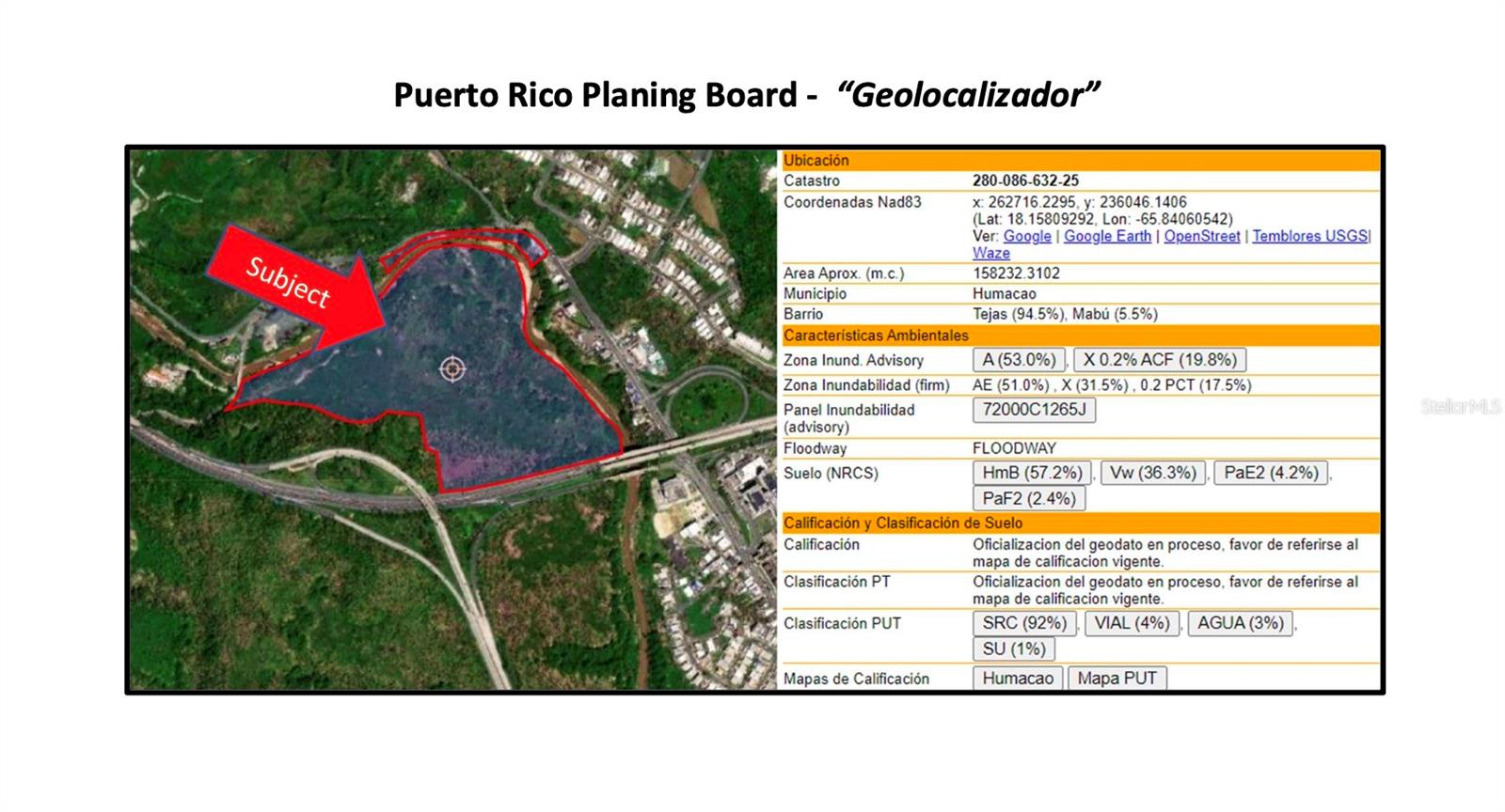 Excelente oportunidade de desenvolvimento em Humacao, Porto Rico. Este local residencial está estrategicamente localizado ao sul da Estrada Estadual 198, com acesso direto à Via Expressa PR-60 no Bairro Tejas. A propriedade possui duas entradas separadas, oferecendo maior flexibilidade para futuro desenvolvimento ou subdivisão. Está convenientemente situado perto do Hospital Ryder, de shopping centers e de várias instalações governamentais e institucionais, tornando-o ideal para desenvolvimento residencial. Zoneado RI (Residencial de Densidade Intermediária), o local abrange 39,3672 cuerdas e inclui áreas dentro das zonas de inundação da FEMA AE (51,0%) e X 0,2 PCT (51,30%), conforme Painel do Mapa de Inundação da FEMA 72000C1265J. As coordenadas são latitude 18,15809292 e longitude -65,84060542. O imóvel está identificado pelo NIF 280-086-632-25-000. Esta é uma excelente oportunidade de investimento numa área de alta procura e com forte potencial de desenvolvimento.