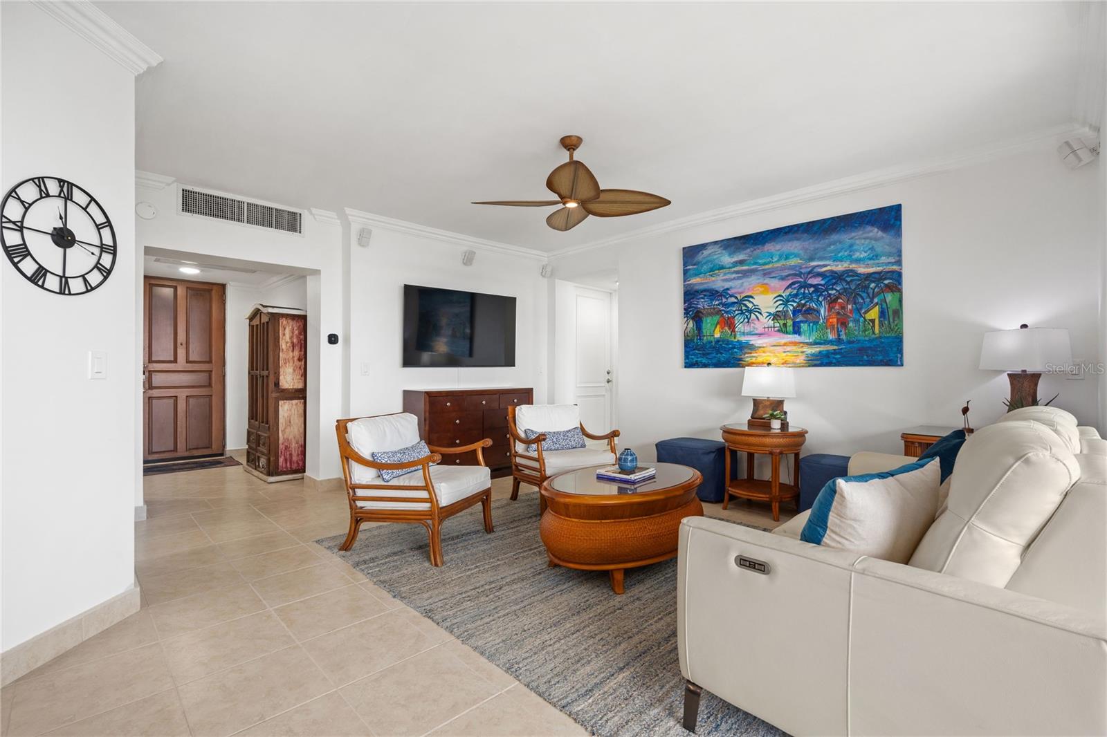 Experimente o charme opulento deste apartamento estilo resort no The Marbella Club em Palmas Del Mar, com vistas espetaculares e desobstruídas do Mar do Caribe, da Ilha Vieques e de El Yunque a partir do terraço do 4º andar. Abraçando o fascínio do acesso direto à praia, esta é a vida costeira requintada do Caribe no seu melhor. Com dois quartos, duas casas de banho completas e um lavabo, este é um santuário de conforto e tranquilidade. A cozinha, com impressionantes bancadas em granito e eletrodomésticos em aço inoxidável, é o sonho de qualquer chef, garantindo que as expedições culinárias se tornem um acontecimento delicioso. Um estilo praiano, porém elegante, ressoa em toda a sala de estar/jantar, convidando reuniões íntimas e tornando o entretenimento uma forma de arte. O terraço, oferecendo vistas inabaláveis da praia hipnotizante, convida você a experimentar o nascer do sol deslumbrante sobre o oceano, enquanto a varanda apresenta um retiro sereno para vistas pitorescas. Esta magnífica propriedade vem totalmente equipada, já que todos os eletrodomésticos e móveis, muitos dos quais são Tommy Bahama, estão incluídos, tornando-a um refúgio pronto para uso. Além disso, estão incluídas duas vagas de garagem escrituradas, assim como um carrinho de golfe 2022 de 4 lugares. As atualizações recentes incluem um chuveiro grande e moderno no banheiro principal com uma relaxante luminária de chuva e assentos tipo spa, e novas atualizações no chuveiro do banheiro de hóspedes. Novos ventiladores de teto Mienke-Aire topo de linha com controle remoto e iluminação LED estão nas áreas de estar, jantar e quarto principal. O armário da lavanderia foi atualizado para incluir uma nova lavadora e secadora empilhável de tamanho normal. Situado em uma comunidade exclusiva à beira-mar, apresenta um refúgio de vida refinado meticulosamente projetado e perfeitamente mantido. Instalações encantadoras e paisagísticas em estilo resort, incluem várias piscinas e uma jacuzzi relaxante. Com segurança 24 horas por dia, 7 dias por semana, sua tranquilidade está garantida em meio ao caloroso abraço deste paraíso tropical. O edifício possui gerador de energia completo, proporcionando tranquilidade, e acesso por elevador. Fazer parte da comunidade de carrinhos de golfe em Palmas Del Mar concede privilégios notáveis. Mergulhe na grandeza do Country Club, divirta-se com partidas animadas no Tennis and Pickleball Club, desfrute da felicidade tropical no Beach Club, ideal para famílias, com sua própria quadra de tênis de praia. A academia, a marina com serviço completo e as opções gastronômicas requintadas criam uma tapeçaria de experiências extraordinárias ao seu alcance. Para quem procura uma oportunidade de investimento astuta, são permitidos alugueres de curta duração, garantindo a máxima flexibilidade e retorno.