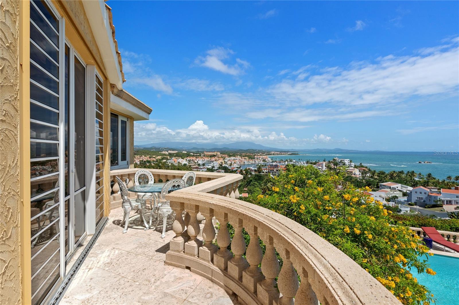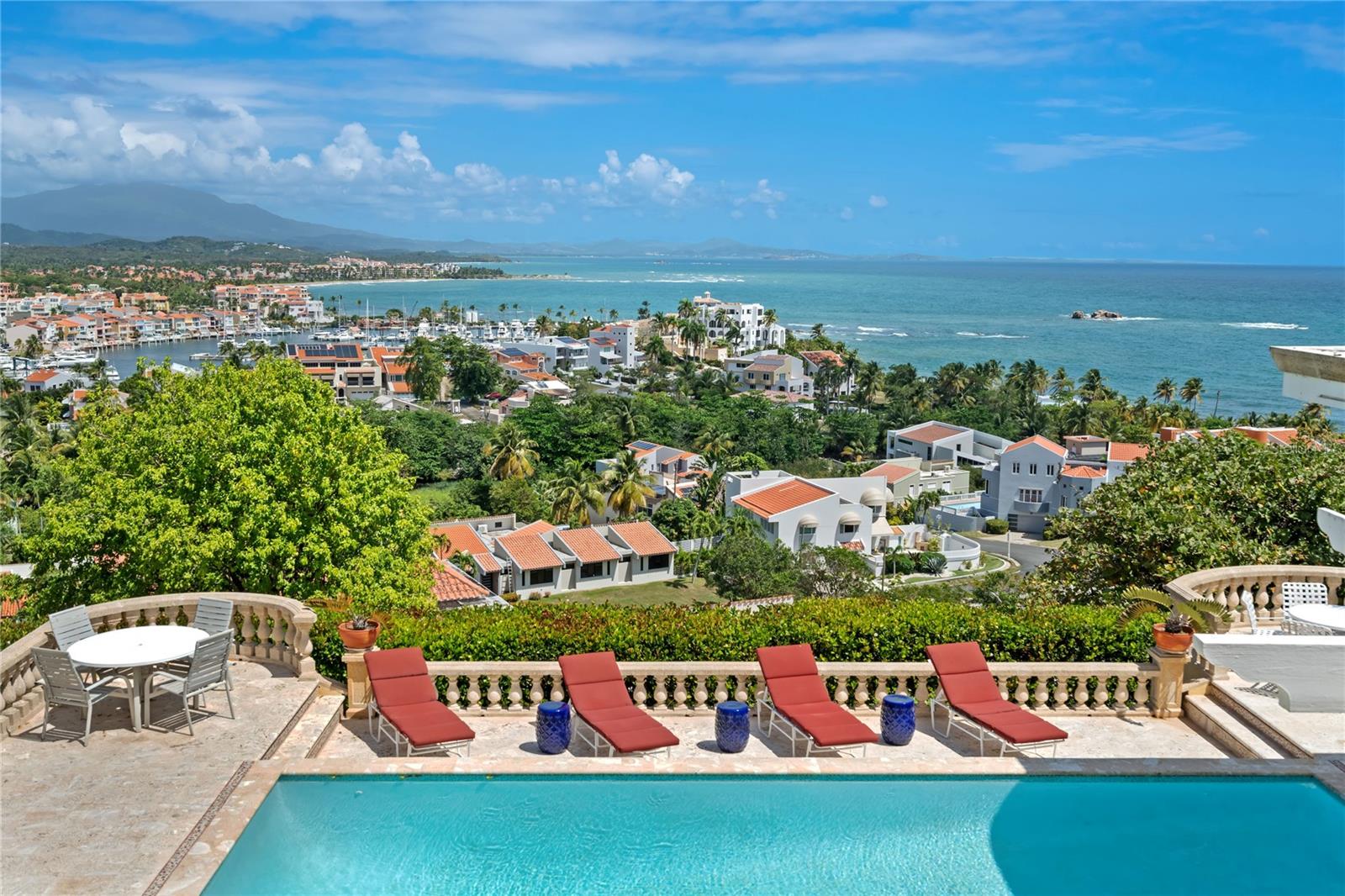 Situada no topo da paisagem exuberante e vibrante de Palmas del Mar, esta propriedade distinta se destaca em uma categoria à parte, ocupando uma localização extremamente privilegiada que oferece vistas deslumbrantes do oceano cristalino, das montanhas majestosas e do extenso resort abaixo. Projetada como um cenário idílico tanto para grandes reuniões festivas quanto para uma vida tranquila de retiro, a arquitetura da propriedade abraça magistralmente a beleza natural circundante através do uso de janelas grandes, amplos terraços, pátios ajardinados meticulosamente paisagísticos e um encantador pátio central. Ao entrar, os hóspedes são recebidos por um cativante jardim ao ar livre, dando o tom para o interior requintado que se encontra no seu interior. O interior é uma vitrine de luxo, com piso de mármore rico que brilha sob a luz, tetos embutidos decorativos de design complexo e detalhes em madeira polida que adicionam calor e elegância aos espaços de convivência. Estas áreas interiores foram concebidas para se integrarem perfeitamente com o exterior, garantindo que a beleza do cenário natural da propriedade está sempre à vista. A suíte master serve como um santuário de máximo conforto e luxo, oferecendo um banheiro privativo equipado com um revigorante chuveiro externo e uma relaxante jacuzzi, personificando o auge da vida opulenta. Esta propriedade abriga cinco quartos adicionais, cada um com seu design único e vistas panorâmicas da vibrante paisagem ao ar livre, proporcionando aos hóspedes retiros privados. Aventuras culinárias aguardam na cozinha de última geração, que possui ilhas duplas, armários personalizados e janelas estrategicamente posicionadas que emolduram as deslumbrantes vistas do oceano, inspirando chefs e anfitriões divertidos. A sala de jantar adjacente à cozinha foi projetada para receber jantares luxuosos, enquanto a variedade de ambientes externos da propriedade oferece espaços íntimos e versáteis para entretenimento, incluindo uma área ao lado da piscina com uma cozinha ao ar livre que permite aos hóspedes jantar ao ar livre enquanto aproveitam o exuberante resort. atmosfera. O design de inspiração mediterrânica da propriedade, caracterizado pelas suas majestosas colunas e balaustradas tendo como pano de fundo as cores vibrantes do jardim, cria um ambiente sereno mas elegante, convidando ao relaxamento e à diversão. Com generosos 6.370 pés quadrados de área útil e estacionamento coberto, esta propriedade dá acesso às comodidades luxuosas de Palmas del Mar, incluindo um centro de tênis, centro equestre, opções de ensino particular, dois campos de golfe profissionais, dezesseis restaurantes e cafés, e o marina e iate clube exclusivos, colocando-o como uma joia rara na costa leste de Porto Rico. Esta propriedade tem um significado histórico, pois foi originalmente construída por Charles Fraser, o mestre desenvolvedor original de Palmas del Mar. Entre os muitos locais disponíveis, Fraser escolheu este local excepcional para sua residência pessoal, marcando-o como um local de valor e beleza incomparáveis. Fraser, conhecido por desenvolver destinos icônicos como Kiawah Island, Sea Pines e Amelia Island, imbuiu esta propriedade com um legado de luxo e harmonia com a natureza. Como tal, esta propriedade não oferece apenas um espaço habitacional, mas apresenta uma oportunidade única de possuir um pedaço de história, oferecendo um estilo de vida incomparável num dos locais mais desejáveis de Porto Rico.