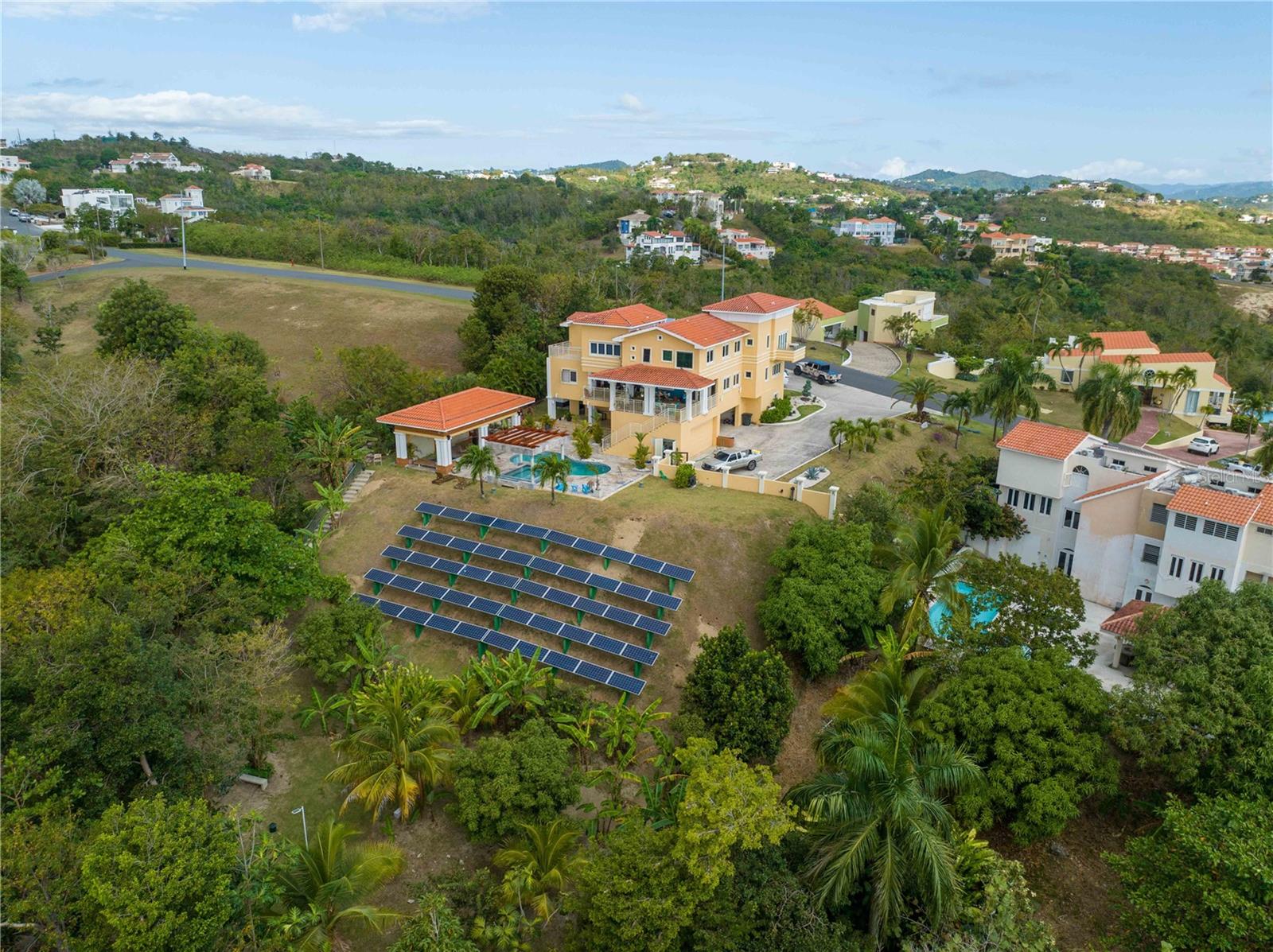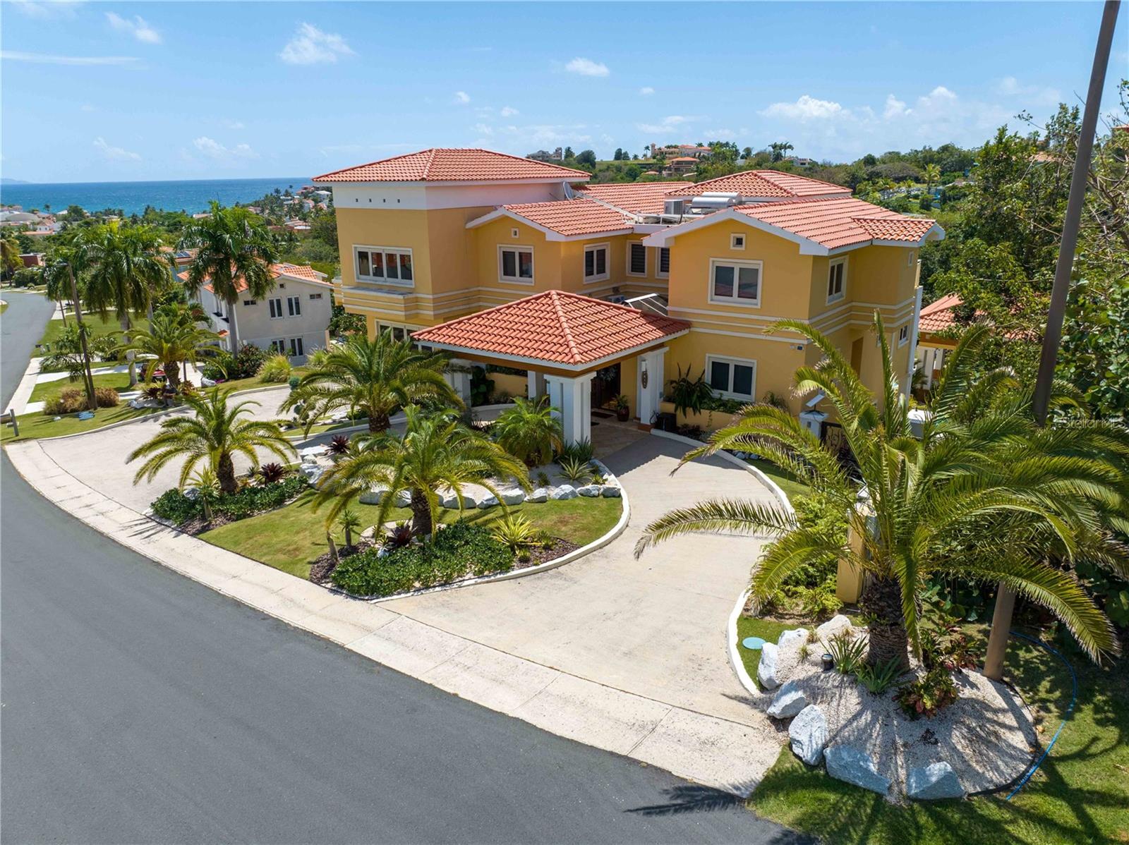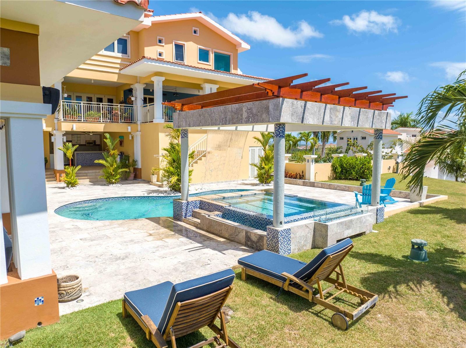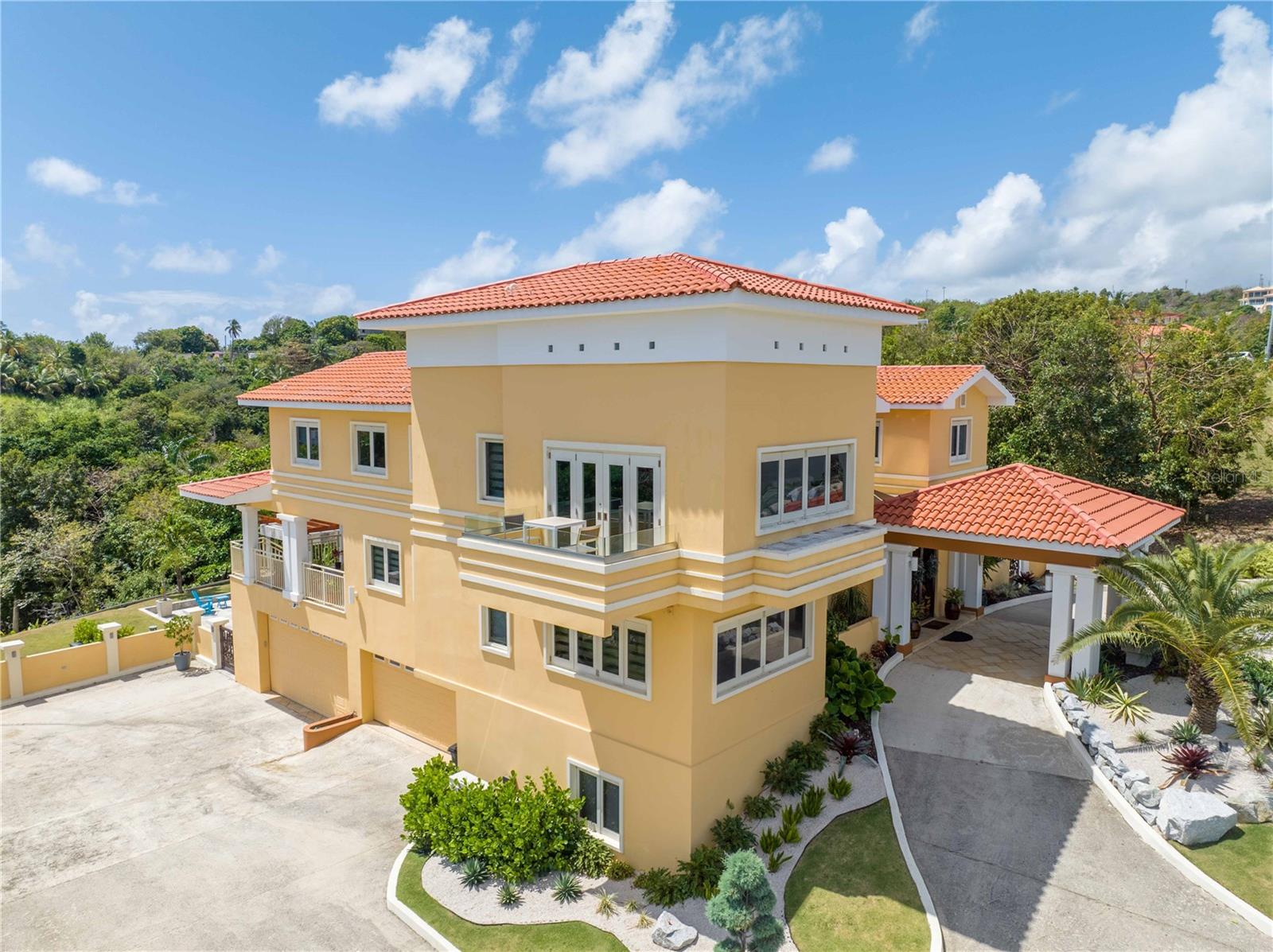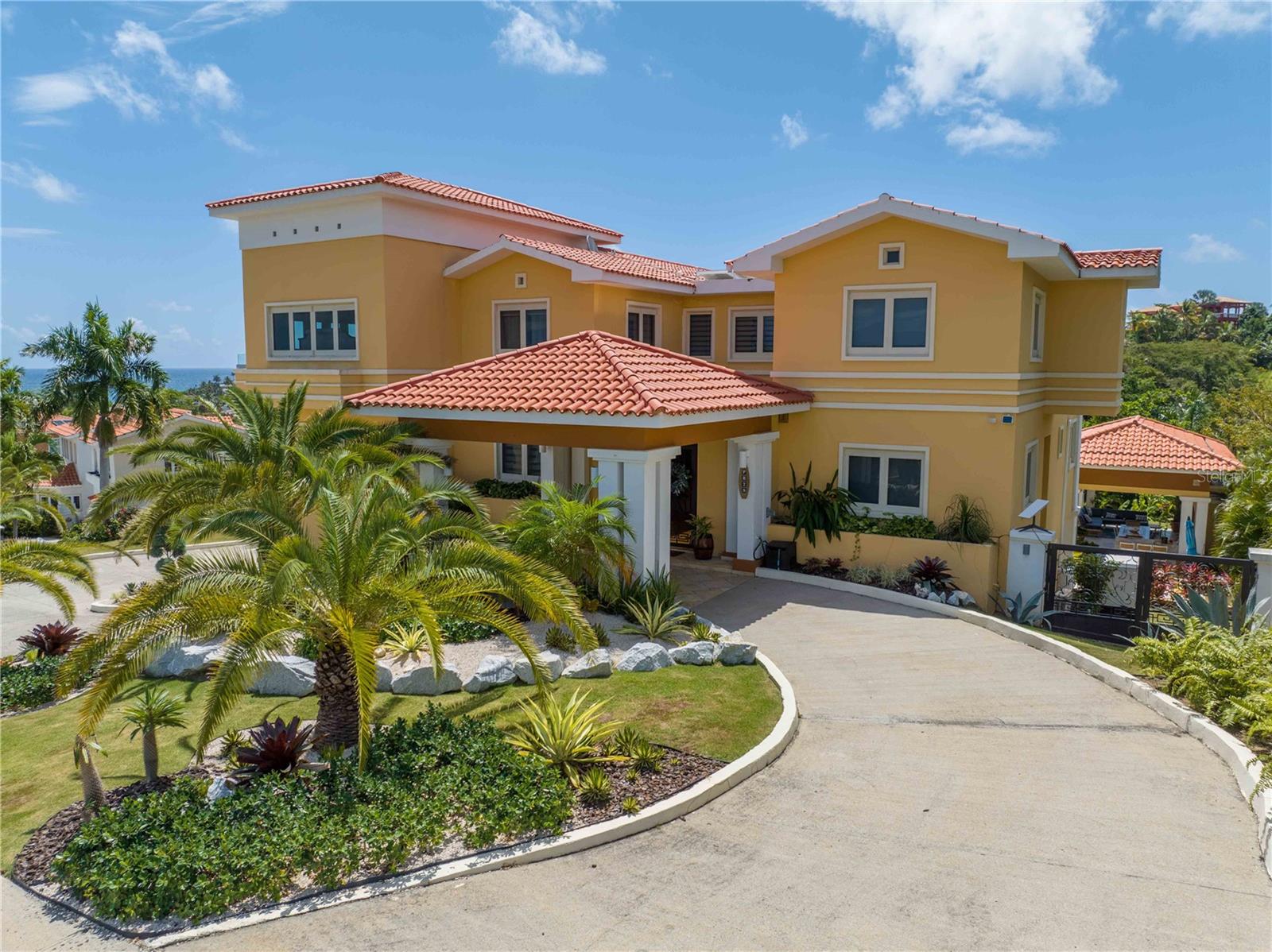 Esta propriedade deslumbrante localizada em Palmas del Mar Humacao Porto Rico oferece vistas deslumbrantes do Oceano Caribe em vários níveis. O primeiro andar dispõe de hall de entrada com área de estar, sala de jantar, sala de estar, cozinha atualizada com eletrodomésticos Thermador: fogão a gás 5 bocas, máquina de café expresso embutida e geladeira de última geração. Há também um quarto e banheiro completo neste nível. O segundo andar possui quatro quartos. O quarto principal é particularmente luxuoso, com varanda com vista para o mar, banheiro principal recentemente reformado com banheira, chuveiro e sauna dupla, além de um amplo closet. O nível inferior da propriedade inclui garagem para três carros, arrecadação e sala de teatro totalmente equipada. A partir deste nível, você pode acessar o retiro ao ar livre com piscina com fontes, banheira de hidromassagem, mirante, sistema de som, área para churrasco, cozinha externa e bela iluminação. Além disso, esta propriedade é ecológica com 14 kW de painéis solares fornecendo energia. A propriedade também inclui árvores frutíferas, contribuindo para o ambiente tropical deste retiro luxuoso. Palmas del Mar é um dos maiores empreendimentos planejados e orientados para resorts no Caribe, com aproximadamente 2.750 acres de terra dedicados a uma variedade de usos residenciais, comerciais e de resort. O condomínio fechado está localizado na costa sudeste de Porto Rico, a aproximadamente 35 milhas de San Juan. Dentro dos portões de Palmas del Mar há uma variedade de paisagens exuberantes e caminhos pavimentados para caminhadas e carrinhos de golfe por toda a comunidade. 32 bairros diferentes pontilham a paisagem, desde residências de luxo unifamiliares até sobrados e apartamentos. A Palmas Academy, uma escola de inglês do ensino fundamental ao 12º ano, uma floresta tropical de 60 acres, lojas, spas e 20 restaurantes estão todos a um passeio de carrinho, tornando Palmas del Mar o resort mais completo do Caribe.