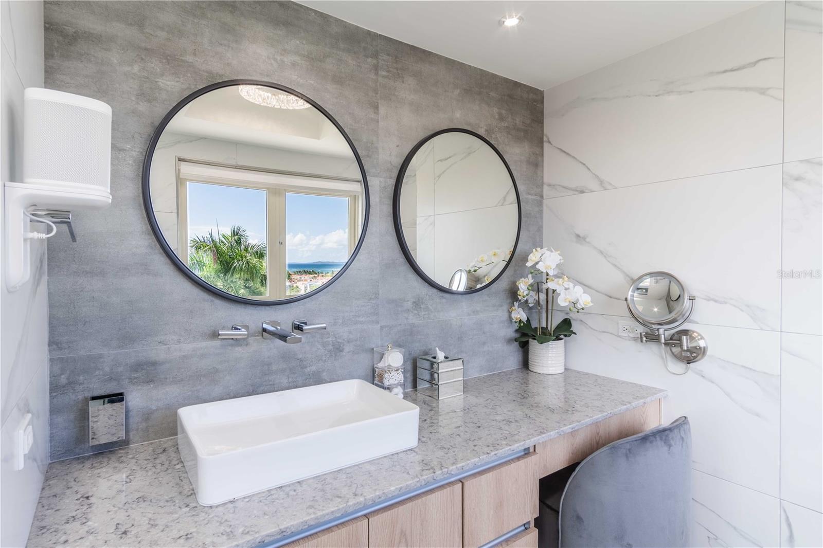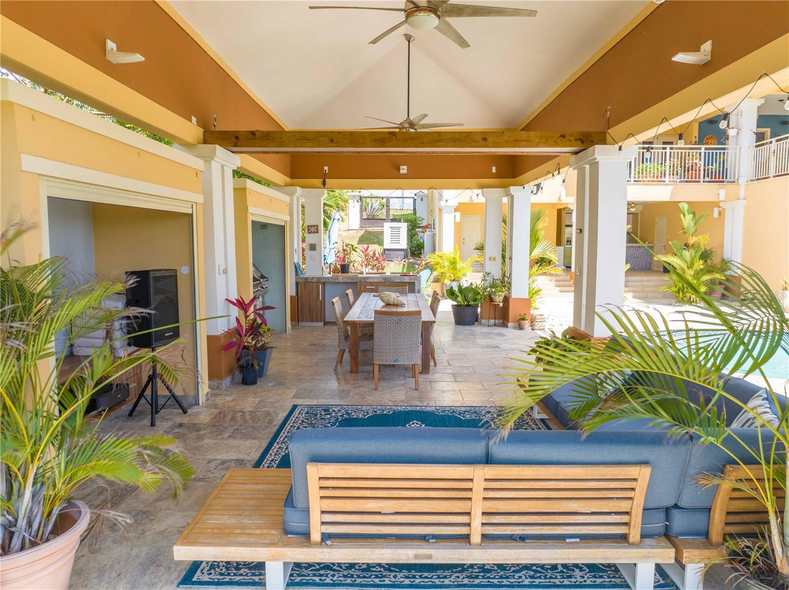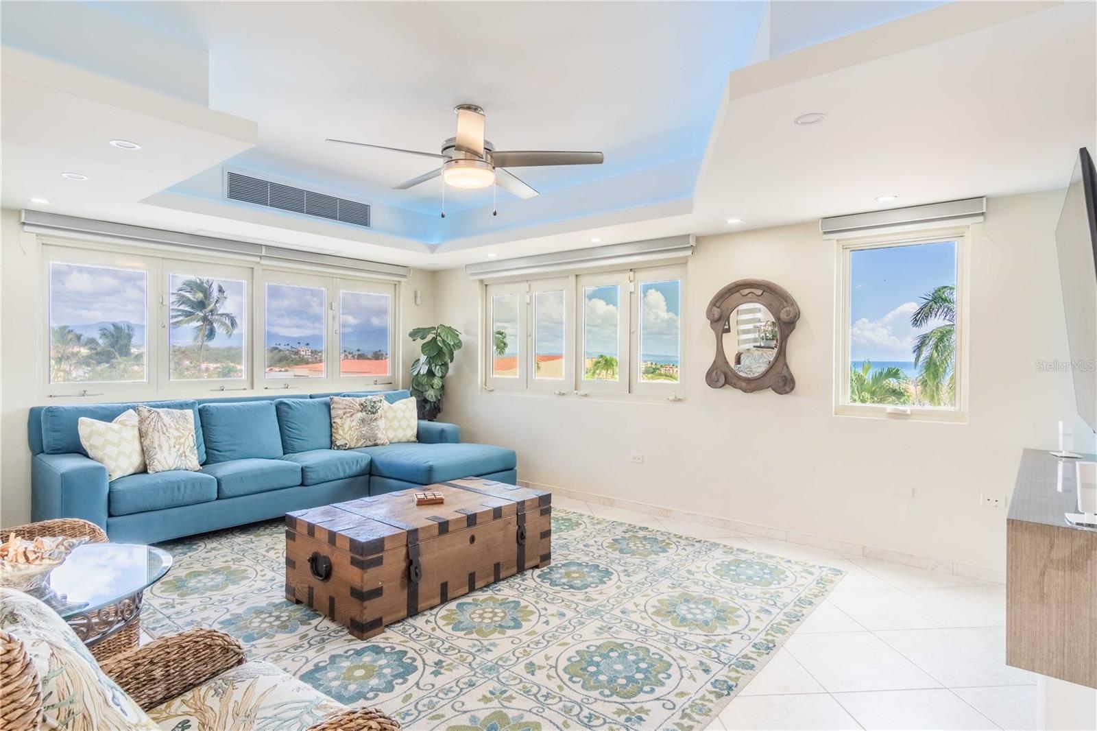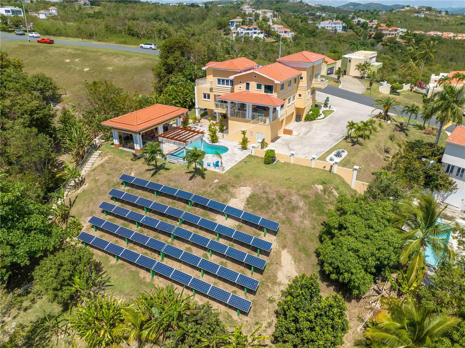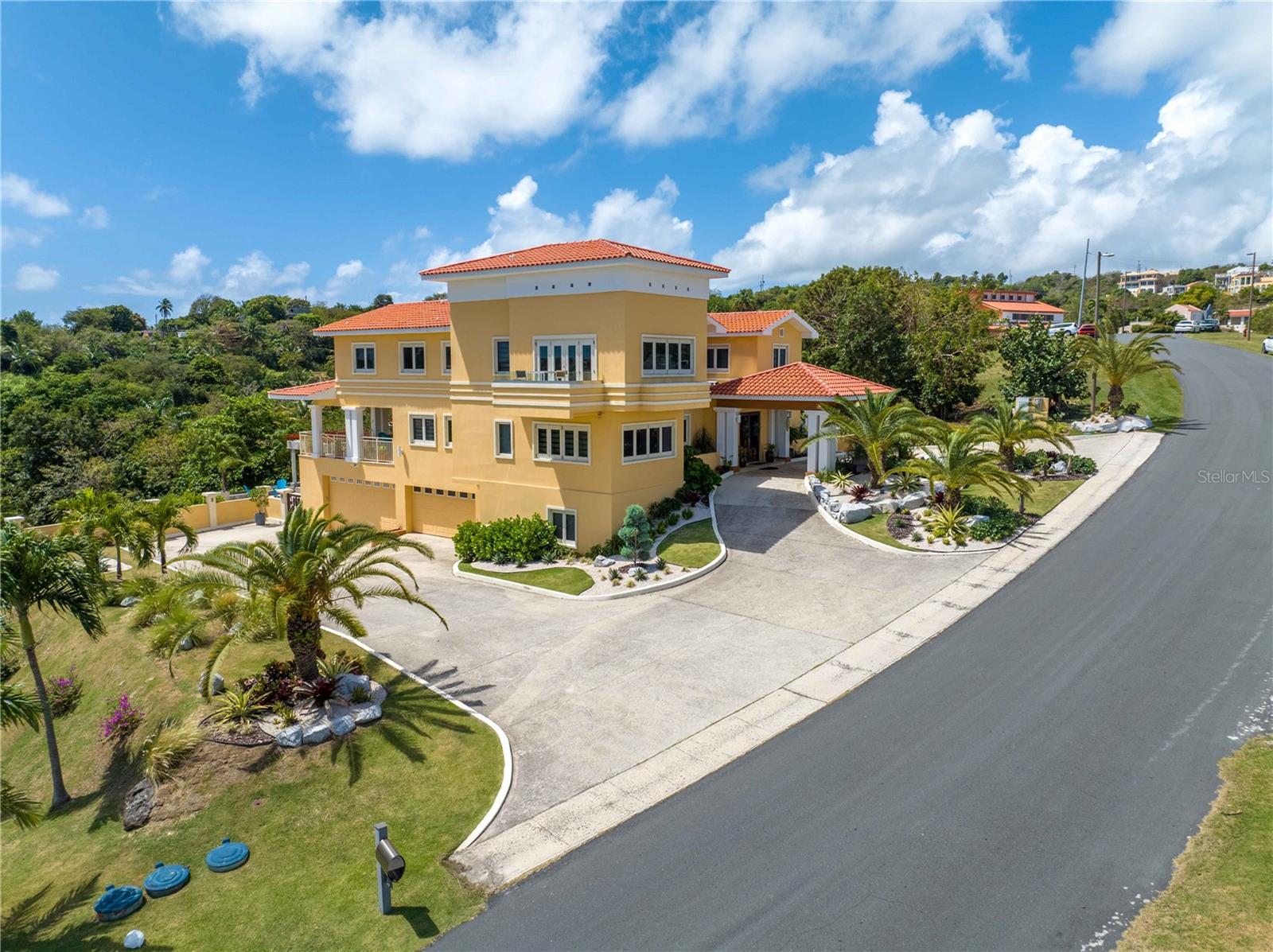 Esta propriedade deslumbrante localizada em Palmas del Mar Humacao Porto Rico oferece vistas deslumbrantes do Oceano Caribe em vários níveis. O primeiro andar dispõe de hall de entrada com área de estar, sala de jantar, sala de estar, cozinha atualizada com eletrodomésticos Thermador: fogão a gás 5 bocas, máquina de café expresso embutida e geladeira de última geração. Há também um quarto e banheiro completo neste nível. O segundo andar possui quatro quartos. O quarto principal é particularmente luxuoso, com varanda com vista para o mar, banheiro principal recentemente reformado com banheira, chuveiro e sauna dupla, além de um amplo closet. O nível inferior da propriedade inclui garagem para três carros, arrecadação e sala de teatro totalmente equipada. A partir deste nível, você pode acessar o retiro ao ar livre com piscina com fontes, banheira de hidromassagem, mirante, sistema de som, área para churrasco, cozinha externa e bela iluminação. Além disso, esta propriedade é ecológica com 14 kW de painéis solares fornecendo energia. A propriedade também inclui árvores frutíferas, contribuindo para o ambiente tropical deste retiro luxuoso. Palmas del Mar é um dos maiores empreendimentos planejados e orientados para resorts no Caribe, com aproximadamente 2.750 acres de terra dedicados a uma variedade de usos residenciais, comerciais e de resort. O condomínio fechado está localizado na costa sudeste de Porto Rico, a aproximadamente 35 milhas de San Juan. Dentro dos portões de Palmas del Mar há uma variedade de paisagens exuberantes e caminhos pavimentados para caminhadas e carrinhos de golfe por toda a comunidade. 32 bairros diferentes pontilham a paisagem, desde residências de luxo unifamiliares até sobrados e apartamentos. A Palmas Academy, uma escola de inglês do ensino fundamental ao 12º ano, uma floresta tropical de 60 acres, lojas, spas e 20 restaurantes estão todos a um passeio de carrinho, tornando Palmas del Mar o resort mais completo do Caribe.