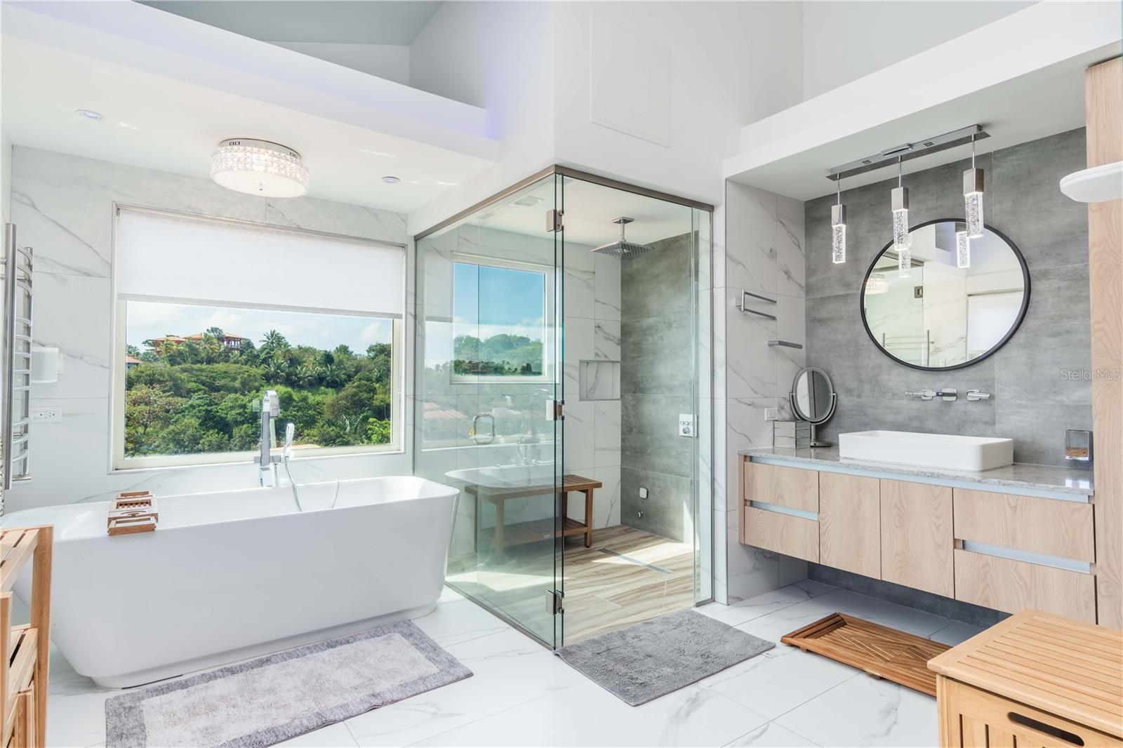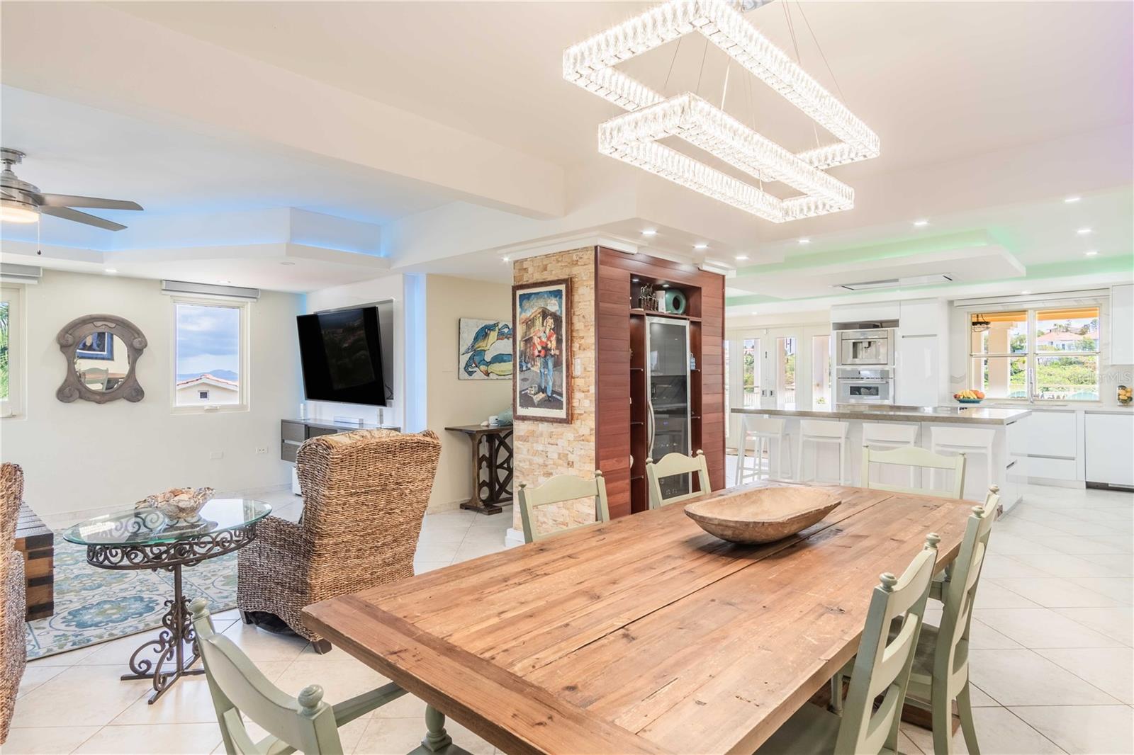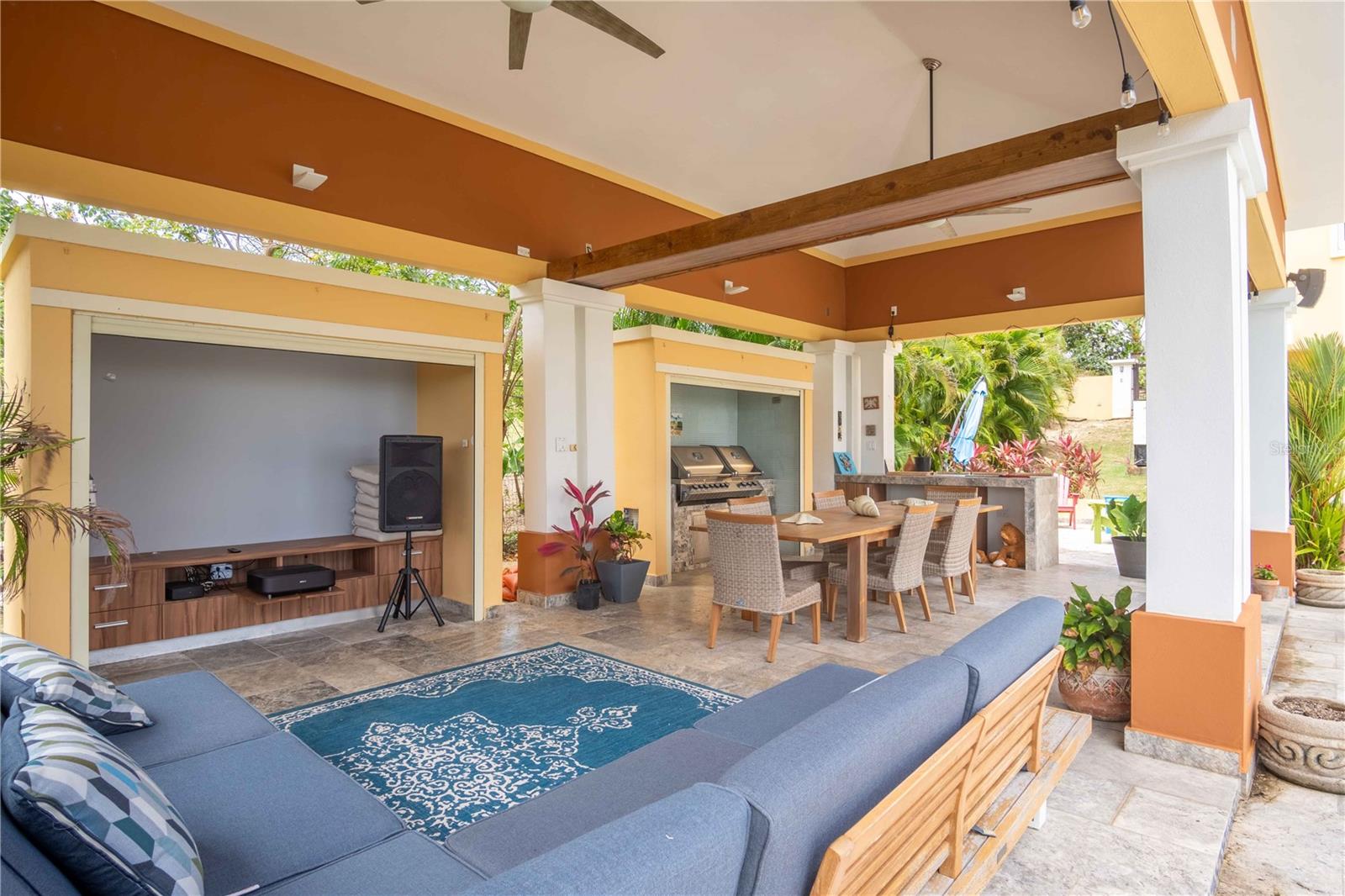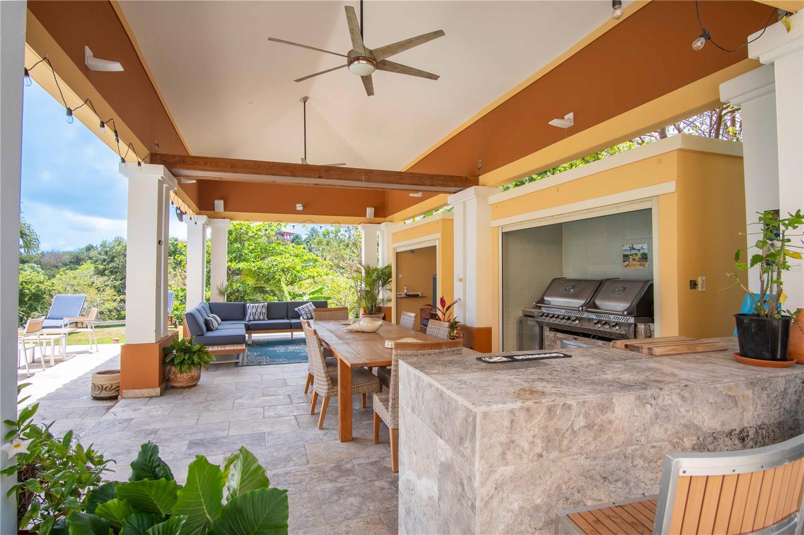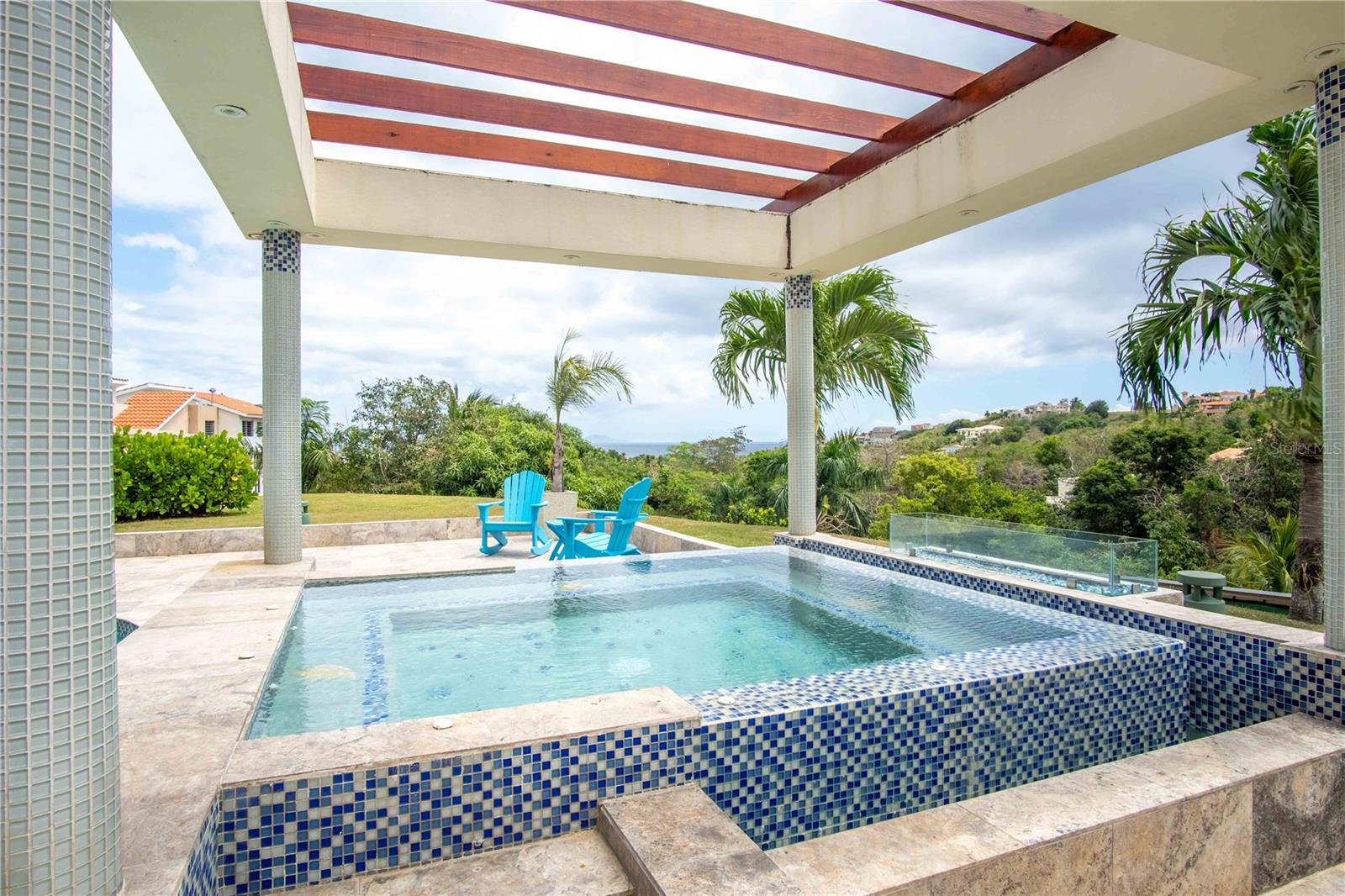Esta propriedade deslumbrante localizada em Palmas del Mar Humacao Porto Rico oferece vistas deslumbrantes do Oceano Caribe em vários níveis. O primeiro andar dispõe de hall de entrada com área de estar, sala de jantar, sala de estar, cozinha atualizada com eletrodomésticos Thermador: fogão a gás 5 bocas, máquina de café expresso embutida e geladeira de última geração. Há também um quarto e banheiro completo neste nível. O segundo andar possui quatro quartos. O quarto principal é particularmente luxuoso, com varanda com vista para o mar, banheiro principal recentemente reformado com banheira, chuveiro e sauna dupla, além de um amplo closet. O nível inferior da propriedade inclui garagem para três carros, arrecadação e sala de teatro totalmente equipada. A partir deste nível, você pode acessar o retiro ao ar livre com piscina com fontes, banheira de hidromassagem, mirante, sistema de som, área para churrasco, cozinha externa e bela iluminação. Além disso, esta propriedade é ecológica com 14 kW de painéis solares fornecendo energia. A propriedade também inclui árvores frutíferas, contribuindo para o ambiente tropical deste retiro luxuoso. Palmas del Mar é um dos maiores empreendimentos planejados e orientados para resorts no Caribe, com aproximadamente 2.750 acres de terra dedicados a uma variedade de usos residenciais, comerciais e de resort. O condomínio fechado está localizado na costa sudeste de Porto Rico, a aproximadamente 35 milhas de San Juan. Dentro dos portões de Palmas del Mar há uma variedade de paisagens exuberantes e caminhos pavimentados para caminhadas e carrinhos de golfe por toda a comunidade. 32 bairros diferentes pontilham a paisagem, desde residências de luxo unifamiliares até sobrados e apartamentos. A Palmas Academy, uma escola de inglês do ensino fundamental ao 12º ano, uma floresta tropical de 60 acres, lojas, spas e 20 restaurantes estão todos a um passeio de carrinho, tornando Palmas del Mar o resort mais completo do Caribe.