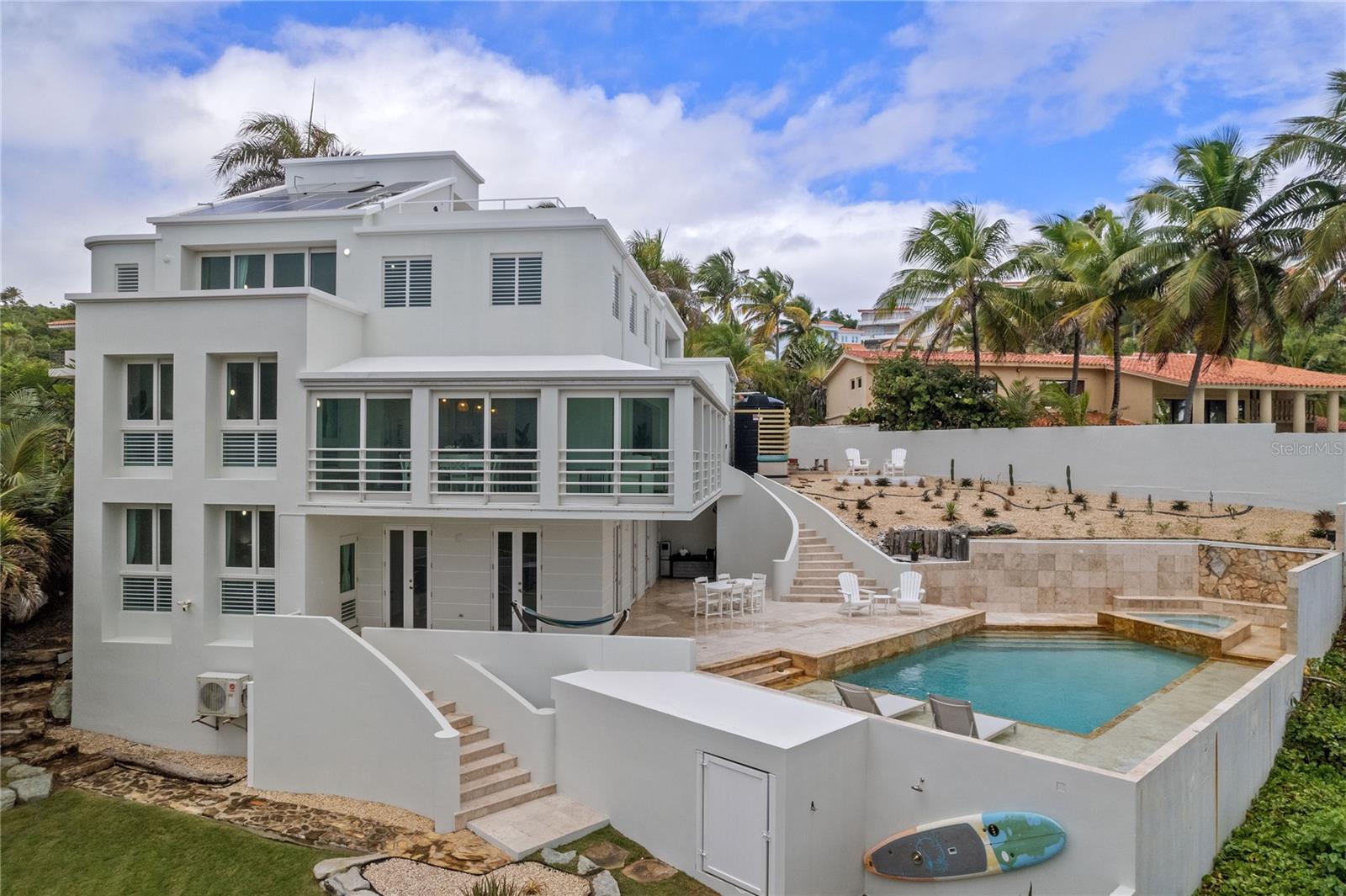 Acorde com o som das ondas gentilmente rolando na praia. Saia da cama e entre na vista sem fim do mar do Caribe, onde o horizonte se estende além da ilha de Vieques e o sol da manhã pinta o céu em tons de coral e ouro. Bem-vindo ao Castelo da Shell 32, um santuário à beira-mar em Palmas Del Mar, onde a elegância se reúne viva costeira descontraída. Esta casa cuidadosamente reimaginada de 5 quartos e 5,5 banheiros convida você a desacelerar, respirar profundamente e viver plenamente-todo momento emoldurado pelas vistas do oceano e beijado pela brisa do mar. Desde o momento em que você entra, você é recebido por interiores ensolarados que fluem sem esforço de sala em sala. Linhas arquitetônicas limpas, texturas macias e detalhes inspirados em madeira criam um ritmo natural e calmante em toda a casa. Os pisos de porcelana italiana esfriam os pés enquanto você se move em direção ao coração da casa: uma espaçosa cozinha de conceito aberto e uma área de estar feita para conexão, celebração e facilidade diária. Abra as portas de vidro e entre em seu próprio resort privado à beira -mar. A piscina de água salgada totalmente aquecida e o spa são projetados para diversão durante todo o ano, com cachoeiras quentes suaves em cascata da banheira de hidromassagem para a piscina-apenas passos da areia. Esteja você hospedando um jantar ao pôr do sol no terraço da cobertura, desfrutando de um momento tranquilo no jardim ou assistindo as estrelas emergirem sobre o mar, esta casa oferece um cenário que eleva todas as experiências. Construído de forma sustentável para o futuro, o Shell Castle 32 inclui 27 painéis solares, Tesla Powerwalls, um aquecedor de água solar e uma cisterna de 2.000 galões. Todos os detalhes são projetados com conforto, beleza e autoconfiança em mente. E para aqueles que buscam uma oportunidade de investimento, são permitidos aluguéis de curto prazo, tornando isso não apenas uma residência dos sonhos, mas também uma proposta rara e lucrativa. Com tão poucas propriedades à beira -mar deste calibre e localização disponíveis em Porto Rico, o Shell Castle 32 se destaca como um paraíso de estilo de vida e um ativo inteligente. Aqui, a natureza e o luxo existem em perfeita harmonia. O Shell Castle 32 não é apenas um lugar para se viver - é a vida que você sempre imaginou, agora ao seu alcance.