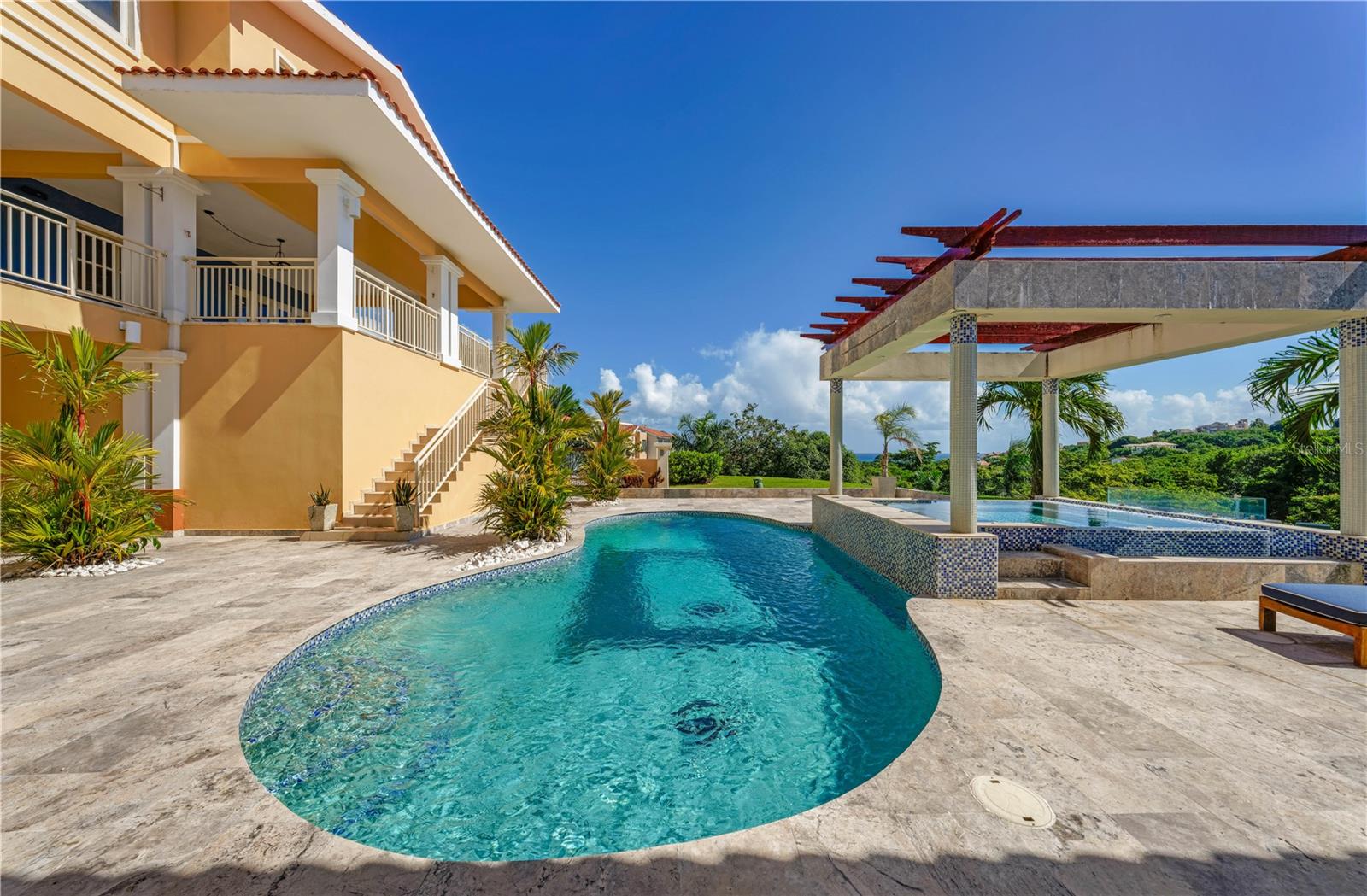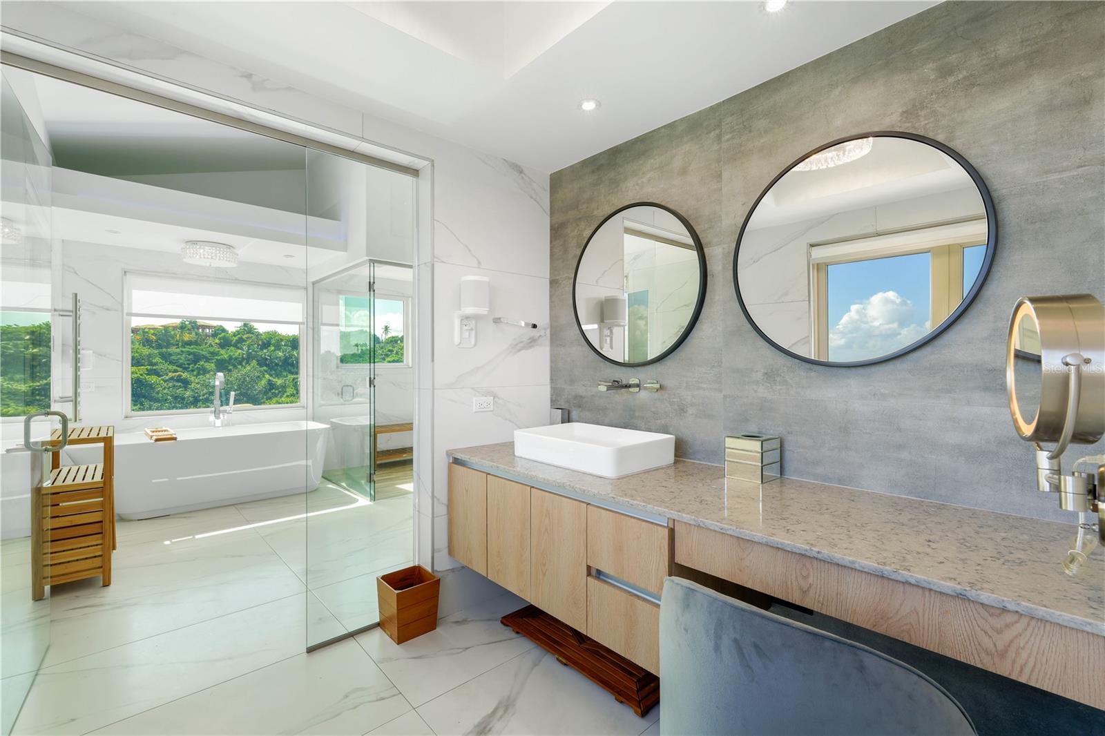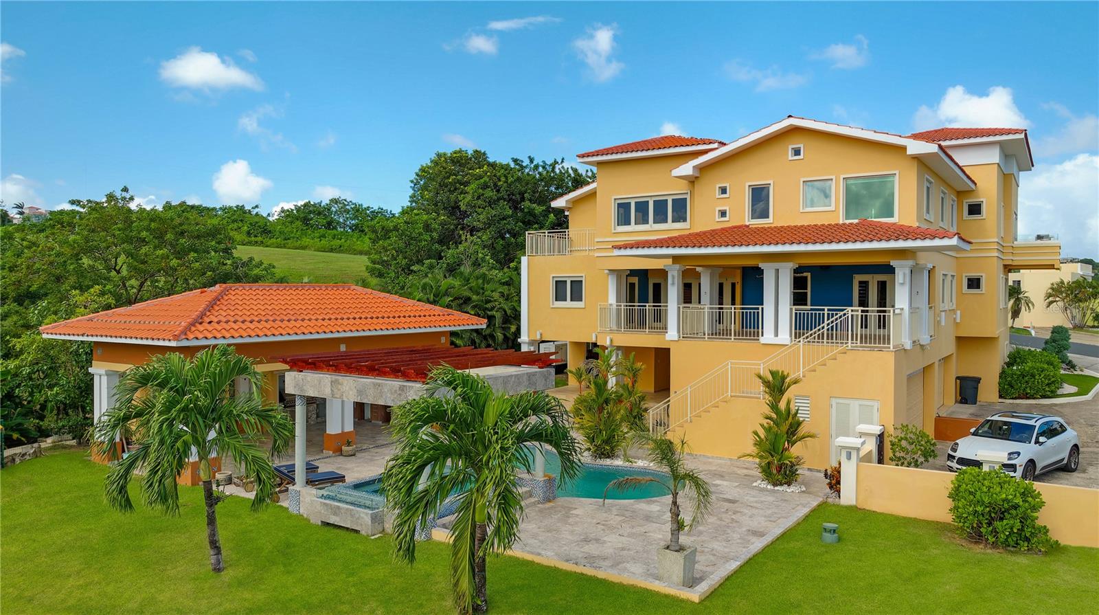 Bem-vindo ao oásis dos seus sonhos no coração de Palmas del Mar. Esta impressionante casa com mais de 5.380 pés quadrados interiores foi meticulosamente renovada com os mais altos padrões, combinando luxo e conforto com vistas deslumbrantes do oceano e da marina. Com cinco quartos espaçosos projetados para tranquilidade e relaxamento, cada quarto é repleto de muita luz natural e acessórios lindamente decorados. A casa possui cinco banheiros elegantes, perfeitos para relaxar após um longo dia, além de uma sala de mídia dedicada que oferece a melhor experiência de entretenimento para noites de cinema e reuniões familiares. Um espaço de escritório cuidadosamente projetado oferece o cenário perfeito para produtividade enquanto desfruta de vistas deslumbrantes. A ampla planta aberta conecta perfeitamente as áreas de estar, jantar e cozinha, tornando-a ideal para receber familiares e amigos. Ao lado da cozinha, um amplo terraço exterior convida-o a desfrutar de belas vistas panorâmicas, criando um espaço perfeito para refeições ao ar livre ou simplesmente desfrutar da paisagem deslumbrante. No exterior, desfrute do seu paraíso privado, onde poderá apanhar banhos de sol na piscina aquecida ou relaxar no luxuoso spa. A cozinha ao ar livre é perfeita para preparar churrascos de verão, e a bela entrada circular aumenta o apelo da propriedade. Esta casa não é apenas luxuosa, mas também eficiente, equipada com painéis solares e baterias para garantir a sustentabilidade energética, complementada por um gerador de reserva para maior tranquilidade. Situada no alto de uma colina, esta residência oferece vistas deslumbrantes do deslumbrante resort Palmas del Mar, oferecendo um retiro sereno com todas as comodidades que você precisa para um estilo de vida vibrante. Com uma espaçosa garagem para dois carros e uma abundância de espaços exteriores, esta casa oferece tudo o que pode desejar e muito mais. Oferecendo os mais altos níveis de conforto e conveniência, Palmas del Mar é reconhecida internacionalmente pelos seus melhores campos de golfe, quadras de tênis, centro hípico, escola, restaurantes e marina. A apenas 40 minutos de carro de San Juan, desfrute do melhor estilo de vida de resort e ao mesmo tempo próximo da área metropolitana.