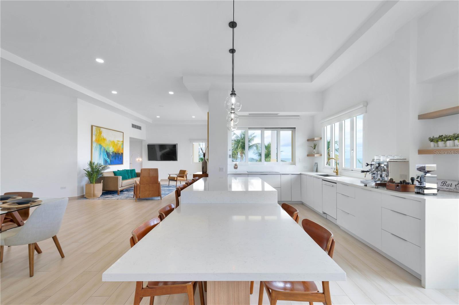Experimente o máximo em elegância costeira com esta impressionante cobertura no Marbella Club II, localizada no prestigiado Palmas Del Mar Resort. Uma oportunidade única na vida de possuir os únicos 3.200 pés quadrados, condição de hortelã e cobertura totalmente reformada. Como a maior residência do condomínio, possui 4 quartos, 4 banheiros e oferece vistas panorâmicas de tirar o fôlego por toda parte. Perfeitamente situado na praia, esta casa extraordinária é uma jóia rara a não perder. Projetado com um layout aberto, a propriedade possui uma bela cozinha de grife, equipada com aparelhos Thermador e Subzero de primeira linha. A elegante sala de jantar possui uma adega de vidro entre vidro e flui perfeitamente para a sala de estar e terraço à beira-mar, criando um espaço perfeito para entreter e desfrutar de vistas deslumbrantes. Esta cobertura totalmente renovada e pronta para uso é complementada pelas comodidades excepcionais do Marbella Club II, incluindo duas piscinas em estilo resort, uma banheira de hidromassagem, um centro de fitness totalmente equipado e uma adega com armazenamento de vinho privado para o pH, bem como três vagas de estacionamento. O condomínio fechado fornece segurança 24/7, garantindo privacidade e paz de espírito. Situada em Palmas del Mar, os moradores desfrutam de acesso a campos de golfe de classe mundial, quadras de tênis, uma marina e refeições requintadas. Seja como residência primária, um retiro de férias ou uma oportunidade de investimento, essa propriedade extraordinária oferece conforto incomparável, sofisticação e um estilo de vida imerso na beleza do Caribe. Não perca a chance de possuir essa cobertura requintada e experimentar a serenidade e o luxo da vida à beira -mar.
