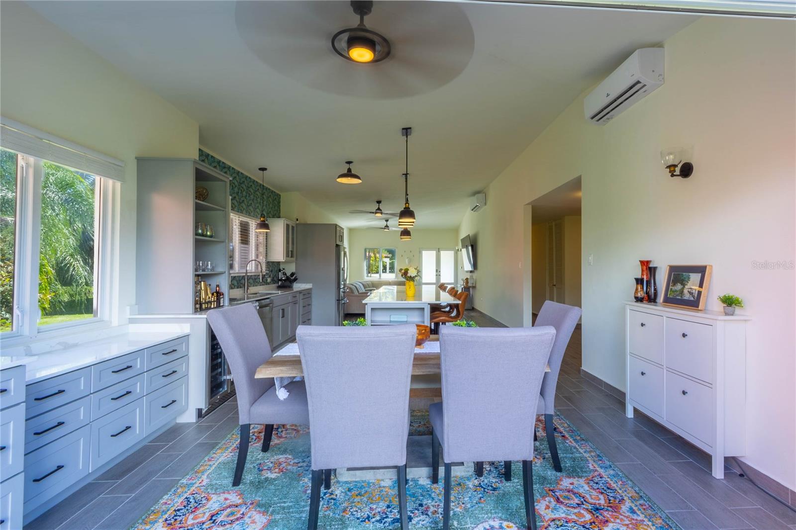 Experimente uma vida elevada em um único nível em Sunrise, Palmas del Mar. Bem-vindo à Casa E16 na Twilight Street, uma casa unifamiliar lindamente remodelada, situada em um terreno de aprox. Lote de 825 metros quadrados com aproximadamente 2.000 pés quadrados de área interna, oferecendo vistas deslumbrantes da montanha e de El Yunque. Esta residência de conceito aberto foi totalmente renovada, combinando design moderno com acabamentos de alta qualidade. O coração da casa é a cozinha personalizada do chef, com eletrodomésticos de aço inoxidável, bancadas de quartzo, armários personalizados e uma impressionante ilha de 3,6 metros - ideal para entretenimento e vida cotidiana. As portas sanfonadas abrem totalmente a parede posterior, criando uma vida interna e externa perfeita, ao mesmo tempo em que enquadram vistas deslumbrantes de El Yunque. As atualizações recentes vão muito além do mobiliário e incluem novos pisos, interiores e exteriores recém-pintados, três banheiros totalmente remodelados e três novos aparelhos de ar condicionado. A eficiência energética e a tranquilidade são melhoradas com um painel solar completo composto por 27 painéis e um Tesla Powerwall, juntamente com um telhado que foi selado novamente profissionalmente após a instalação solar. Os destaques adicionais incluem ventiladores de teto e iluminação personalizáveis e operados remotamente, uma nova lavadora e secadora, embutidos personalizados no armário do quarto principal, uma geladeira para vinhos e bebidas, novos toldos de madeira, novas coberturas para maior privacidade e um cercado para cães totalmente fechado. Localizados na desejável comunidade Sunrise de Palmas del Mar, os residentes desfrutam de segurança 24 horas, piscina comunitária e gazebo, além de acesso a comodidades de classe mundial, incluindo campos de golfe, marinas, praias, restaurantes e muito mais. Esta casa pronta para morar oferece uma combinação excepcional de estilo, conforto, eficiência energética e vistas panorâmicas, tornando-a uma oportunidade rara em uma das comunidades turísticas mais procuradas de Porto Rico.