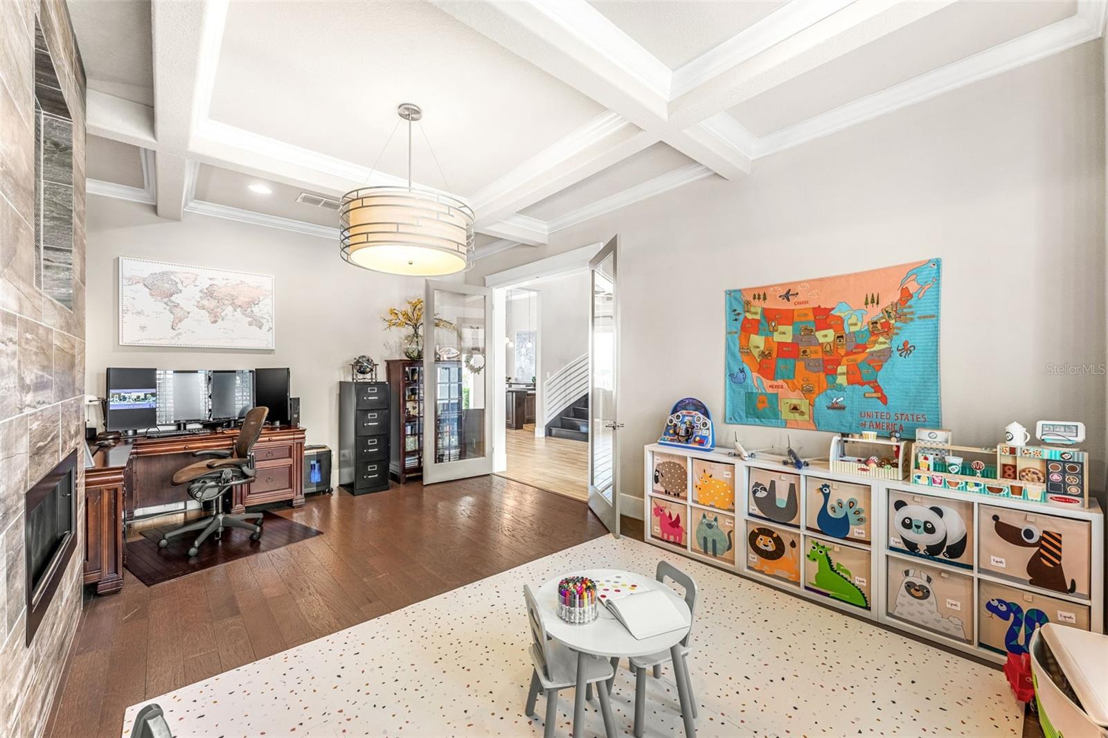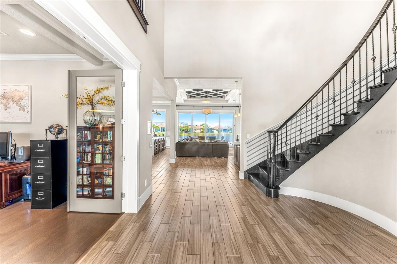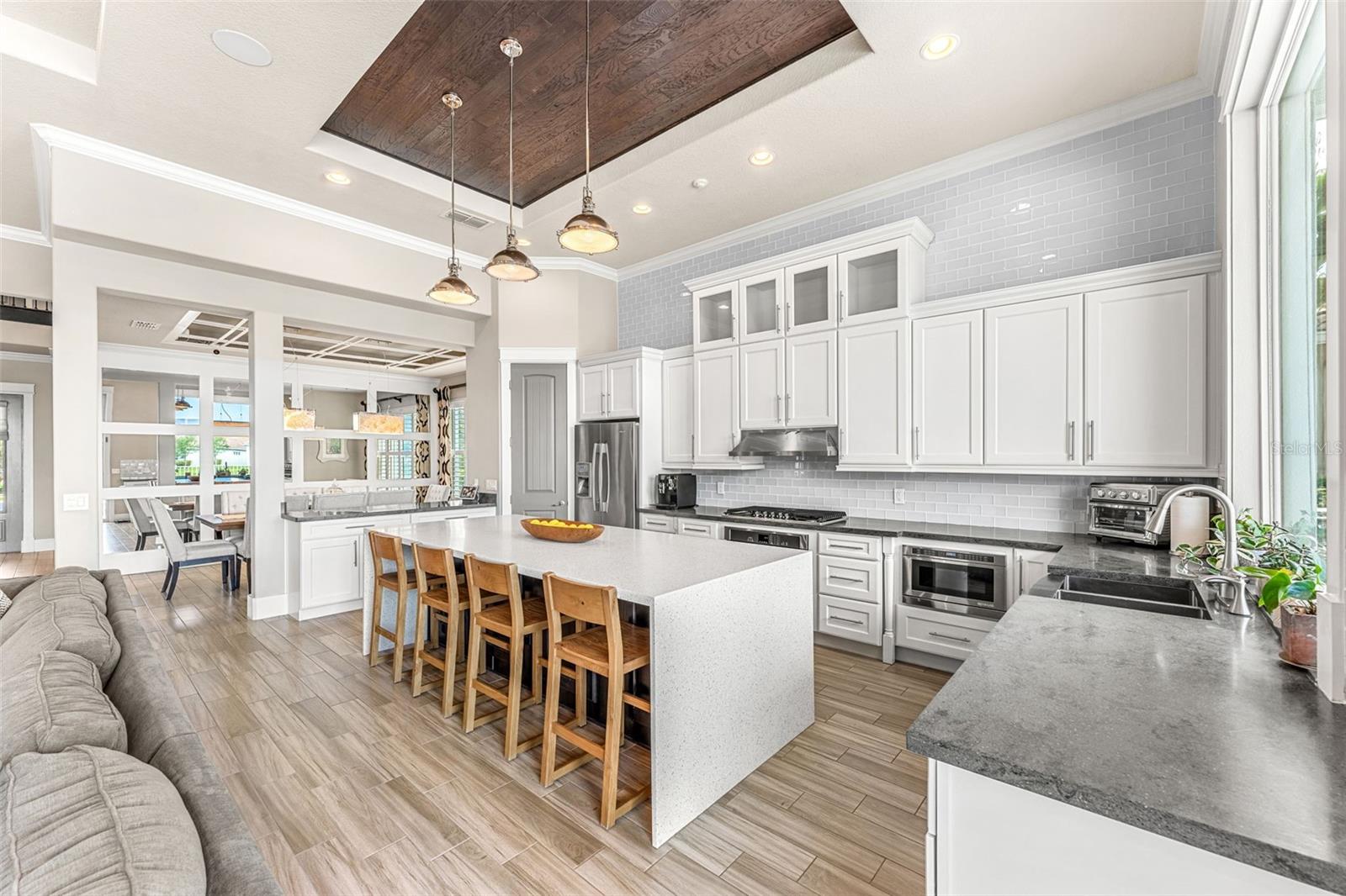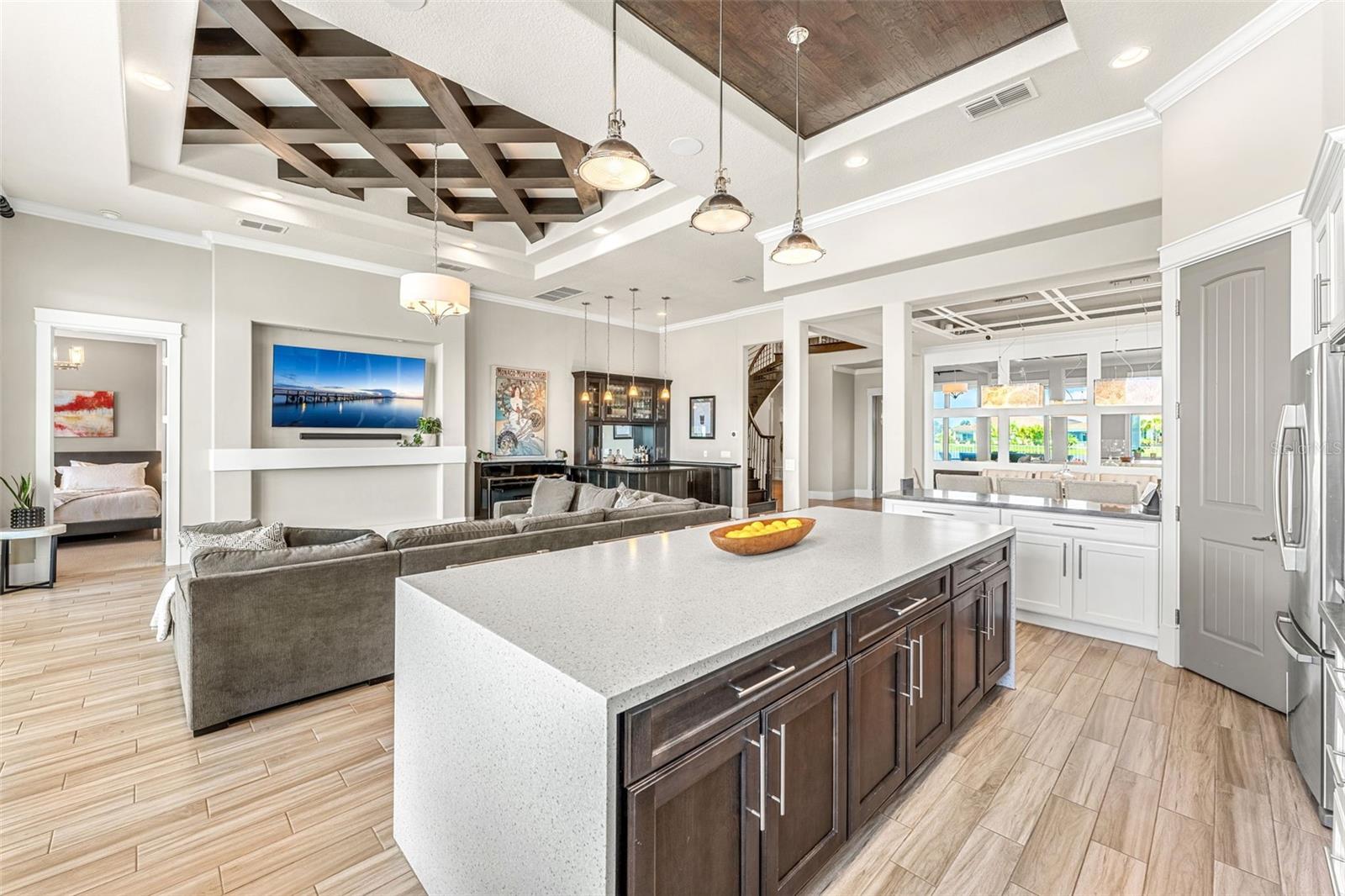 Bem-vindo ao oásis dos seus sonhos! Esta deslumbrante casa modelo antigo, com 4 quartos e 3,5 banheiros, completa com um escritório dedicado e jantar formal, oferece a combinação perfeita de elegância e conforto. Convenientemente situada perto da praia e aninhada num lago pitoresco, esta residência promete um estilo de vida incomparável. Ao entrar na grande entrada de 2 andares, seus olhos são atraídos por características de bom gosto, incluindo uma escada em espiral clássica, belos azulejos percorrendo as áreas principais; tetos personalizados em salas comuns, sancas, acessórios modernos, acabamentos elegantes e muito mais! O escritório doméstico é espaçoso com lareira a gás e orientação perfeita para um escritório, a sala de jantar formal acomoda uma grande mesa familiar e a sala de estar oferece som surround e um bar conveniente, perfeito para entretenimento. A grande cozinha com ilha no topo da cachoeira é o sonho de qualquer chef, com cozinha a gás, armários com fechamento suave e iluminação elegante sob o armário. (ver folha de recursos) Uma suíte de hóspedes e lavanderia completam o espaço do nível principal para levá-lo ao andar de cima, para uma confortável sala de mídia, cozinha compacta, loft com lavabo e 2 quartos espaçosos e banheiro completo. Enquanto você se diverte ao ar livre, seus convidados e familiares desfrutarão da conveniência da cozinha ao ar livre enquanto você vence o calor do verão na piscina de água salgada enquanto aprecia a vista tranquila do lago. Certifique-se de verificar a folha de recursos para todos os detalhes e atualizações desta obra-prima de casa!