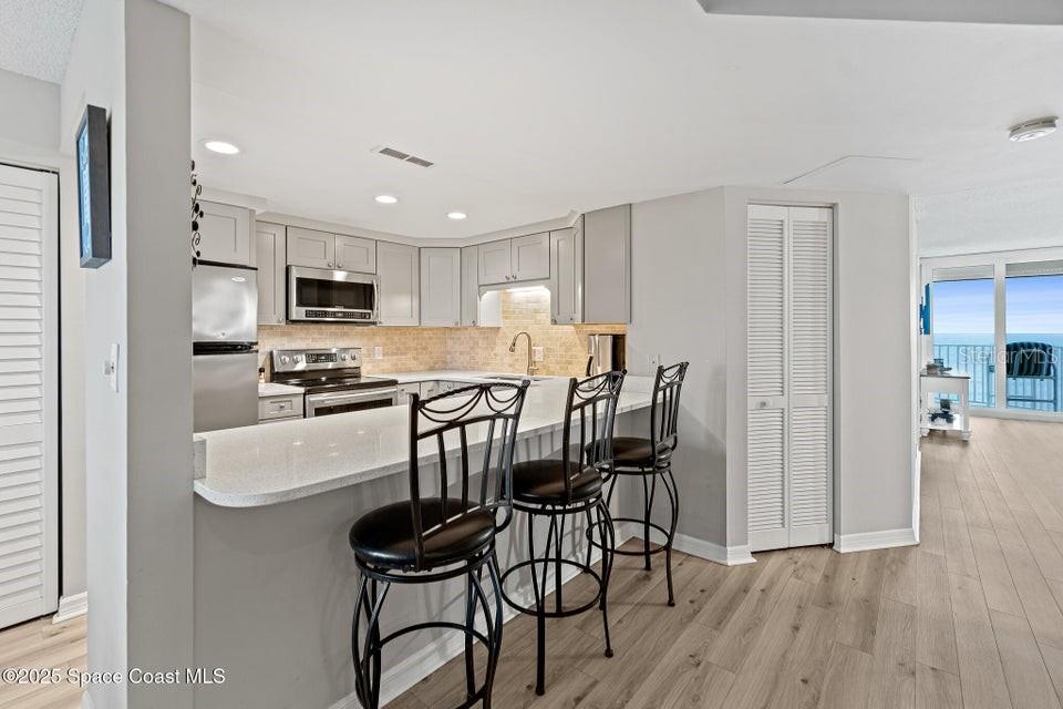 Experimente a beira da oceano, vivendo o melhor neste impressionante condomínio no 8º andar de Ocean Walk em Indian Harbor Beach. Assim que você entra, as vistas de tirar o fôlego do oceano o cumprimentam com vistas panorâmicas da costa. As janelas leste e oeste oferecem vistas desobstruídas do nascer e do pôr do sol, e você pode até pegar a emoção do lançamento do foguete desde sua própria casa. A cozinha lindamente remodelada possui amplo balcão, perfeito para cozinhar e divertir. A espaçosa sala de estar e o quarto primário apresentam vistas espetaculares do oceano, proporcionando uma atmosfera serena e pacífica. As comodidades adicionais incluem persianas elétricas, estacionamento subterrâneo, piscina e spa aquecidos, quadras de tênis, um centro de fitness, clube e uma área de lavagem de carros. Localizado a poucos minutos das lojas e restaurantes locais, este condomínio oferece uma conveniência incomparável. Ofertas revisadas a partir de 1º de fevereiro. Não perca!