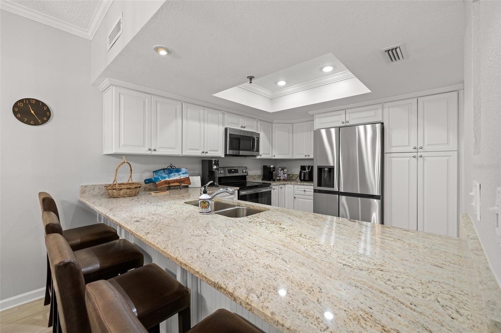 Esta residência impressionante e recentemente renovada permanece ilesa por nossas tempestades recentes! O Dolphin Reef e seus proprietários não pularam uma batida, e eles estão prontos hoje para você apreciar o seu estilo de vida frontal na praia! Este condomínio único e raramente disponível no nível 3/2 da cobertura está posicionado nas areias de Indian Rocks Beach. O condomínio renovado inclui todos os móveis e é vendido a chave, por isso está pronto para você aproveitar agora! A Associação de Condomínio dos Dolphin Recef é forte e recentemente realizou uma grande reforma em sua propriedade. Em 2023, eles completaram uma transformação impressionante na piscina/spa do lado do mar, cozinha/bar ao ar livre, um deck composto com novos móveis de assentos/relações -tudo o que cercou um espaço verde paisagístico consistentemente intocado. A partir de 2023, o exterior de todo o edifício começou a receber muitas atualizações, incluindo tinta fresca e refinamento das lanais dos proprietários de unidades, quando necessário. Para 2025, o edifício receberá um novo telhado de 20 anos. Eu mencionei que todas as avaliações desses grandes itens foram pagas recentemente? O que diferencia a residência nº 506 de alguma outra? Somente o piso superior tem clarabóias e tetos de alto volume- uma rara luz natural que acham! A suíte do proprietário possui vistas espetaculares ao pôr do sol ao pôr do sol através de portas deslizantes de impacto por furacão de vidro do chão ao teto (instaladas 2022). As persianas elétricas de tempestades externas garantem proteção adicional e servem como "tons de blecaute". Os proprietários Suite Bath oferecem dois quartos privacidade adjacente a uma grande caminhada no armário com sistema de armário personalizado. Até o segundo e o 3º quartos têm vistas intracoastal da água e ventiladores de teto. Lavanderia interior com lavadora (2022)/ secador incluído. A cozinha possui vistas refletidas no Golfo e bar de estilo da ilha com assentos para 3-6 convidados adicionais. Aparelhos de cozinha inoxidáveis e aquecedor de água quente sem tanques com menos de 5 anos de idade (2023 LG). O deck da piscina oferece um cenário perfeito para passar um tempo com amigos ou familiares. O Dolphin Reef é um arranha-céu bem conservado, composto por 40 condomínios em um prédio seguro com 2 elevadores, um acesso privado ao fechamento de praia, uma instalação de fitness com sauna, vestiários e uma sala de piscina do 5º andar W Table, geladeira e TV. As taxas da Associação de Condomínio cobrem seguro/seguro de inundação/manutenção, controle de pragas, água, lixo/esgoto, cabo básico, Internet de alta velocidade, além de um excelente gerente de manutenção no local. Tornando a vida na praia ainda mais conveniente, ao lado da escritura do prédio atribuído ao espaço de estacionamento nº 506, você tem um armário de armazenamento de térreo privado de bloqueio privado, onde pode manter todos os seus brinquedos de praia. Faça desta sua casa principal ou use como residência secundária, ou mesmo um aluguel de férias com um requisito mínimo de aluguel de 30 dias/máximo de 12 mudanças de ocupação por ano. O Dolphin Reef é um tesouro da frente do Golfo perfeitamente localizado no extremo norte de Indian Rocks Beach, uma comunidade de praia amigável para carros de golfe que é conhecida exclusivamente por seus ótimos restaurantes. Faça uma ampla variedade de restaurantes - até uma autêntica padaria francesa a poucos quarteirões ao sul! A hidrovia intracoastal fica a apenas alguns quarteirões a leste, onde a comunidade do IRB desfruta do desfile anual de barco iluminado de férias! Animal de estimação para proprietários: 1 PET máx. 20 lb. É muito importante observar o quão proativa é essa associação em cuidar de suas propriedades e quão bem ela se manteve em nossas tempestades recentes ....... Cheers à vida na praia!