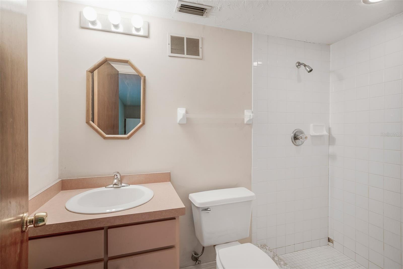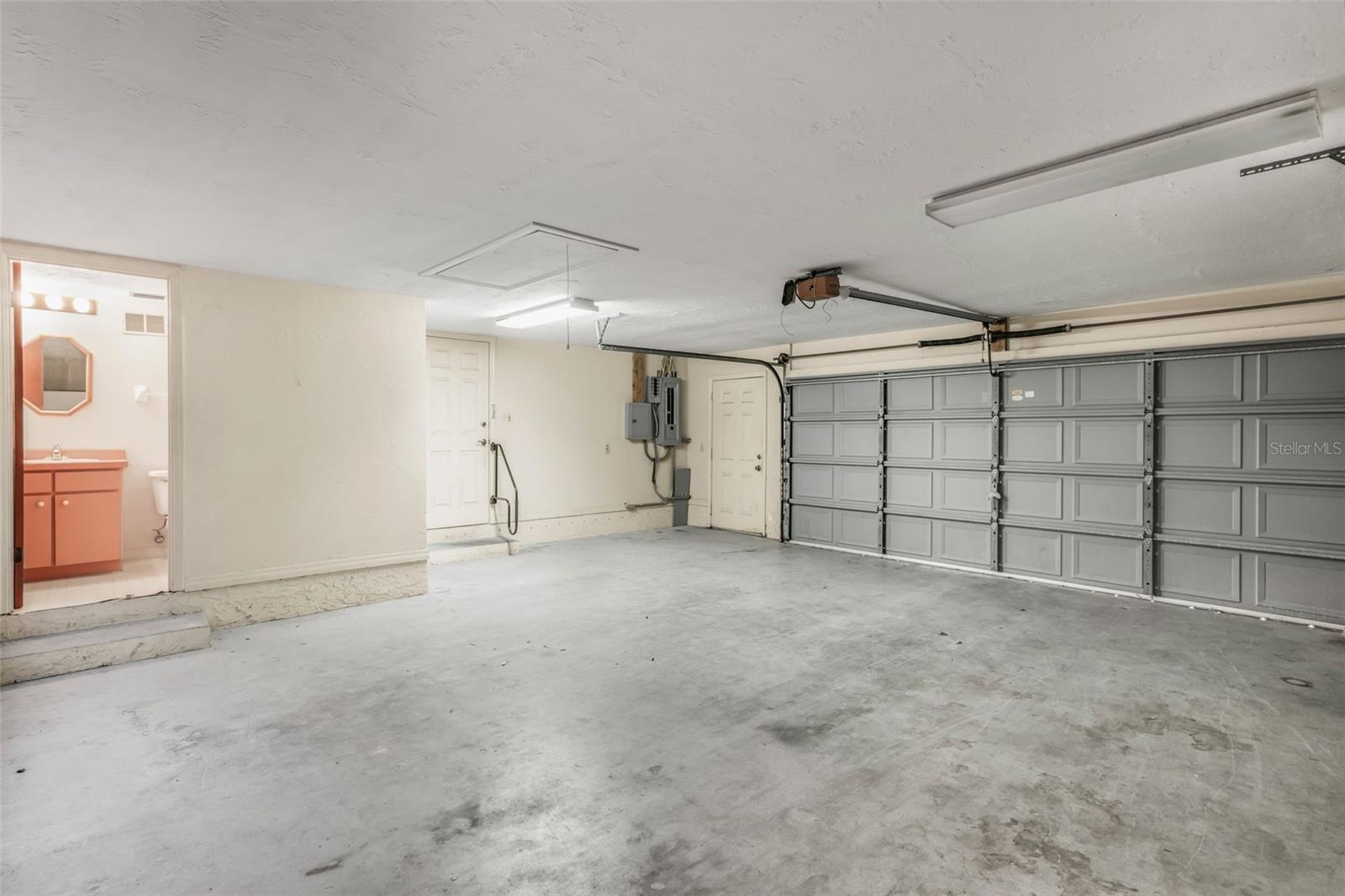 Banheiro na garagem, abridor de porta de garagem, garagem voltada para o lado